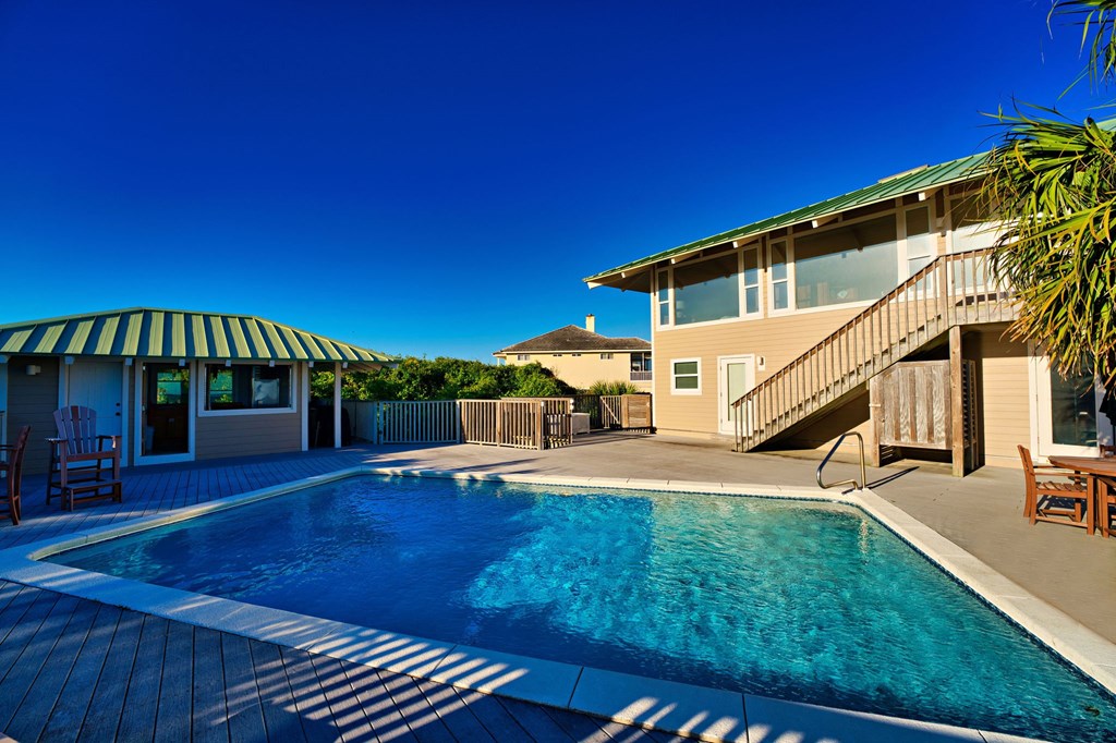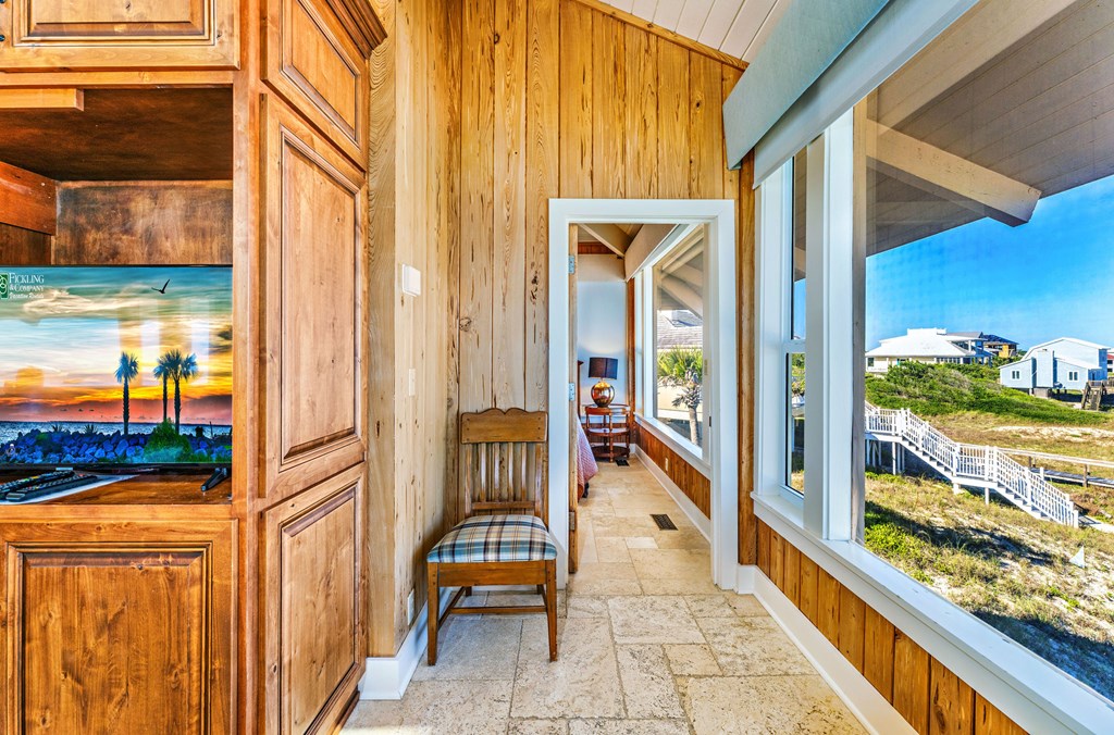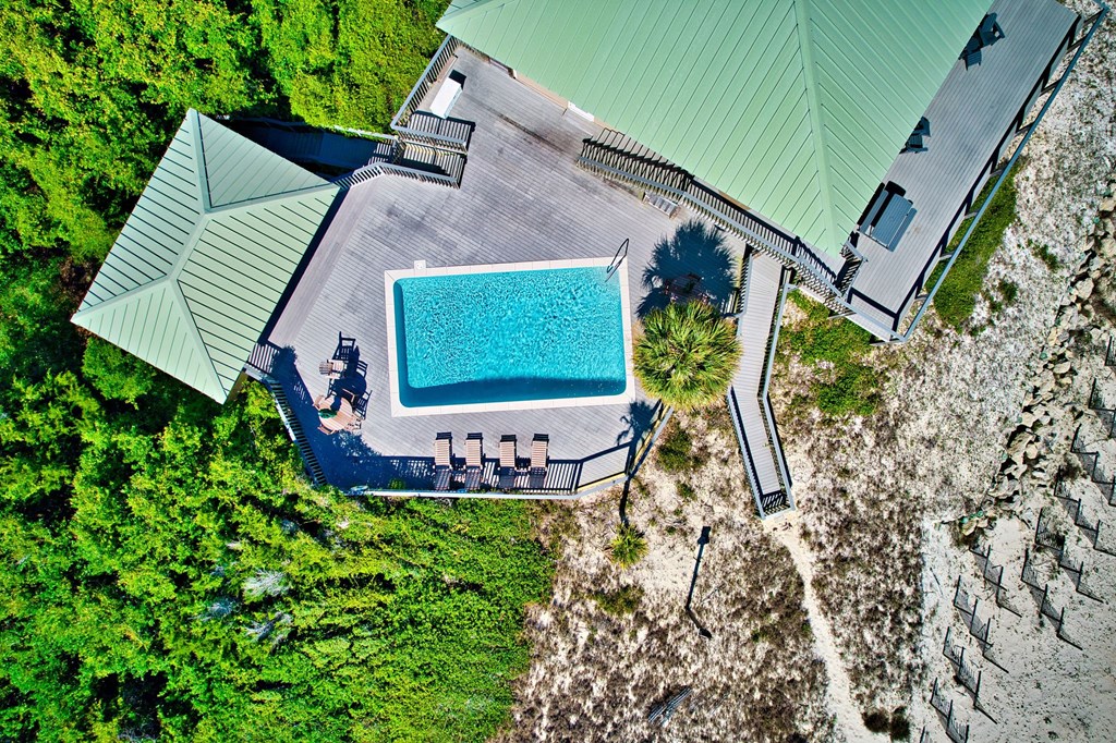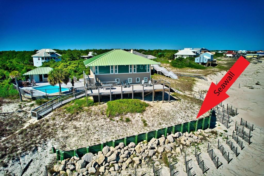 "Front Row" is one of the most breath-taking gulf front homes on St. George Island. This home sits atop an extra high dune on a large one acre Gulf-front lot, positioned in the "Front Row" providing clear views of the Gulf & beach without seeing the neighboring homes. THIS IS THE ONLY HOME IN THE PLANTATION WITH A GULF-SIDE SEAWALL BUILT INTO THE DUNES, HELPING TO GUARD BOTH THE HOME AND DUNE FROM ERROSION. Inside, Front Row's large windows offer an unprecedented and unobstructed 180 degree view of the gulf from the spacious 2nd floor living area. The entire 2nd floor is finished in warm, rich cypress. The view of the beach and gulf continues into the well equipped gourmet kitchen. The first floor which opens to the large private swimming pool has a sitting area with television and three large bedrooms, all with luxurious bathrooms. The 2nd floor has two large master bedrooms with large windows that offer a spectacular view of the beach and gulf. The Pool-Side Cabana offers changing room/restroom, bar area with ice machine, refrigerator, bar sink, covered grill area and a speaker system for pool side music on the huge wraparound pool deck. Enter the property via a boardwalk through an oak canopy. Front Row is located inside The Plantation, which boasts over five miles of the most beautiful pristine white sand beaches. This gated community offers an ideal combination of seclusion and convenience including a new three-quarter Olympic size community swimming pool, shaded picnic area, fitness room, and a beautiful clubhouse. Community amenities include 3 tennis courts, a 3,200-foot paved, privately owned/public use landing strip, and privileged access to excellent fishing and magnificent sunsets at Bob Sikes Cut! Heavily wooded streets that criss-cross the area are ideal for bicyclists, jogging and walking enthusiasts.