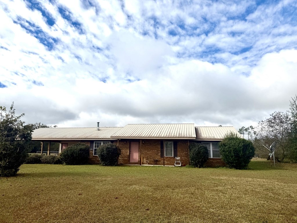 This charming brick home, topped with a metal roof, sits on a generous 2.83 acres, offering plenty of room to create a pond or build a horse barn in the back. The backyard is partially fenced, while outside the fenced area, you'll find an outdoor storage building and a pole barn, perfect for keeping your RV safe between camping trips. The street is peaceful, with wonderful neighbors surrounding you. The home is ready for a fresh renovation to infuse it with some charm, making it the ideal country retreat. It boasts three bedrooms, two bathrooms, a spacious living room, and ample storage throughout. Additionally, there is a two-car carport, a large utility/laundry room, and a generously sized screened porch at the back. Come and see for yourself if this could be your perfect home.