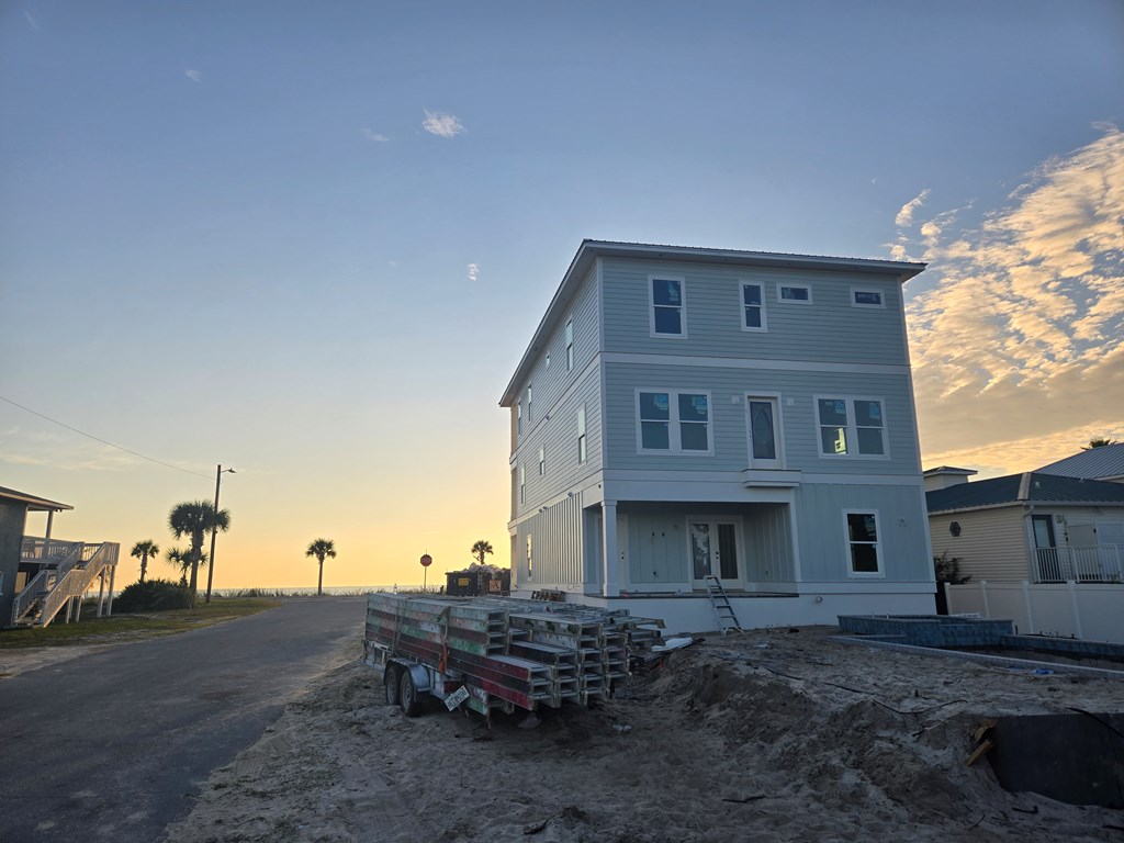 Gulf-facing new construction currently in progress on the dedicated beaches of Mexico Beach. This three story coastal residence is designed to offer approximately 4,500 square feet of heated and cooled living space with panoramic Gulf views from multiple levels. The beachfront directly across from the property is owned by the City of Mexico Beach and permanently dedicated as undevelopable preserving open shoreline and long term view corridors. The thoughtfully designed floor plan accommodates luxury living and large groups with eight bedrooms and eight full bathrooms across three levels providing privacy and functional separation of space. The main living level is planned with an open concept kitchen dining and living area that opens to covered Gulf facing porches creating seamless indoor outdoor living ideal for entertaining. Upper and lower levels provide additional sleeping accommodations and living spaces each enhanced by multiple covered porches and balconies that maximize airflow comfort and water views. Interior plans include upgraded finishes such as tiled showers quality flooring selections modern fixtures and coastal inspired design elements. A private pool and hot tub are planned to the rear of the residence within a defined courtyard setting offering a secluded outdoor retreat while remaining separate from Gulf view entertaining areas. The ground level is designed for parking storage and building access. Flood insurance is not required. With its Gulf facing views protected sightlines generous bedroom count upgraded finishes and strong outdoor living this property is well suited as a primary residence second home or income producing vacation rental in one of Florida's most desirable coastal communities.