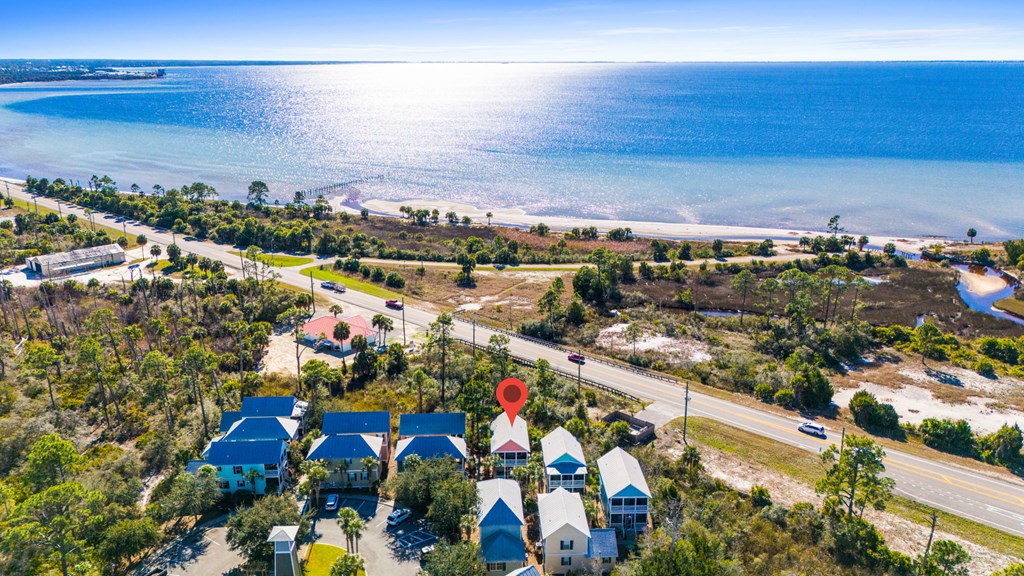 Hwy 98 to Barefoot Cottages. Gate code required. Take 2nd right, home will be in the circle on right.