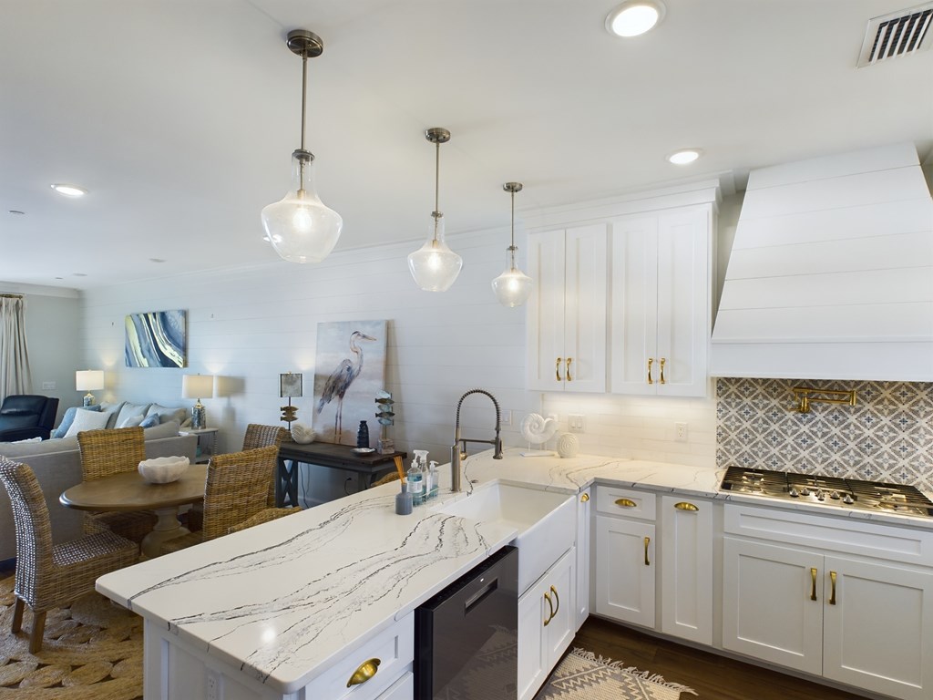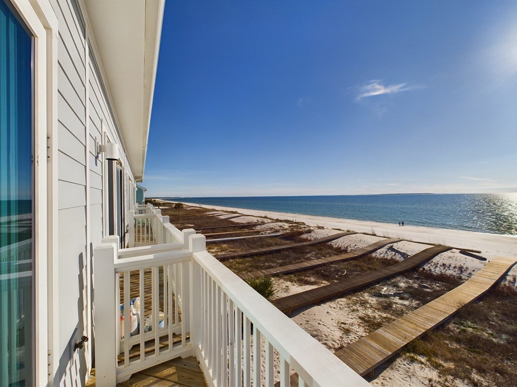 Indulge in coastal living at its finest with this exquisite 4-bedroom, 3.5-bathroom gulf front townhome, offering breathtaking panoramic views of the Gulf of Mexico. Located in a prime beachfront location, this luxurious residence combines comfort, style, and convenience for the ultimate beach retreat. The neighboring property is an expansive dedicated beach area that cannot be built on. This means less people and more privacy for your beach enjoyment. The spacious living area features soaring ceilings, large slider doors, and stylish finishes throughout, creating an inviting and airy atmosphere perfect for entertaining or unwinding in style. The chef's kitchen is equipped with high-end stainless steel Cafe GE appliances, granite countertops, ice maker, a bar with seating, and plenty of cabinetry for storage. Ideal for preparing meals and hosting guests with ease. The generously-sized master bedroom boasts panoramic gulf views, a private balcony, custom built in cabinets, a walk-in closet, and an en-suite bathroom with a walk spa like shower with rain head, and dual vanities. Three additional well-appointed bedrooms offer ample space for family and friends, with easy access to beautifully designed bathrooms, ensuring comfort and privacy for all. A private, covered patio leads directly to the beach, making it easy to step outside and enjoy sunbathing, beach walks, or water activities. This beach home is turnkey ready, selling as furnished, and has been meticulously decorated throughout.