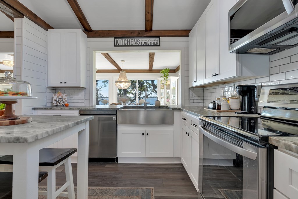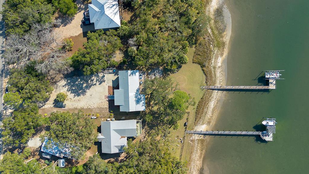 Stunning Bayfront Home on Alligator Harbor! Just minutes away from the beach! Step into luxury coastal living with this exquisite bayfront home, newly remodeled in 2024 with designer updates and high-end finishes. Featured in coastal-style, this home offers an open-concept layout, perfect for both entertaining and relaxation. From the moment you walk through the door, you're welcomed by soaring beamed vaulted ceilings and expansive windows that showcase breathtaking views of Alligator Harbor. 3/2.5 with 2021 appliances, 2020 water heater, 2024 mini-splits (4) set up for efficient air flow throughout home. 2015 metal roof with 2024 fastener replacement for optimum longevity. Fruit Trees surround property, boat dock with lift, tons of outdoor living space. 9500 Watt Generator. PLEASE SEE features page for additional information on this coastal gem. Don't miss the chance to fall in love with this beauty!