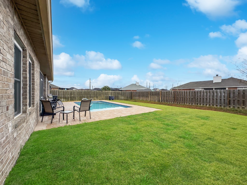 This home truly has it all. A beautifully maintained brick split-design home offering 3 bedrooms, 2 bathrooms, and over 1,800 square feet of living space. It's equipped with a whole-home 50-amp generator, providing peace of mind in any weather. The home also features new hurricane impact windows, adding protection and valuable insurance savings. Step into the foyer with tray designs and raised ceilings throughout, creating an open and spacious feel. The layout flows easily into the living room and kitchen, making it ideal for everyday living and entertaining. The kitchen includes recently upgraded appliances, granite counter tops, and opens directly into the dining area, where you'll enjoy views of the outdoor pool. The primary suite is generously sized and features tray ceilings, an over-sized walk-in closet, and a well-appointed bathroom with separate tiled walk-in shower and relaxing garden tub. Outside, you'll find a private, fully fenced backyard with a brand-new underground pool added in October 2025. The recently screened-in back porch offers the perfect spot to relax while watching family and friends enjoy the pool. This immaculate home feels like a personal retreat, combining comfort, style, and thoughtful upgrades designed to protect what matters most. This is one you truly don't want to miss. Schedule your private showing today.