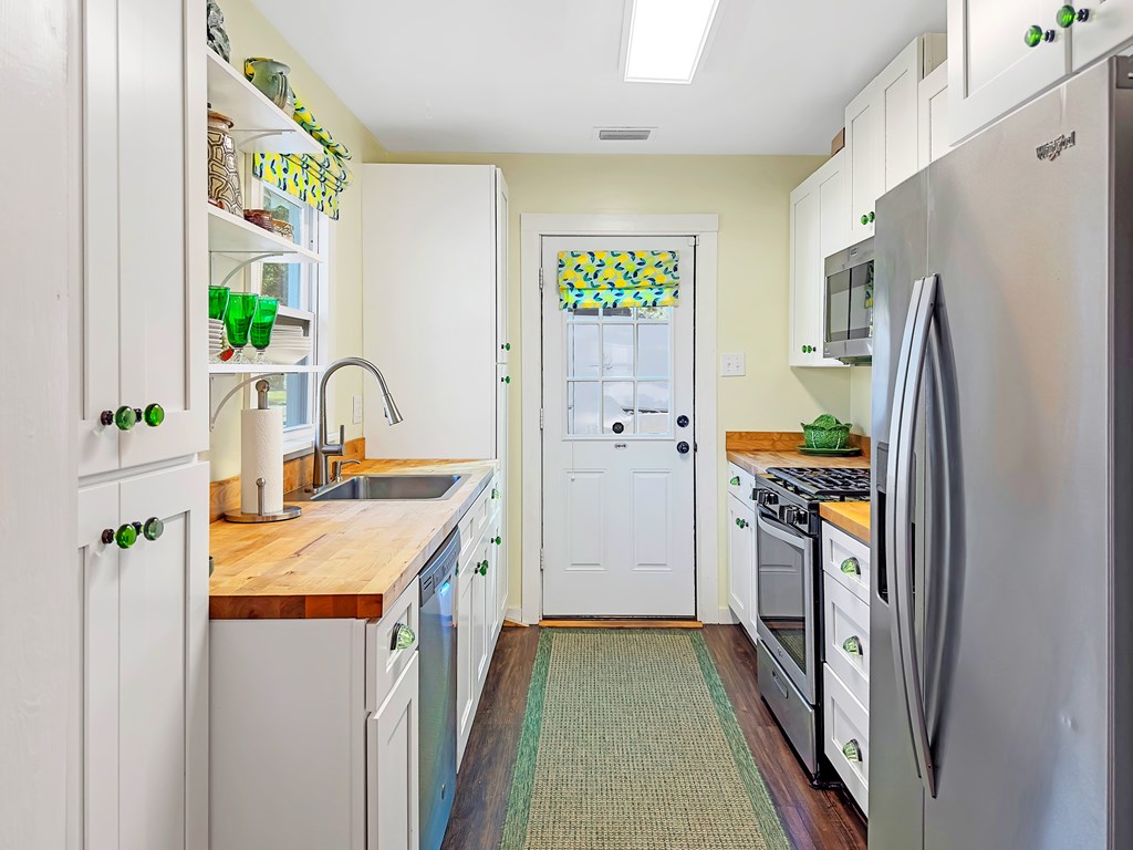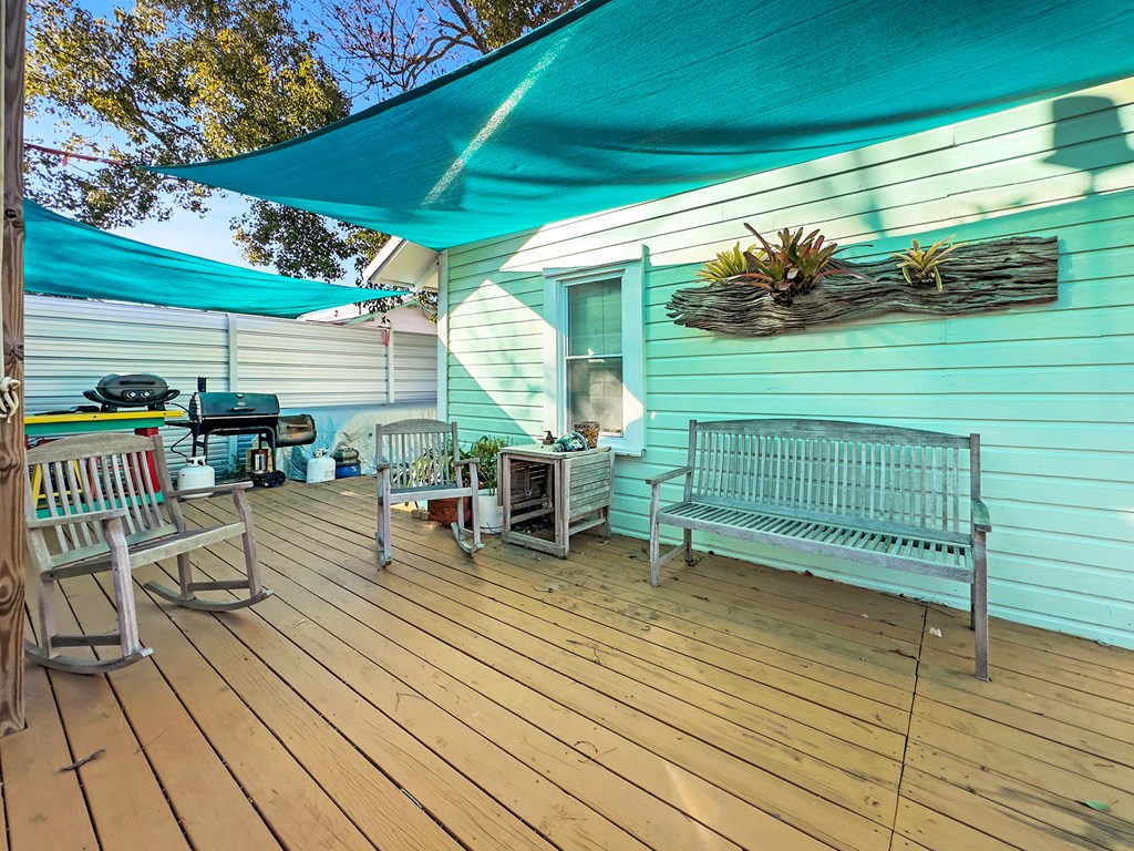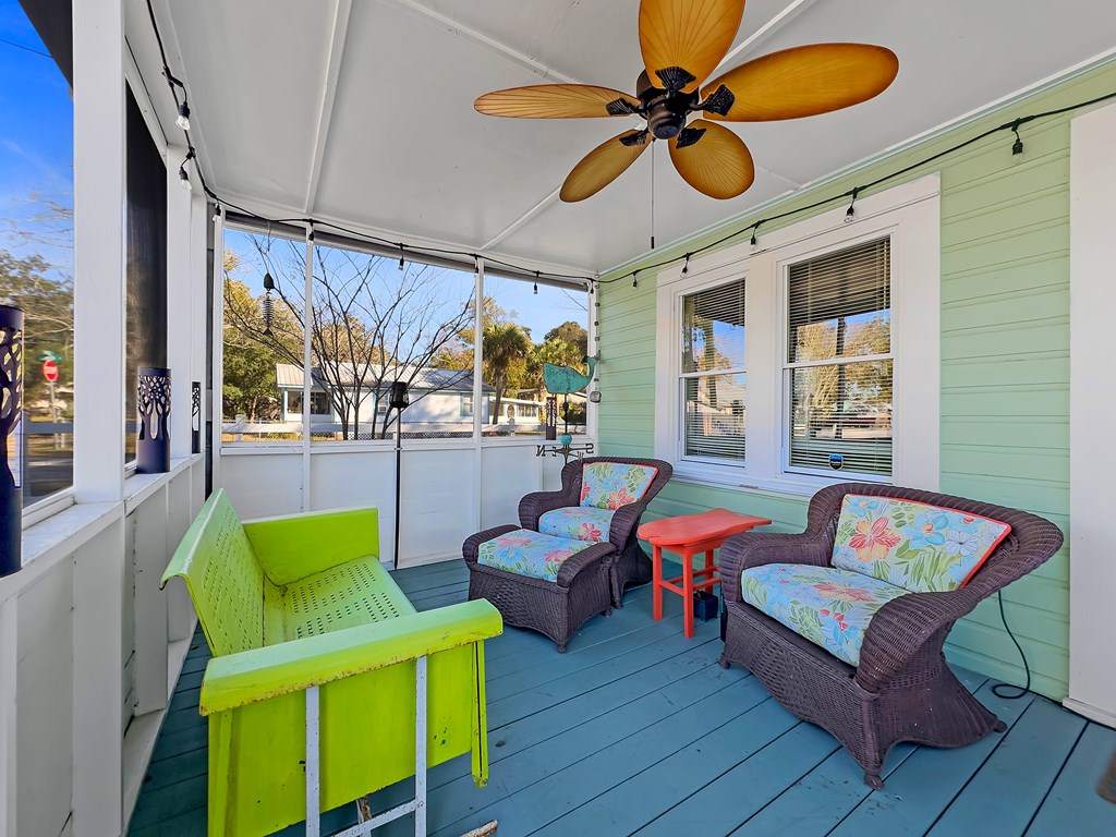 Completely renovated Old Florida cottage located just four blocks from St. Joseph Bay in Port St. Joe, FL. Originally built in 1965, this charming home was fully remodeled between 2022 and 2024 and offers coastal living with modern efficiency and excellent short-term rental potential. This small but beautiful house features three bedrooms and one bathroom within 850 square feet of heated and cooled living space, and features a 120 square feet professionally screened front porch. The updated kitchen includes a gas stove, refrigerator, dishwasher, new cabinetry, and updated flooring. The bathroom offers a walk-in tiled shower with updated fixtures. Additional interior features include painted wood floors and walls, a tankless gas water heater, fireplace with electric heat insert, custom drapery and Roman shades, insulated windows and doors, and fully updated electrical and plumbing systems. Energy efficiency and storm protection were prioritized during the renovation, including an 18 SEER-rated AC and heating system, spray foam insulation throughout the attic, a metal roof with updated underlayment, hurricane clips on all rafters, and hurricane panels for all windows. Outdoor living spaces include a screened porch, a fenced yard with a full RV hookup,extra space for boat and trailer parking, a deck with custom awnings, covered golf cart parking, and a lawn pump for irrigation. A mature giant oak tree provides excellent shade during the summer heat, and both the house and workshop have been freshly painted.The fully insulated outbuilding offers approximately 240 square feet with 9-foot ceilings and includes a laundry room, toilet, and workshop space. Eligible for short-term rentals, this move-in-ready property is well suited as a primary residence, second home, or income-producing investment. Located close to the bay, downtown Port St. Joe, dining, and shopping, this home combines classic Florida charm with durability, efficiency, and flexibility.