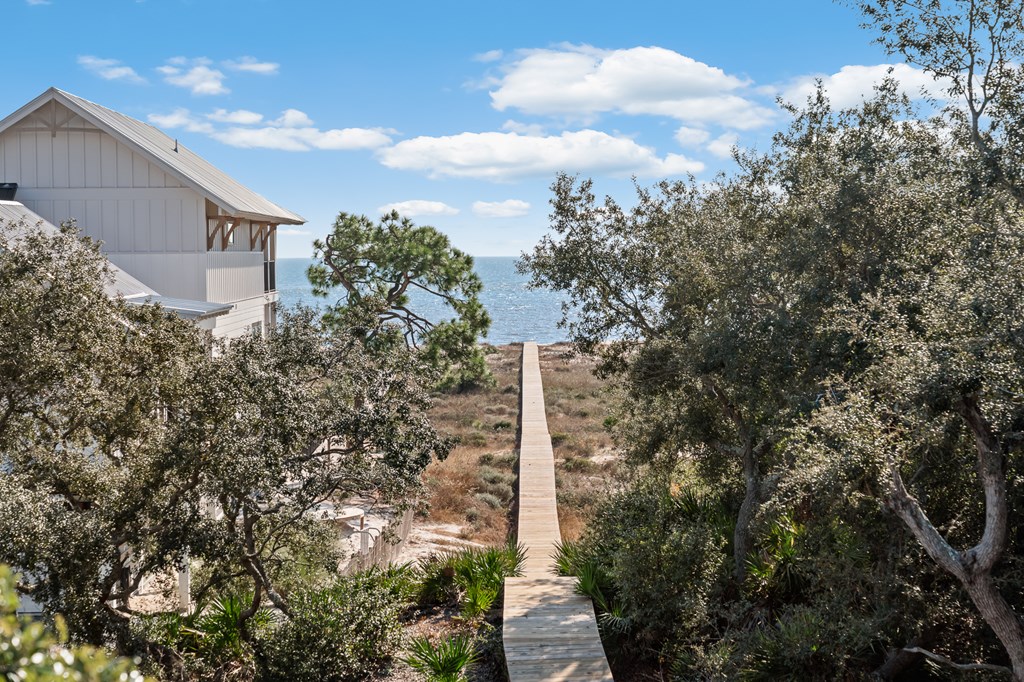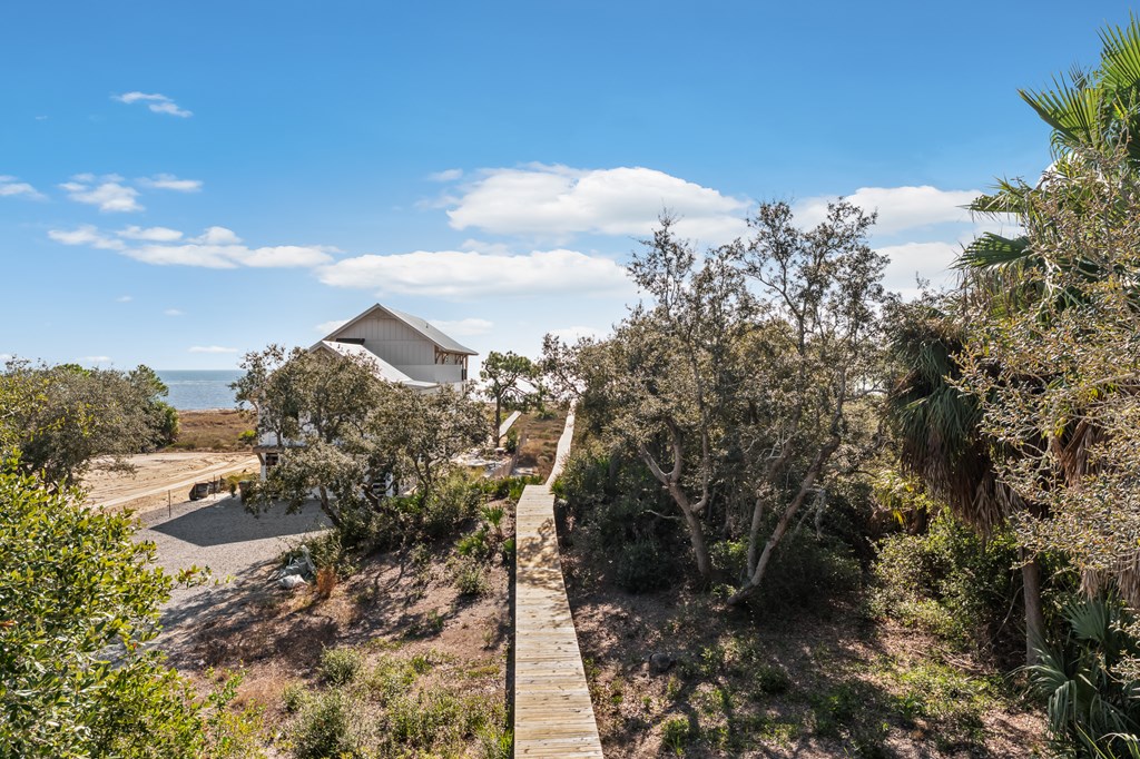 Custom-designed and thoughtfully positioned, this beachfront home on the Indian Pass peninsula offers rare privacy, elevation, and protection set back from the shoreline and surrounded by mature live oaks, palms, and pines. The setting captures true Old Florida character, perfectly paired with modern coastal architecture featuring corrugated metal and durable Hardi-plank siding, and subtle, natural color tones that blend into the landscape. Inside, the home showcases cypress wood floors, mahogany countertops, and custom windows, cabinetry, shelving, and tilework, all executed with intention and craftsmanship. First-level bedrooms feature 9-foot ceilings, while the top floor opens up to an impressive 11'8” elevated ceiling, creating a light-filled living space that feels like a refined treehouse overlooking the Gulf. Situated on over one acre of Gulf-front property, the lot spans approximately 50 feet from Indian Pass Road to the beach, offering both accessibility and privacy. Gulf views can be enjoyed from the upper level, and a new elevated boardwalk provides an easy walk to the unspoiled, pet-friendly beaches of Indian Pass. For boating and fishing enthusiasts, a public boat ramp just down the road offers quick access to the Gulf of Mexico, Apalachicola Bay, and Indian Lagoon making this an ideal base for coastal adventures. Private, elevated, architecturally distinctive, and surrounded by natural beauty, this is a rare opportunity to own an Indian Pass beachfront retreat where Old Florida charm meets modern coastal living. Realtor Remarks: House is usually vacant, please call Chris to schedule all showings. Survey, elevation certificate and seller's disclosure in documents. Wind/hazard insurance $3653 and flood insurance $3250, subject to change with new ownership based on underwriting and coverage amounts. Average monthly utility costs are power $215, water $35, internet $80, trash service $25.