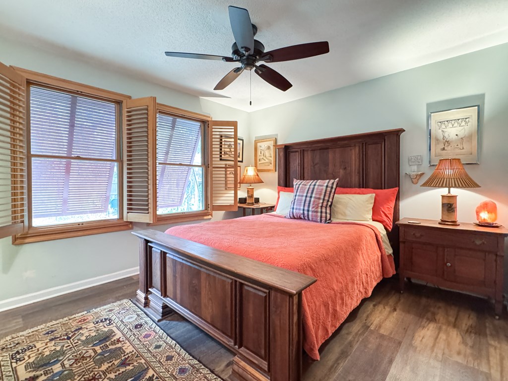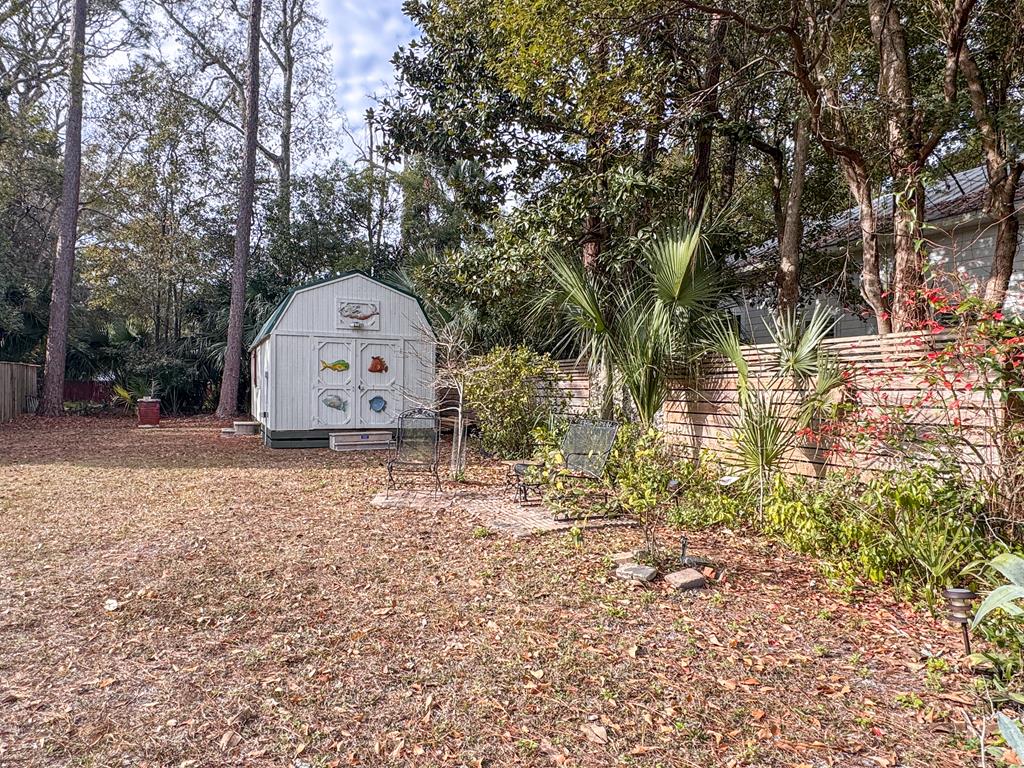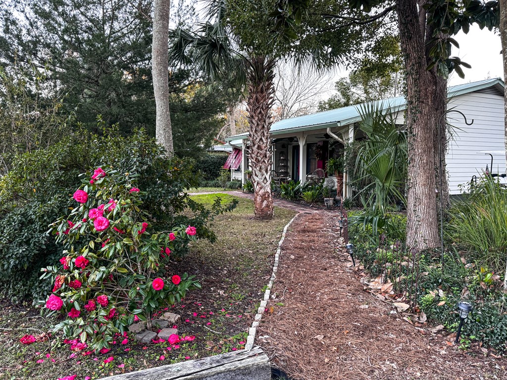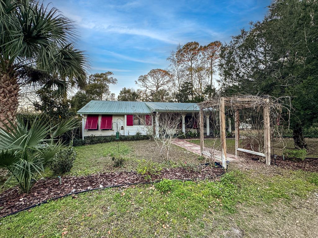 For sale: thoughtfully remodeled home on 2 lots on a quiet street in Apalachicola's northside historic district. This one level home consists of 2 bedrooms, 3 full baths, an open floor plan for easy living, and a beautifully designed chef's kitchen with custom cherry cabinetry and granite countertops. Custom bookshelves adorn the living room with vaulted ceiling which opens to a covered back porch. The two bedrooms are quietly located on either side of the home, both with their own ensuite bathrooms. Wooden Planation shutters tastefully hang throughout the interior, and on the exterior, there are rated hurricane shutters. Don't forget--the adjacent lot with outbuilding is part of the package. Call in advance for a private showing!