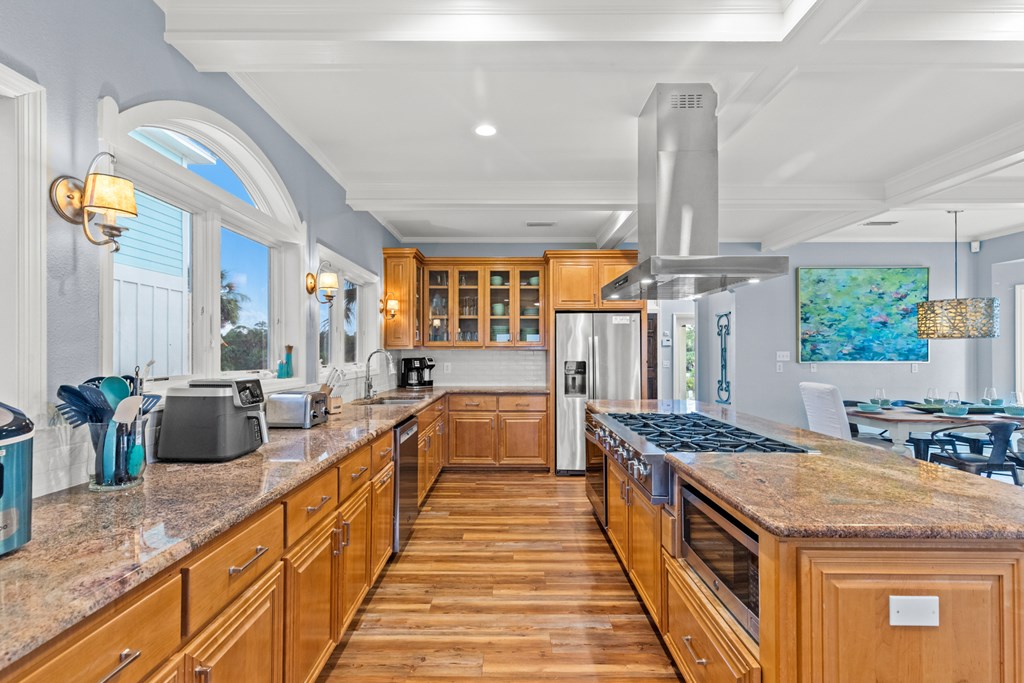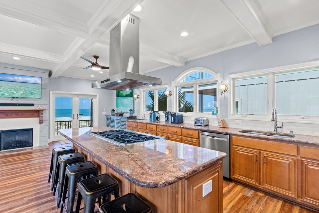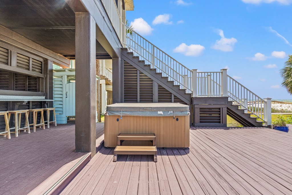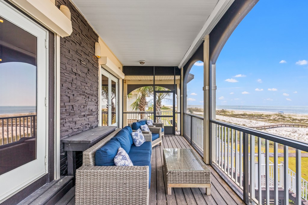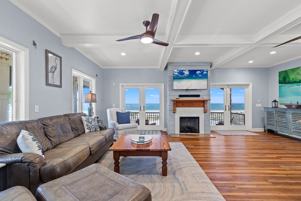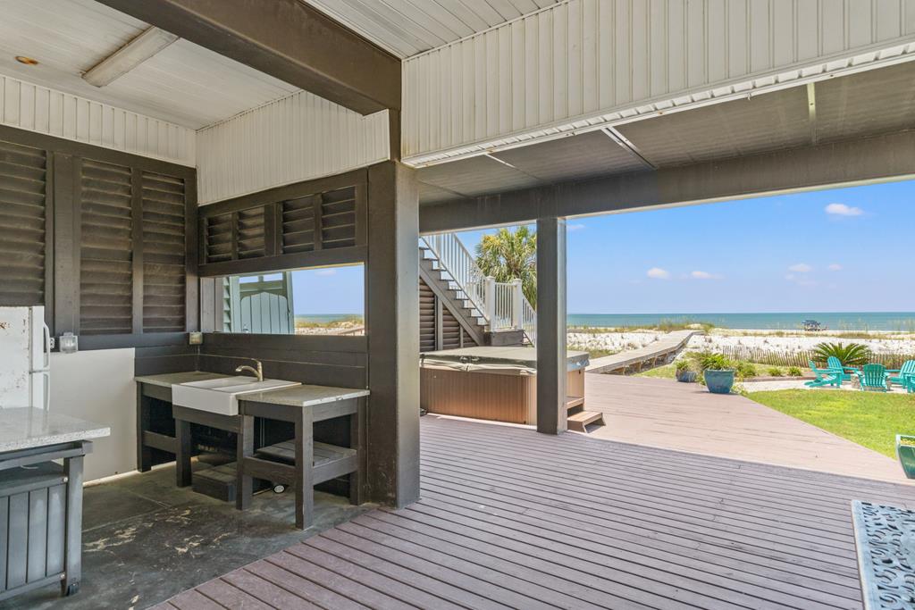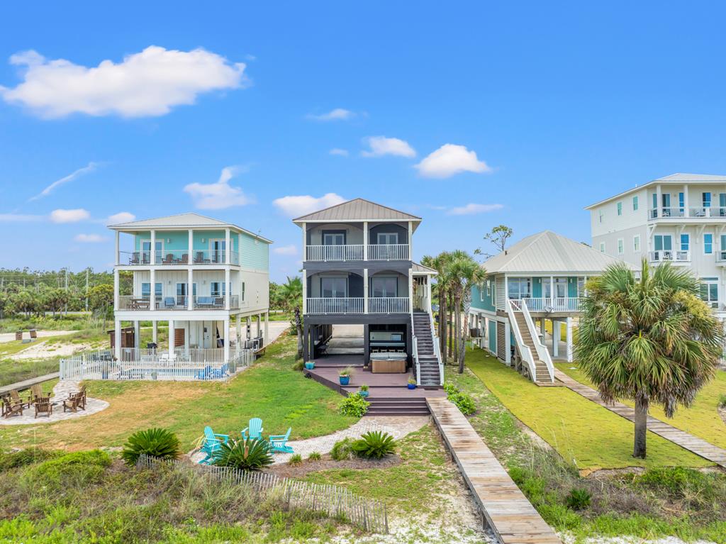 Live the dream on the Gulf of America in this stunning 4-bedroom, 3-bath beachfront residence offering direct Gulf access and breathtaking views. Thoughtfully designed for comfort and entertaining, this 2,432 sq ft home blends refined finishes with relaxed coastal living. The open-concept layout centers around a gourmet kitchen featuring a large island with prep sink, 6-burner Thermador gas range, stainless appliances, and custom cabinetry. Expansive windows in the great room frame panoramic Gulf views, while a fireplace adds warmth and ambiance for those rare cool evenings. The tranquil primary suite features a wood-accented ceiling, walk-in closet, and private access to a screened porch overlooking the beach. Three additional bedrooms provide ample space for guests or family. On the beach level, coastal living shines with an outdoor kitchen, farmhouse sink, bar seating, dining area, fire pit, and six-person hot tub—all steps from your private boardwalk to the sand and water. Enjoy morning coffee or evening sunsets with unobstructed views across the Gulf. Located minutes from downtown Port St. Joe dining, boutiques, and marinas, this property offers easy access to local favorites like Indian Pass Raw Bar and nearby boat launches for fishing or scalloping adventures. Whether you're seeking a full-time residence or a luxury vacation investment, this Gulf-front retreat delivers coastal living at its best. Schedule your private tour today.