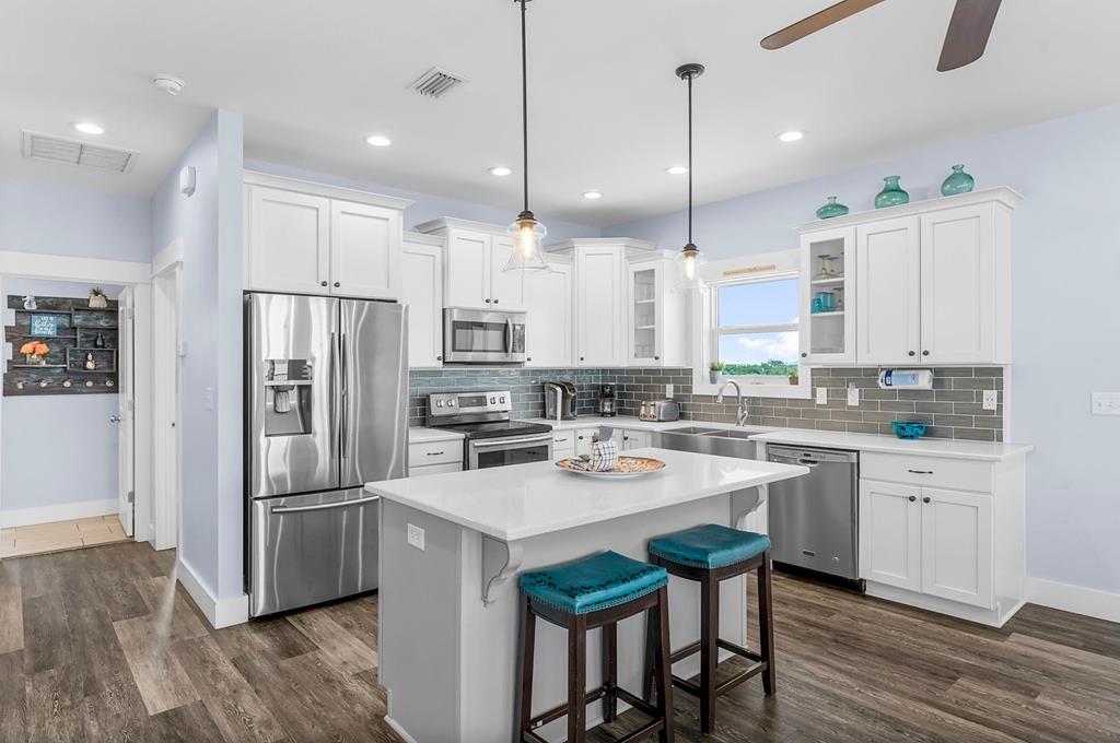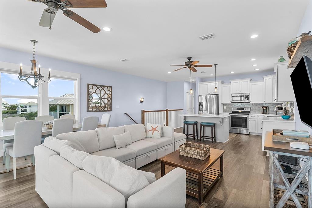 Private Pool Gulf Views Vacation-Ready Investment on North Cape San Blas. Experience coastal living in this custom-built 5BR/4BA home located in the quiet Turtle Dunes community, just steps from the sugar-white sands of Cape San Blas. Designed for gathering and relaxation, this property features a heated 12'25' in-ground pool with a 1,200 sq ft paver sundeck, privacy fencing, outdoor shower, and covered patio—ideal for enjoying the Florida sun. Two levels of covered gulf-view decks invite you to unwind to the sound of the waves and the glow of sunset skies over the Gulf of America. Inside, the open-concept layout connects the living, dining, and kitchen areas with coastal-inspired finishes, solid-surface countertops, stainless appliances, and a farmhouse sink. The spacious design includes a ground-level suite with second living area and kitchenette, perfect for guests or multi-generational stays. A bunk room with built-in beds adds fun sleeping space for family and friends. Durable LVP flooring, generous storage, and multiple owner closets enhance functionality. Positioned on North Cape San Blas, this home offers deeded beach access and proximity to outdoor recreation—2.3 mi to T.H. Stone Memorial St. Joseph Peninsula State Park, 1.9 mi to Scallop Republic, and 6.7 mi to Salinas Park, where you'll find pickleball courts, a kayak launch, and a bay-side boardwalk. Excellent short-term rental potential with proven vacation appeal and modern amenities throughout.