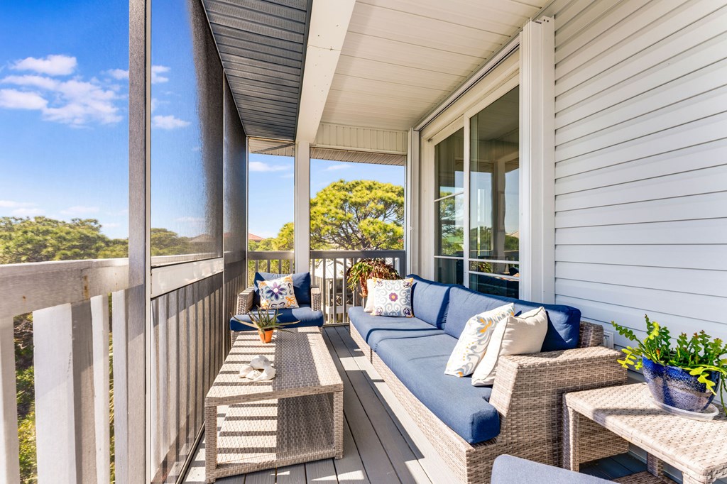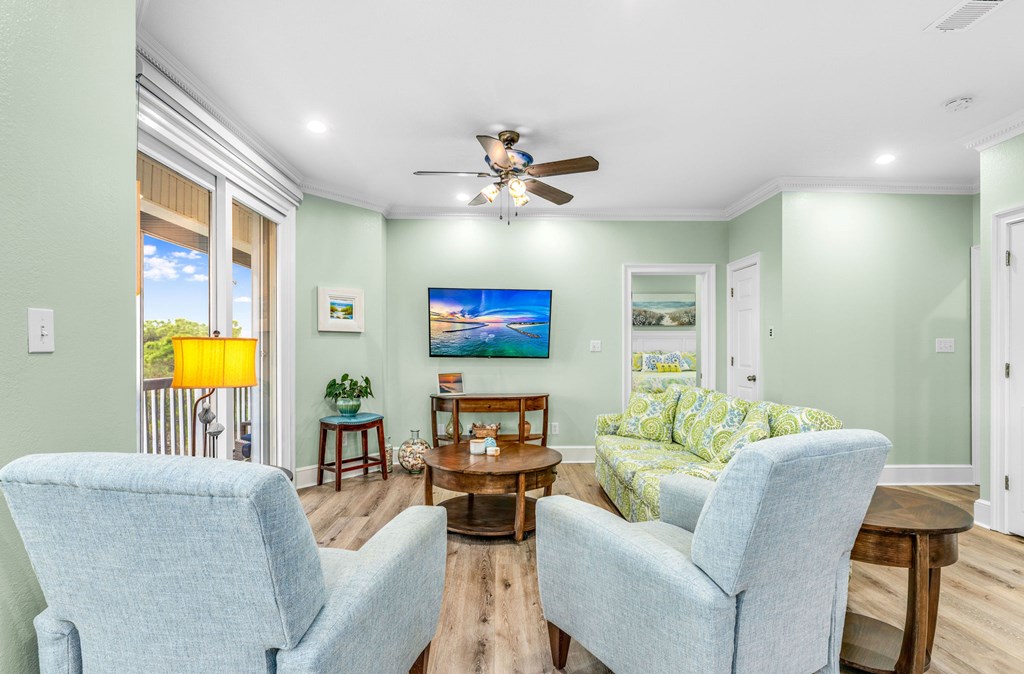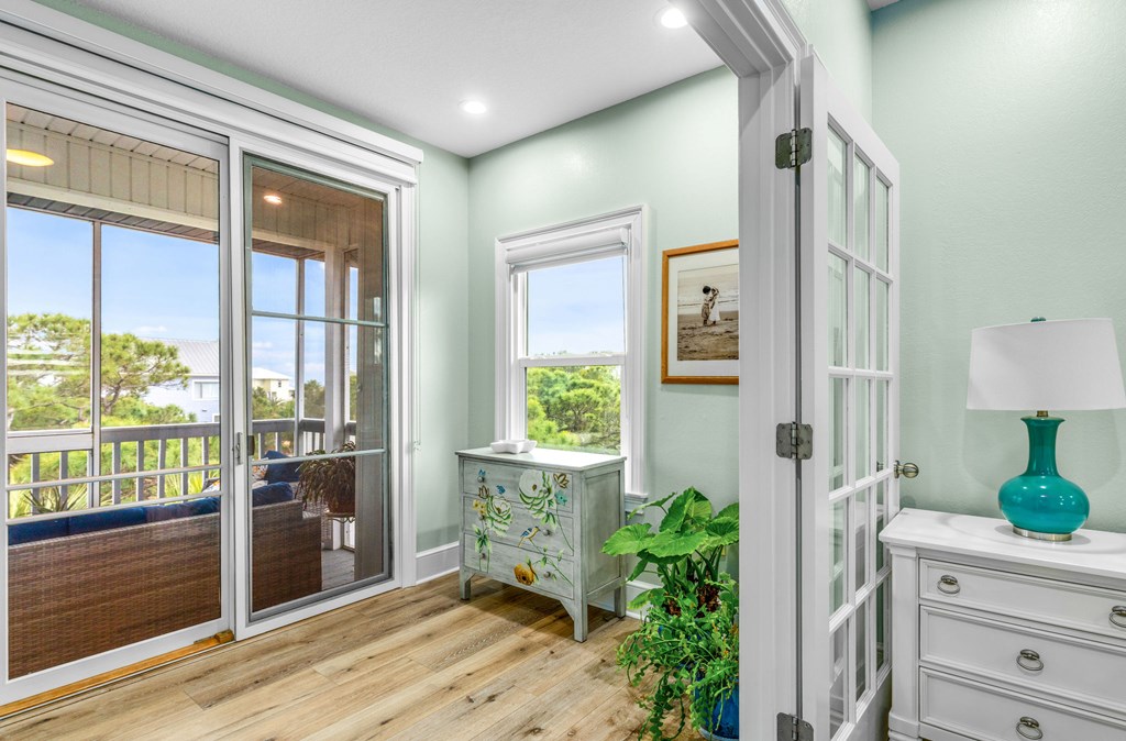 Designed for easy island living, this thoughtfully laid out 3 bedroom, 3 bath coastal home features two separate living areas and a flexible floor plan well suited for full-time living, a second home, or vacation rental use. The main living area is bright and welcoming, with a comfortable flow into the kitchen and dining space. The primary bedroom includes French doors leading to a flex room, which works well as a sitting area, home office, or additional sleeping space. Bedrooms are well sized, and the layout provides privacy for owners and guests. Outdoor living is well suited for island life, with extensive decking providing multiple areas to relax, dine, or entertain. Additional exterior features include a private pool, outdoor shower, and a bonus outdoor bathroom, making beach and pool days easy and convenient. The home sits on a spacious half-acre lot with ample parking and room to enjoy island living. Located within the gated Plantation community on St. George Island, owners enjoy access to beach access, community pools, tennis, pickleball, walking trails, and 24-hour security. Buyer to pay a 0.5% new buyer fee at closing.