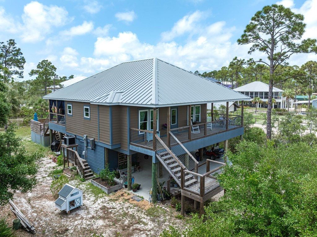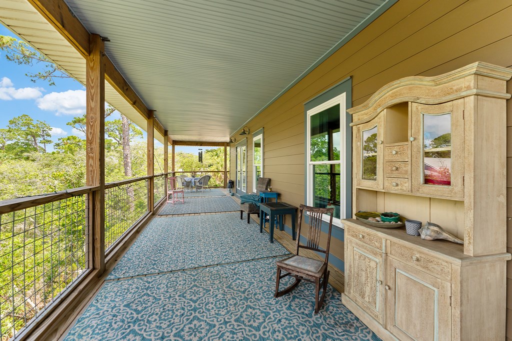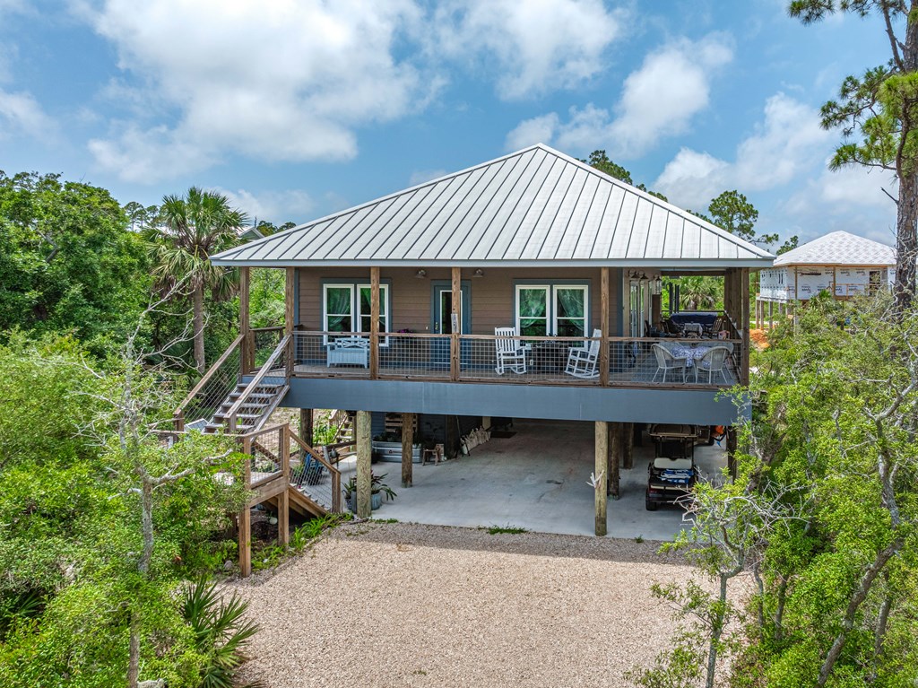 The vibe here is barefoot luxury - where artistic flair meets beachside ease on Indian Pass. Whether you're entertaining on the porches, lounging by the pool, or heading out to the beach, this home invites you to slow down and soak in the salt air. Recently constructed and custom-built for efficiency, elegance, and coastal durability, this thoughtfully designed home features a gourmet kitchen, open concept living and dining area, 2 bedrooms, 2 full bathrooms, a bonus office/loft area and expansive wraparound porches overlooking an elevated pool. Interior attractions include high-end appliances, butcher block countertops and stylish cabinetry, gas fireplace in the living room, chic tile work with walk-in showers, designer fixtures, barn doors & shiplap walls with custom natural wood accents and calming earthy tones. This unique coastal cottage sits on an oversized, 100' wide 1/2 acre lot which provides privacy, a large yard, and a natural surrounding buffer of live oaks, palms and pines. There is no HOA here, and the beach access path is a short walk away at the end of the street. Don't miss this opportunity to have your own Indian Pass getaway, perfect for full-time living or vacation escape.