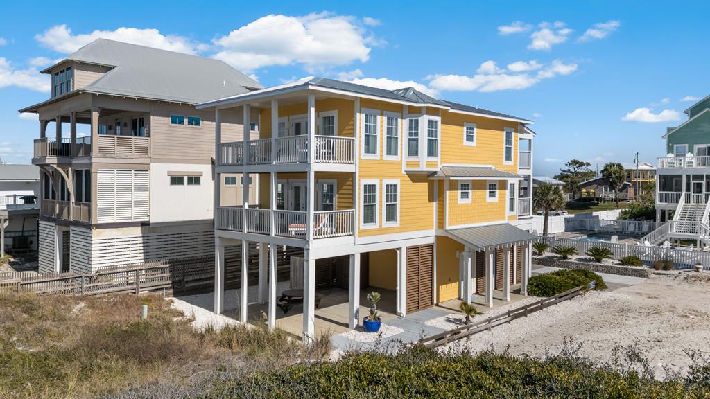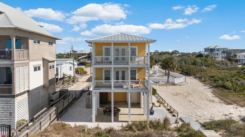 GULF FRONT CUSTOM BUILT - NORTH CAPE SAN BLAS HOME, with private beach access limited to approximately four homes, offering rare privacy and sweeping Gulf views. Built on cement pilings and finished with Hardie siding, the home features a new aluminum roof with a cable roof system, along with fresh exterior paint and caulking for added durability and peace of mind. Multiple private covered decks and a spacious patio create the perfect setting for watching sunsets, entertaining, or simply enjoying the sound of the waves. Inside, the home showcases custom Italian tile and marble, a hardwood tongue-and-groove stairwell, and a newly painted interior. The open layout is ideal for gatherings, while large locked owner closets allow for effortless transition between personal use and rental income. Recent updates include a new refrigerator, washer, and microwave. Great outdoor space with room for a hot tub and outside kitchen! The beautifully landscaped lot is thoughtfully designed with a sprinkler system, weed-mat coverage, and decorative seashells for low-maintenance coastal living. Enjoy an active coastal lifestyle with nearby bike path, kayaking, fishing, local shops and restaurants, and St. Joseph Peninsula State Park just minutes away. Whether you're seeking a strong-performing vacation rental, a second home, or a full-time Gulf-front residence, this property delivers location, upgrades, privacy, and investment potential, all in one exceptional coastal offering. Schedule your private tour today!