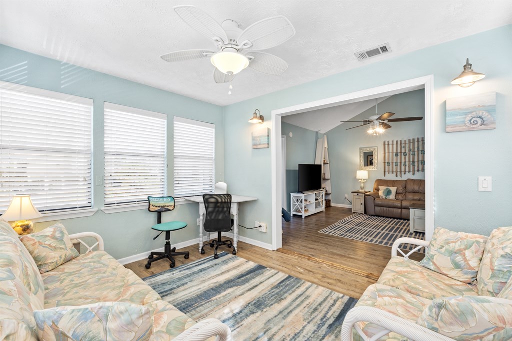 3 BR / 2 BA SELLER MOTIVATED This charming coastal retreat offers generous living space and an open-concept living, kitchen, and dining area with soaring ceilings bathed in natural light. The space flows effortlessly into a bright Florida sunroom that opens onto the front porch—perfect for morning coffee, evening breezes, and easy coastal entertaining. The spacious primary suite is a true escape, featuring its own covered outdoor porch, an adjoining office or sitting area, and a beautifully renovated bath. Two additional bedrooms include a welcoming guest room and a fun bunkroom, ideal for hosting family and friends after a day at the beach. Situated on a corner lot with mature coastal vegetation, the home is located within a friendly community offering a pool and picturesque boardwalk leading to the beach. Just minutes away, Salinas Park provides pickleball courts, a playground, and covered pavilions for gatherings. Golf enthusiasts will appreciate close proximity to the St. Joe Bay Golf Club, while outdoor lovers can enjoy St. Joseph Peninsula State Park only 9 miles away with pristine beaches and its own boat landing. Spend your days exploring the bay or the Gulf, dining at nearby local restaurants, or soaking in the laid-back coastal lifestyle. The home is conveniently located less than 9 miles from Port St. Joe, offering abundant shopping and dining while retaining its signature small-town charm. Perfect as a vacation rental, second home or full-time coastal residence, this property embodies relaxed beach living at its best. Recent upgrades include a new roof (August 2023), new dishwasher and microwave (2023), stove (2025) and a tankless hot water heater. Additional features include a ground-level workshop/storage area—ideal for beach gear, bikes, and water toys. SELLER MOTIVATED