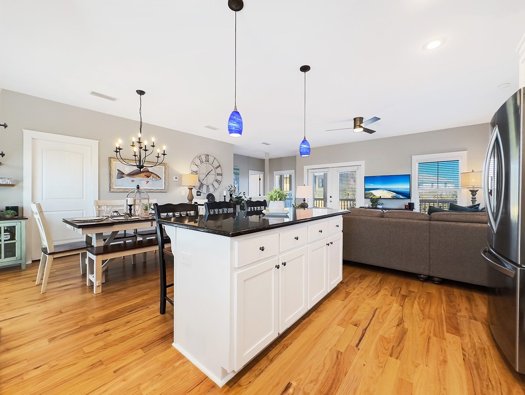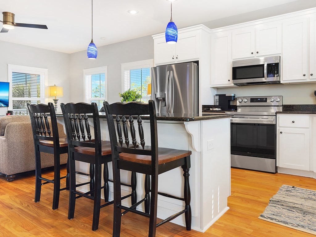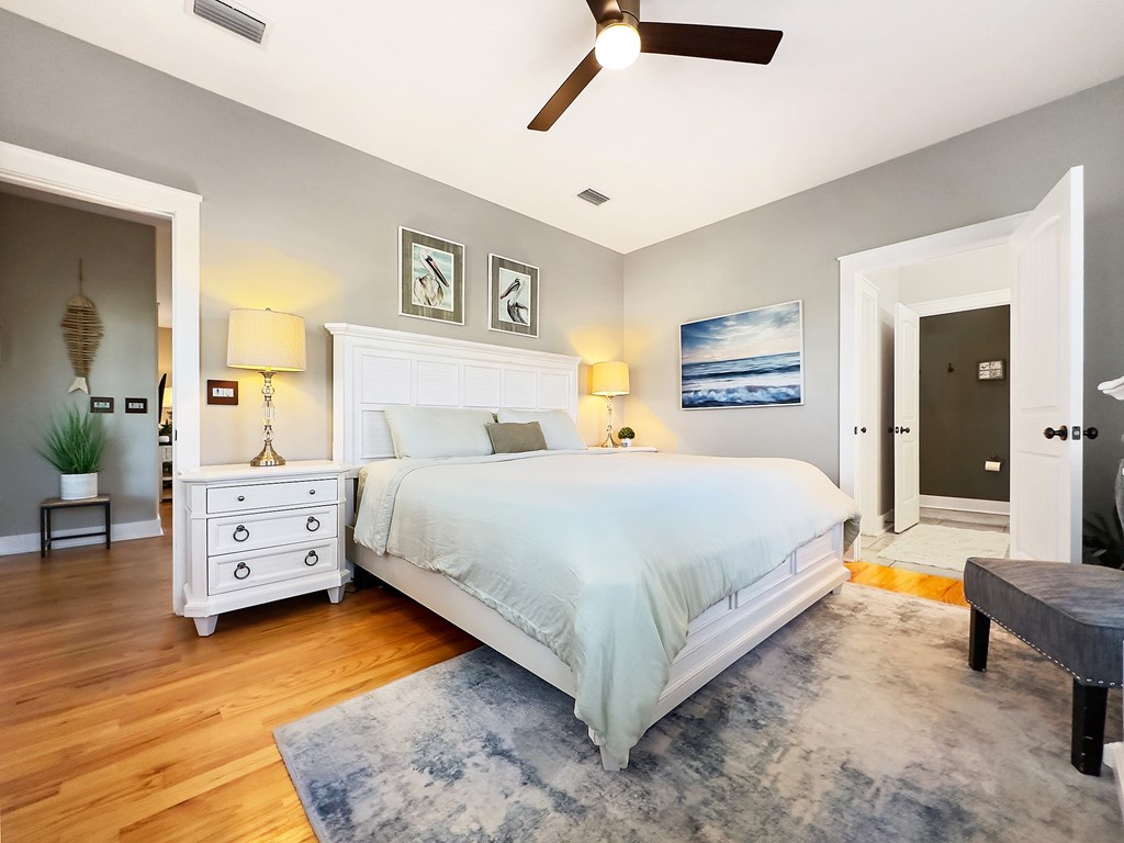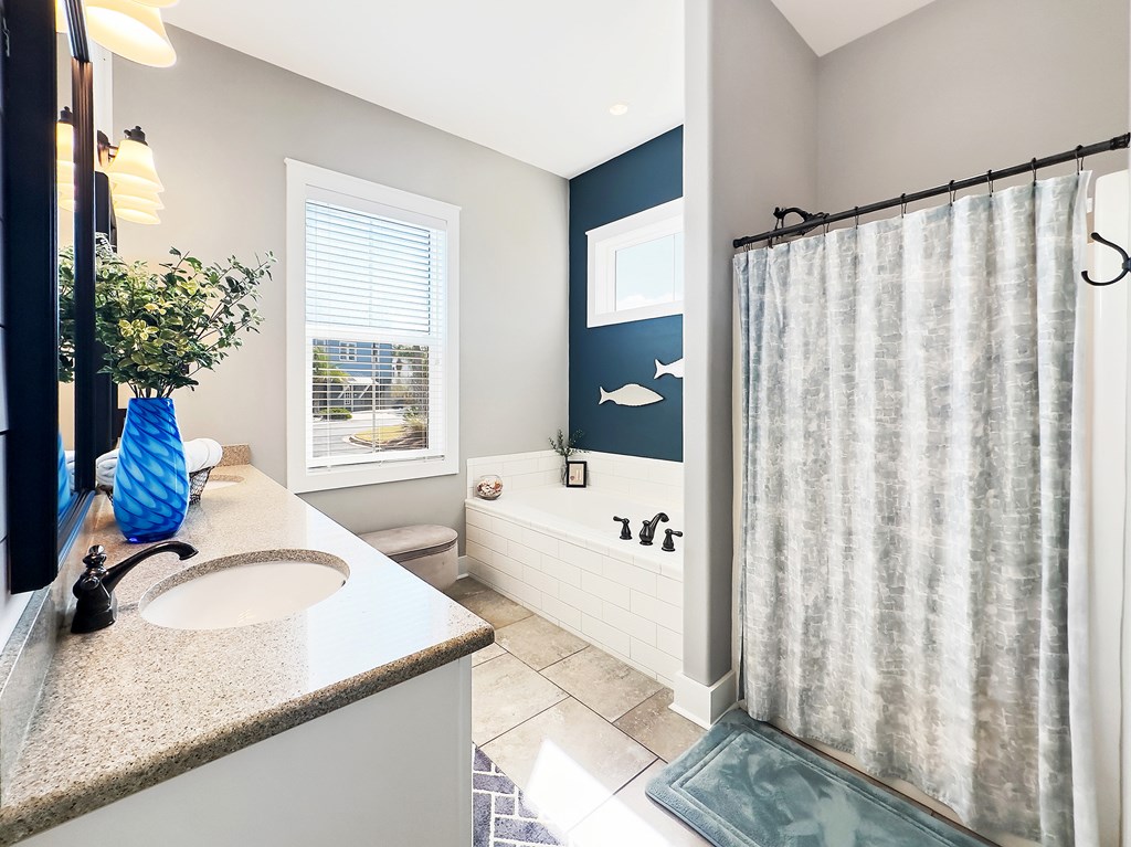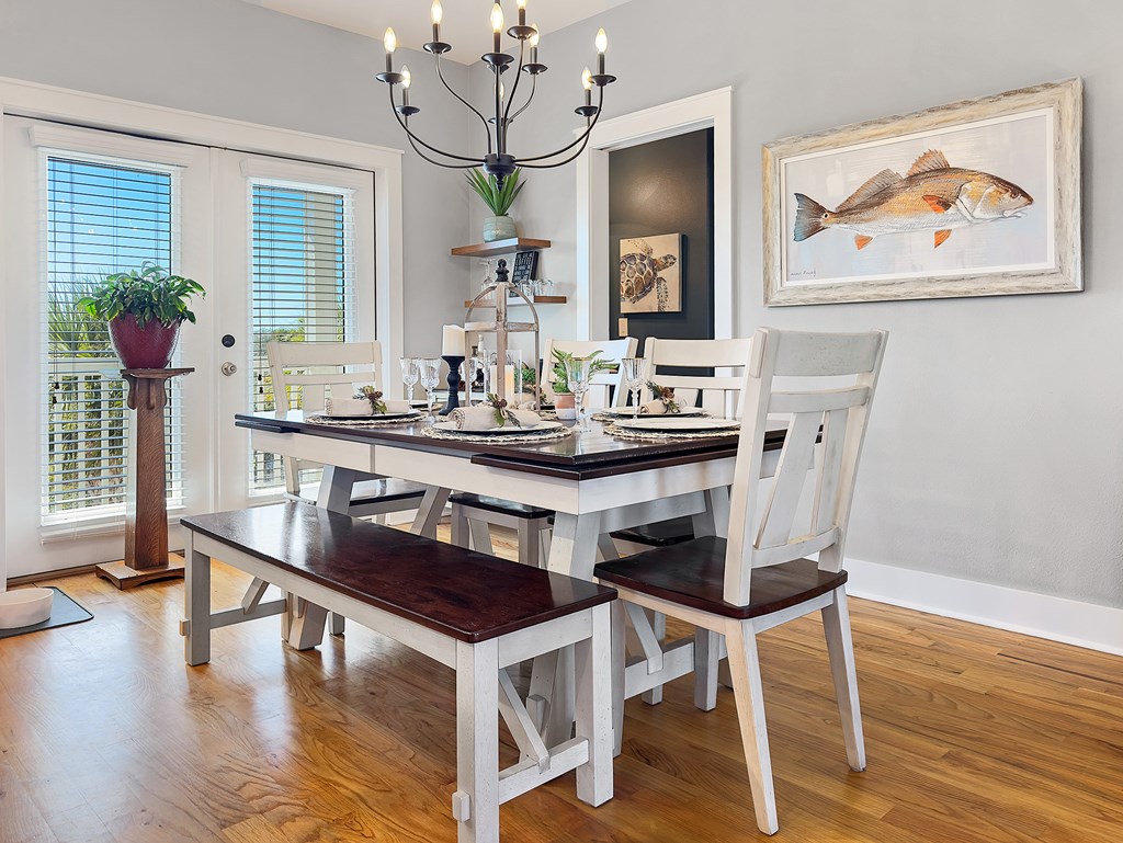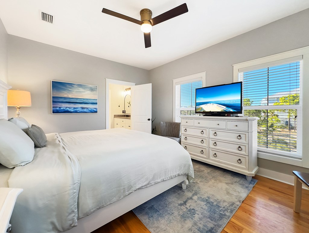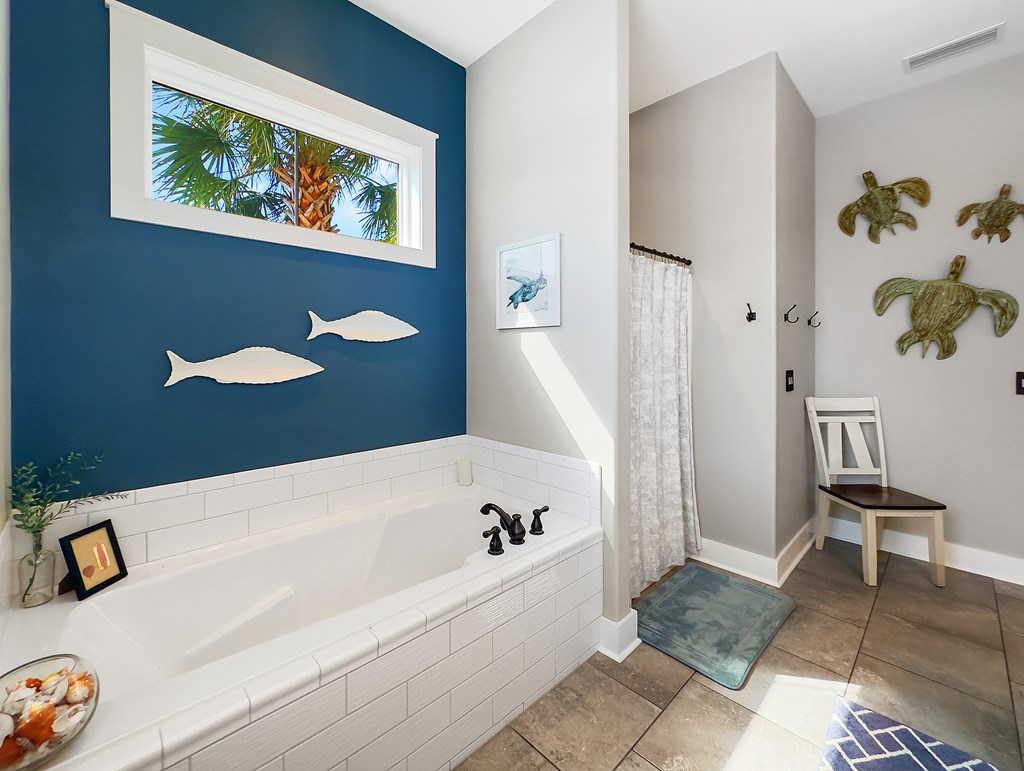 Located in the coveted community of Ovation, this beautifully designed 4-bedroom, 3.5-bath home offers refined coastal living with lovely Bay views and thoughtfully curated finishes throughout. The open layout showcases upgraded countertops, travertine tile, decorative wainscoting accents, and en-suite bathrooms for every bedroom—creating comfort and privacy for family and guests alike. Tile flooring spans the entire first floor and the upstairs bathroom, while rich hardwood floors on the second level add warmth and character to the main living spaces. The spacious kitchen flows seamlessly into the dining and living areas, making it easy to cook, entertain, and stay connected. A convenient breakfast bar provides casual seating for morning coffee or quick meals. A versatile home office or craft room connects to a Jack-and-Jill bathroom, making it ideal for visiting grandkids or guests with children. The first floor also features its own family room—perfect for relaxed evenings or casual gatherings—with easy access to outdoor spaces. An outdoor shower adds convenience after beach days, and the corner-lot setting offers added privacy with no neighboring buildings on one side. This home truly has it all—an excellent layout, tasteful pops of dcor that brighten each space, and the flexibility to make it your own. Step outside and enjoy Ovation's unmatched amenities, including a bayfront infinity pool, Gulf-side pool, fitness center, clubhouse, tennis and pickleball courts, lush green spaces, and deeded beach access. Just minutes from the shops, restaurants, marina, and events of Port St. Joe, you'll enjoy both convenience and Cape tranquility. An exceptional opportunity to experience coastal living at its finest.