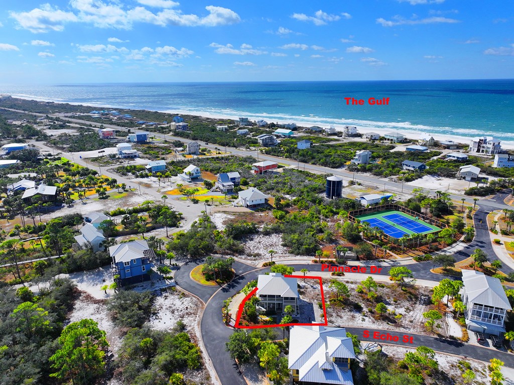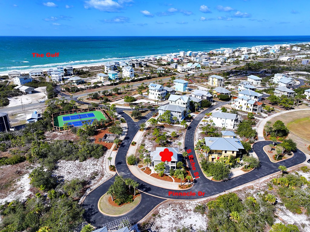 From Hwy 98E, Veer Right on SR 30a to Cape San Blas Road. Follow CSB Rd to Ovation 3rd gate. Turn right on Echo Ln.