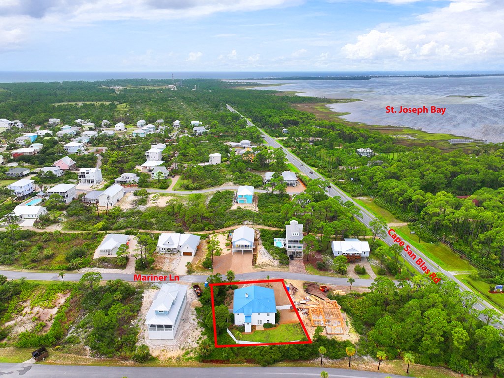 Head West toward Apalachicola. Turn slightly right onto SR 30-A and travel for 6.7 miles. Turn right onto Cape San Blas Road and travel for 1.2 miles. Turn left onto Mariner Ln. Look for the sign.