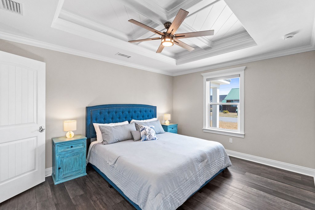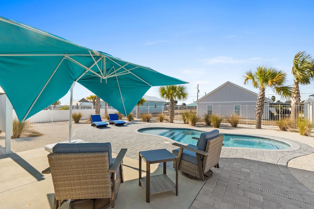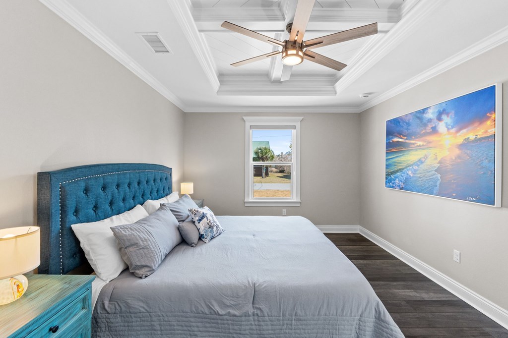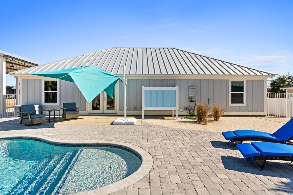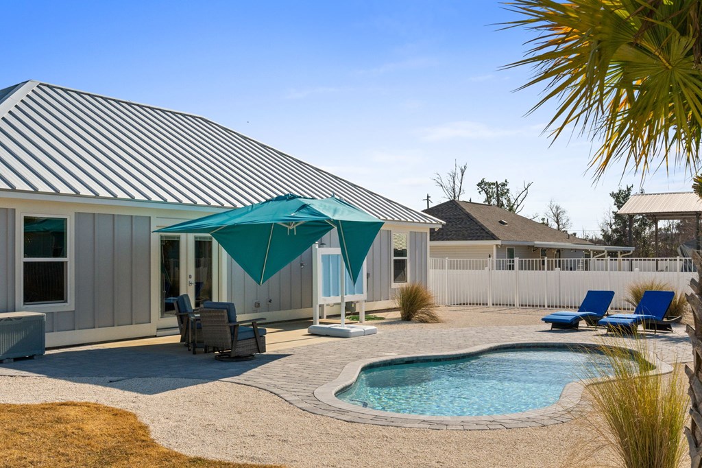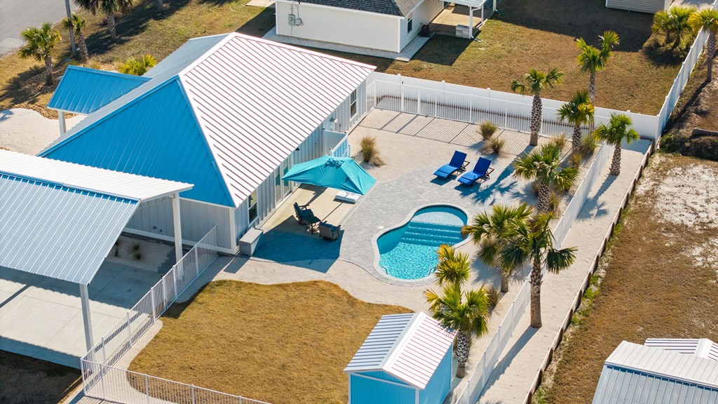 Experience the ease of coastal living in this newer construction home, thoughtfully designed with comfort, style, & functionality in mind. Just a short stroll from the beach, this property offers the perfect blend of luxury and low-maintenance living. Step inside to an open-concept living area filled with natural light, accented by tray ceilings with additional ambient lighting. The kitchen is a true centerpiece, featuring granite countertops, under-cabinet lighting, a generous pantry, & an oversized island with bar seating that seamlessly separates the dining area. Sold fully furnished & lovingly maintained by its original owner, this home has never been on the rental market, offering peace of mind & exceptional care. Designed with flexibility & privacy in mind, the home features 2 master suites. The primary suite boasts an expansive walk-in shower, double vanities, a private water closet, & spacious walk-in closet. The 2nd master suite offers a full bath & ample closet space, making it ideal for extended family or guests seeking comfort & privacy. In addition, 2 guest bedrooms are thoughtfully positioned alongside a 3rd full bathroom, creating a functional layout to accommodate everyday living & entertaining. The sizable laundry room offers additional cabinetry & storage to keep everything organized & within reach. After a day at the beach, rinse off in the convenient outdoor shower & enjoy endless hot water thanks to the Rinnai tankless water heater. Outdoors, the property truly shines. The heated saltwater pool features a lounging ledge & Omnilogic LED lighting system that can be controlled right from your phone, creating the perfect ambiance for evening swims. The yard has been thoughtfully landscaped with slower-growing grass & irrigation system, making it virtually maintenance-free. The 8x12 storage building is ideal for beach gear, tools, or hobbies. The 36x24 barn provides ample space for boat storage & more, complete with an on-site EV charging port.