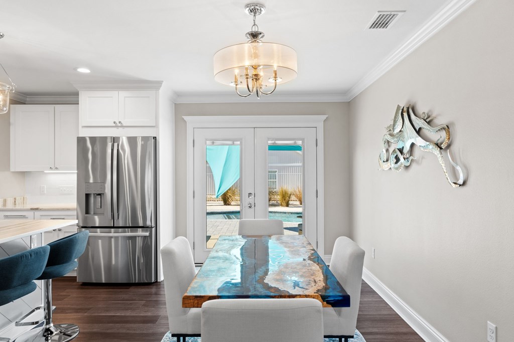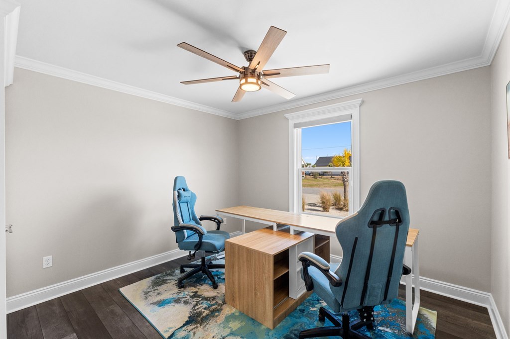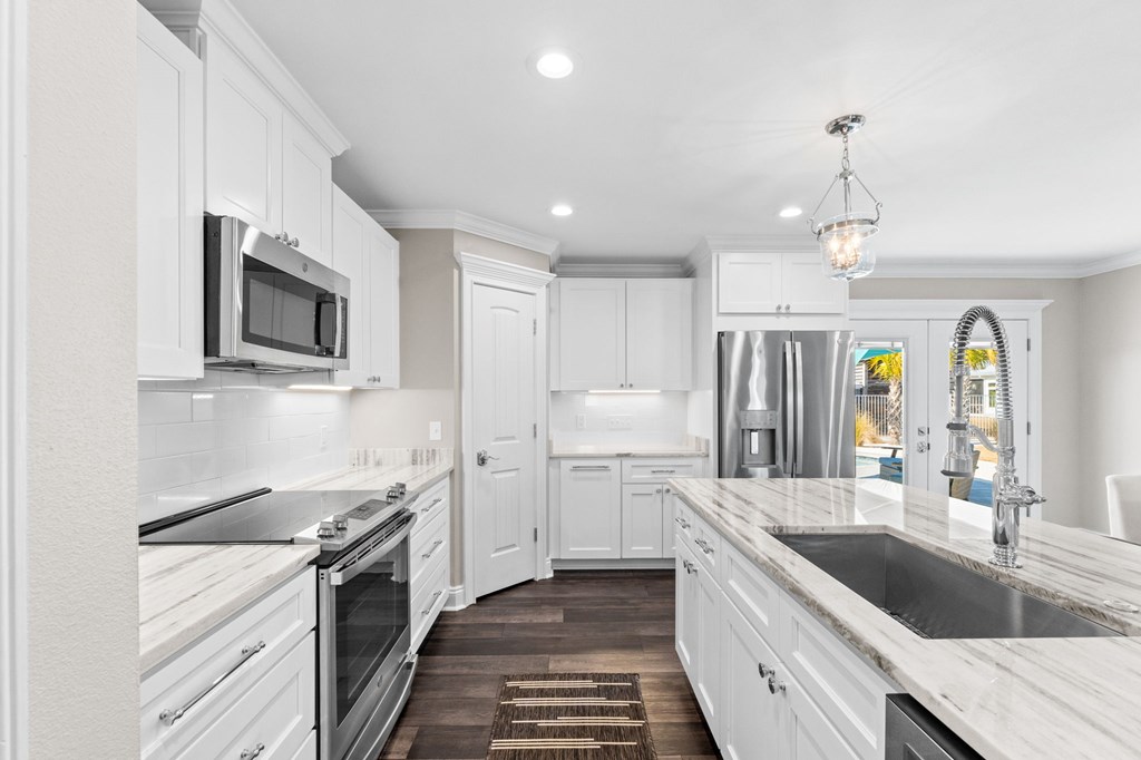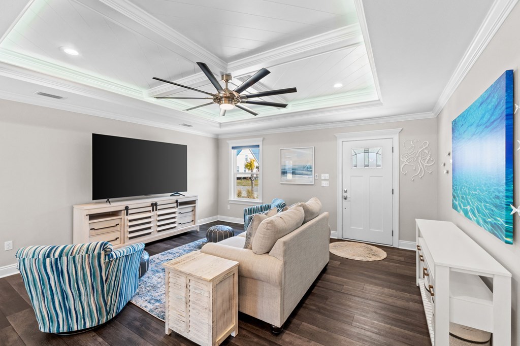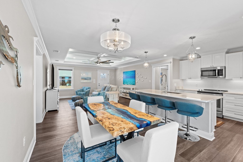 Experience the ease of coastal living in this newer construction home, thoughtfully designed with comfort, style, & functionality in mind. Just a short stroll from the beach, this property offers the perfect blend of luxury and low-maintenance living. Step inside to an open-concept living area filled with natural light, accented by tray ceilings with additional ambient lighting. The kitchen is a true centerpiece, featuring granite countertops, under-cabinet lighting, a generous pantry, & an oversized island with bar seating that seamlessly separates the dining area. Sold fully furnished & lovingly maintained by its original owner, this home has never been on the rental market, offering peace of mind & exceptional care. Designed with flexibility & privacy in mind, the home features 2 master suites. The primary suite boasts an expansive walk-in shower, double vanities, a private water closet, & spacious walk-in closet. The 2nd master suite offers a full bath & ample closet space, making it ideal for extended family or guests seeking comfort & privacy. In addition, 2 guest bedrooms are thoughtfully positioned alongside a 3rd full bathroom, creating a functional layout to accommodate everyday living & entertaining. The sizable laundry room offers additional cabinetry & storage to keep everything organized & within reach. After a day at the beach, rinse off in the convenient outdoor shower & enjoy endless hot water thanks to the Rinnai tankless water heater. Outdoors, the property truly shines. The heated saltwater pool features a lounging ledge & Omnilogic LED lighting system that can be controlled right from your phone, creating the perfect ambiance for evening swims. The yard has been thoughtfully landscaped with slower-growing grass & irrigation system, making it virtually maintenance-free. The 8x12 storage building is ideal for beach gear, tools, or hobbies. The 36x24 barn provides ample space for boat storage & more, complete with an on-site EV charging port.