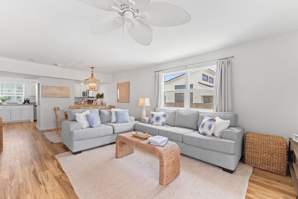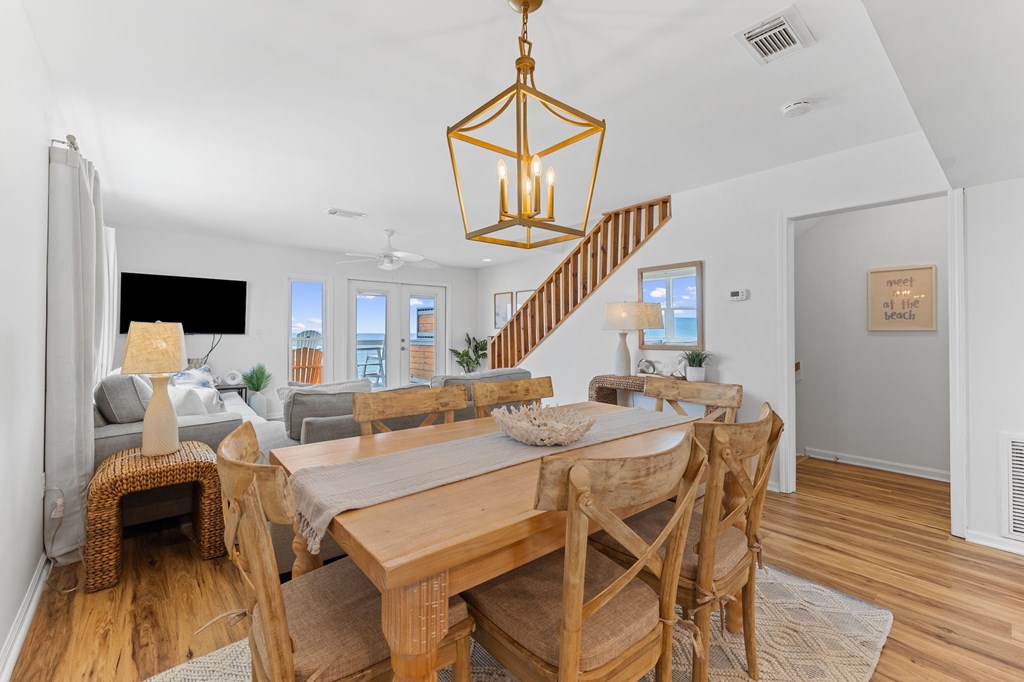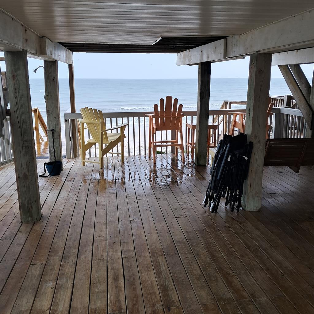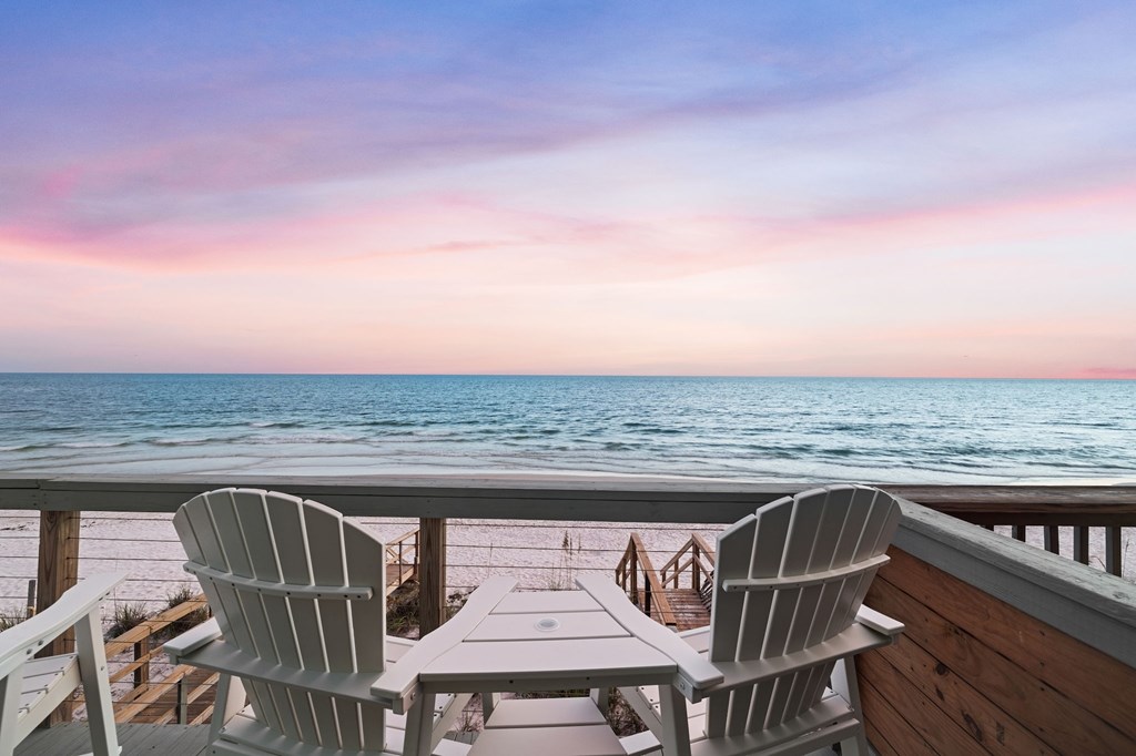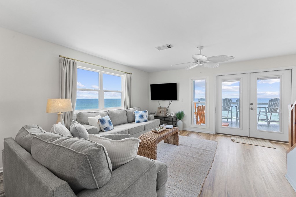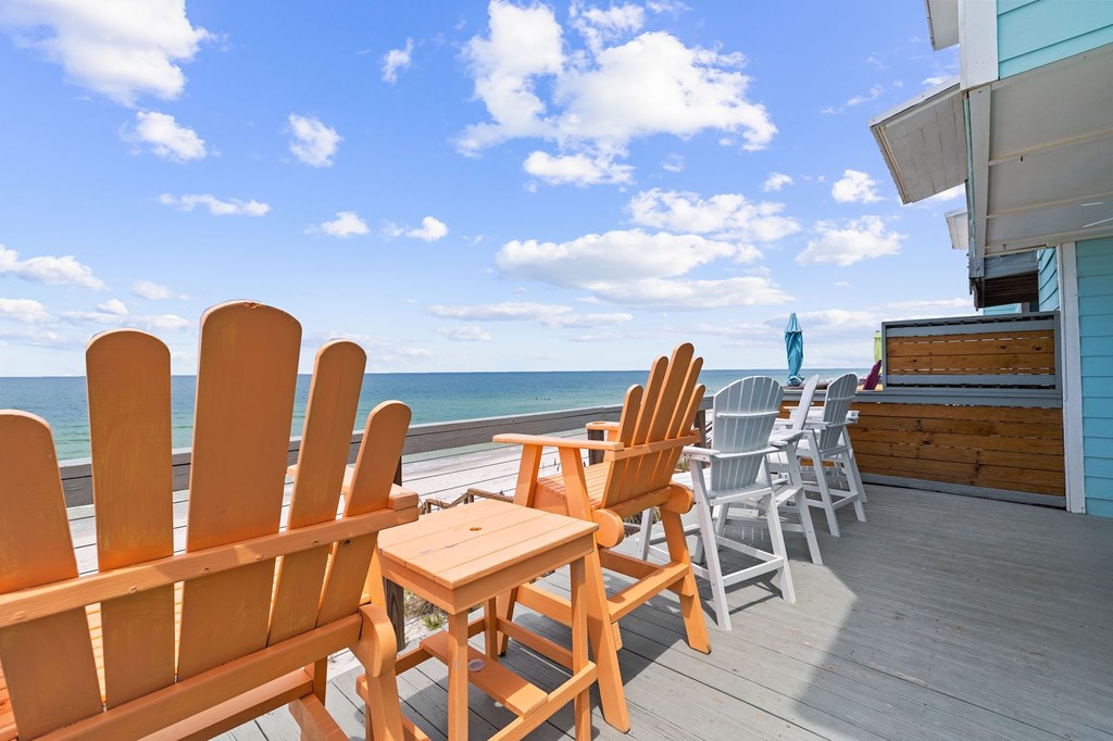 Once you see this beach front home you have arrived at Almost Heaven! One of the most popular vacation rental units on the Cape! This glorious location is a fully furnished with all new furniture and new appliances and stocked 2 level end unit home in a beachfront tri-plex. A great benefit to you is NO Homeowners Association! The upstairs master bedroom balcony has been converted into a fully enclosed alcove with panoramic ocean views. Both bedrooms are master suites, plus a half bathroom for guests. Newer metal roof and storm impact rated dual pane windows make this place snug and safe in any weather. New central air conditioner, furnace and all newer appliances make this move-in ready and relatively maintenance free. Superior vacation rental history with numerous returning guests year after year. 1st and second level ocean view decks have plenty of room for the whole crew to enjoy the magnificient views. New wooden walkway and just a few steps to miles of white sandy beach await you. The carport has a cement base and plenty of room for parking for your vehicles. Engineered pilings and newer flooring make this place sturdy and inviting for you, your famiy, and all your guests.