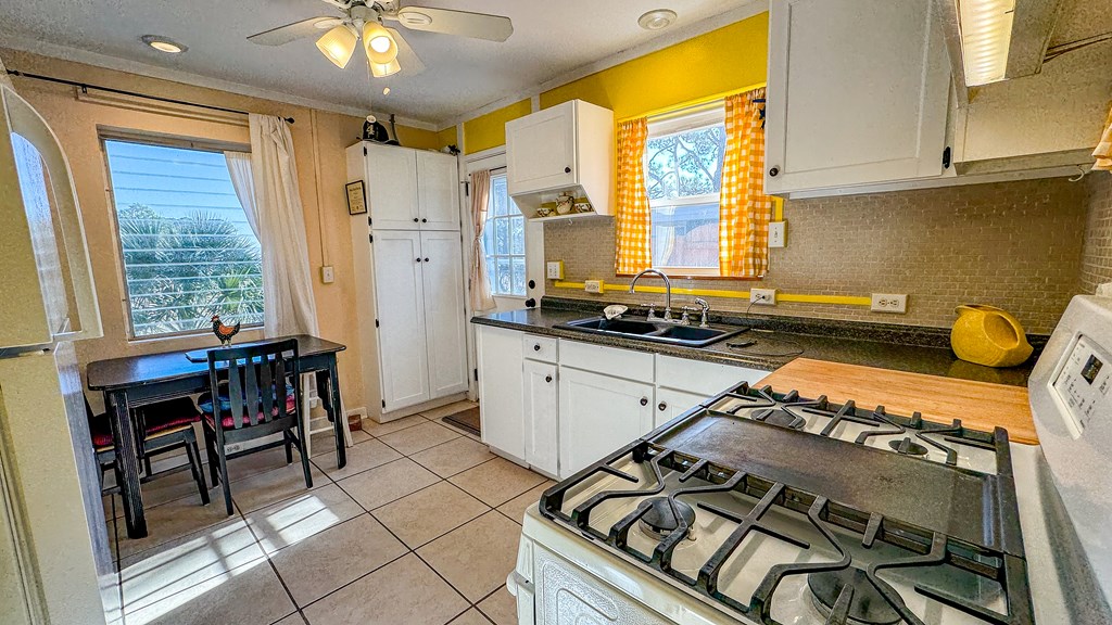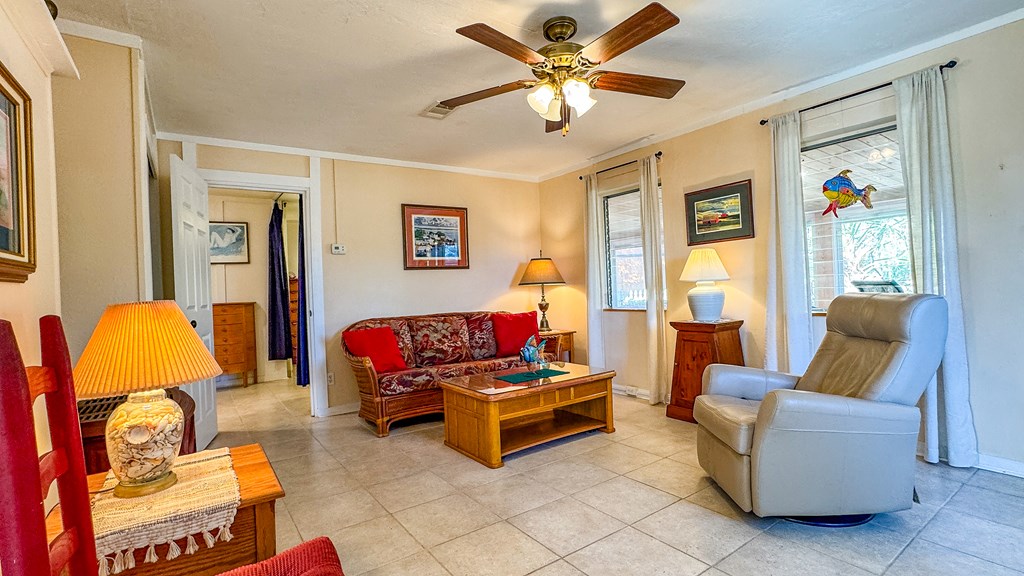 Peaceful Gulf-view living in a quiet location! This beautifully upgraded home sits directly beside a manicured golf course, offering serene Gulf views and cool coastal breezes under the shade of mature pines. Recent upgrades include a spacious porch/great room addition with Gulf and tree views, a new laundry room with washer and dryer, a roof upgrade, improved kitchen lighting and electrical, custom cabinet doors, solid wood interior doors, new central air and heating, and a water heater. Home is fully furnished, featuring two gas-burning fireplaces, a new flat-screen Smart TV, a sofa bed with a thicker mattress, and original artwork by Neal Smith-Willow. Located in a welcoming community offering a clubhouse with potlucks, game nights, dances, workshops, fitness classes, bingo, and more. Quiet neighbors, Gulf breezes, and golf course beauty—your own piece of paradise awaits!
