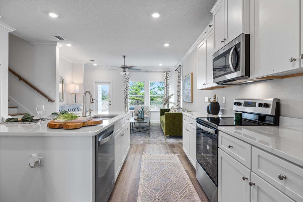 Welcome to 303 Vermilion Circle, located at Windmark Beach. The Alabaster plan is a stunning 2 story home featuring 4 bedrooms, 3.5 bathrooms and EVP flooring throughout. As you enter the home, you are greeted by an open living area and a beautiful kitchen complete with quartz countertops, Ivory painted Shaker-style cabinetry, and a large island with a stainless-steel single basin undermount sink. The spacious primary suite is located on the first floor and is completed with an oversized, modern tile shower with a glass door, and a large walk-in closet. The first floor also features a half-bath and a covered patio with charming water views to make entertaining a breeze. On the second floor you will find an additional family room, 2 full bathrooms, and 3 guest bedrooms. Located directly across the Gulf, you will find beautiful beaches within walking distance, and local restaurants close by. Easy access to Tyndall Air Force Base, Panama City Beach, and downtown Pt St Joe. Enjoy all that Windmark has to offer; town center with food, shopping, a gym, boardwalks, bike paths, golf cart paths, and multiple beach accesses, along with 2 pools!