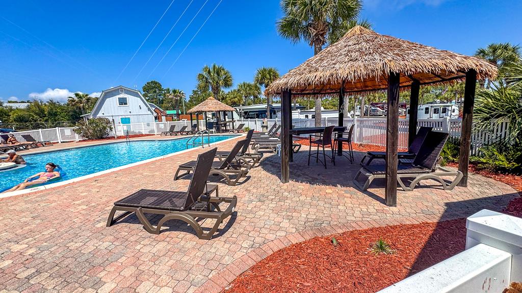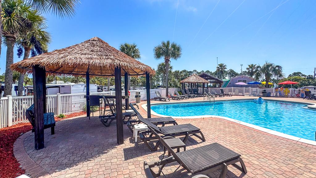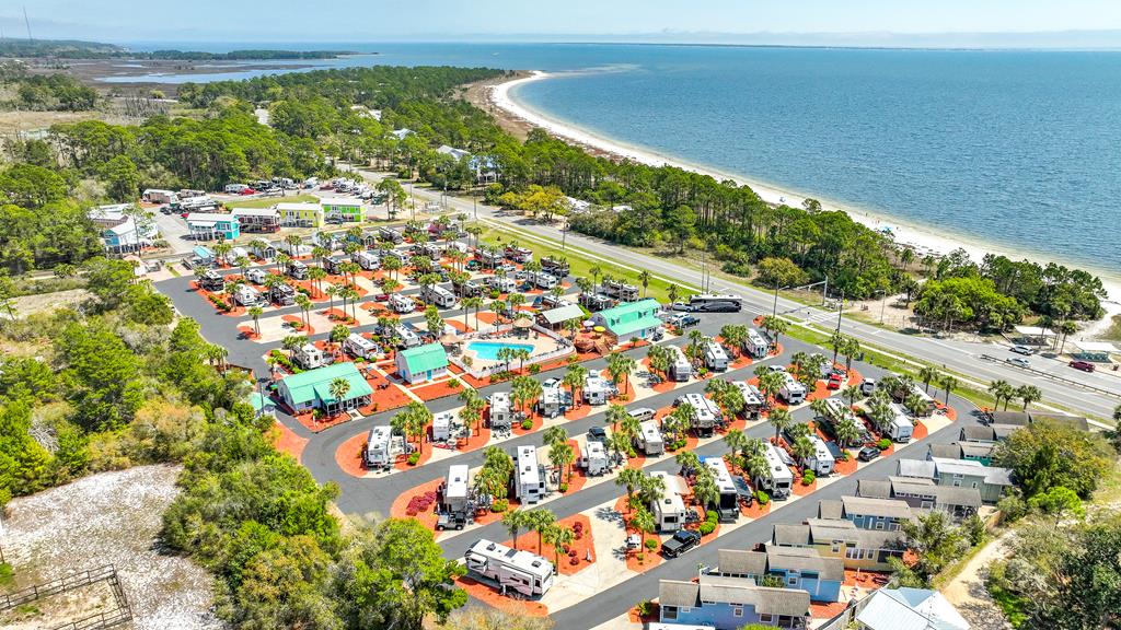 PRICE REDUCED!!!! Escape to the coast in this meticulously maintained cottage located in the heart of the Carrabelle Beach RV Resort, the proud recipient of the 2025 Best of the Best Campgrounds Award. Situated directly across the street from the sands of Carrabelle Beach, this fully furnished retreat offers the ultimate turn-key coastal lifestyle. The interior is thoughtfully decorated and designed for comfort, featuring a private primary bedroom with a queen bed, a brand-new sleeper sofa, and a versatile loft equipped with two twin beds. You will stay cool year-round thanks to a brand-new AC unit installed in June 2025. The home flows seamlessly outdoors with two distinct living spaces: a welcoming open covered front porch and a private screened-in porch at the rear. The kitchen comes fully equipped with every essential, making this a perfect vacation getaway or money producing rental. Enjoy premium resort amenities including a heated pool, a massive open sun deck for socializing, a community room with a full kitchen, on-site laundry, and a dedicated dog walk area. Do not miss your chance to own a piece of paradise in one of the region's most celebrated resort communities.