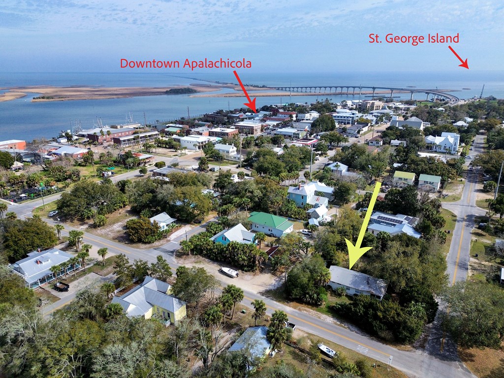 From downtown Apalachicola travel SW on Avenue E to 5th Street and turn NW. Travel two blocks to corner of 5th and Avenue G. Home is on SE corner of intersection.