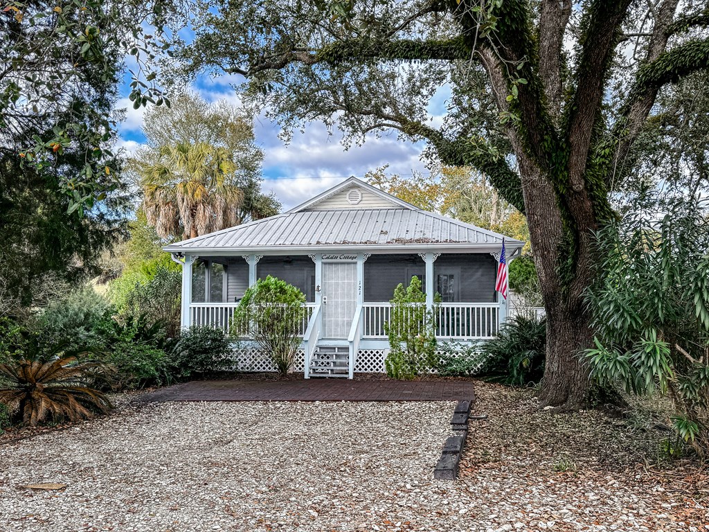 Charming cottage in Apalachicola's Historic North Side! This 2-bedroom, 2-bath home offers 1,232 sq ft of comfortable living space on a 60x100 lot just minutes from downtown shops, restaurants, parks, and the public boat ramp. Built in 2001, the home features oak hardwood floors, stainless steel appliances, and a full-house security system. Both bathrooms have been completely renovated, including new plumbing. Outdoor highlights include an irrigation system with a dedicated well. A whole-house water filtration system with water softener adds comfort and convenience. Ideal as a getaway cottage or full-time residence close to everything Apalachicola has to offer.
