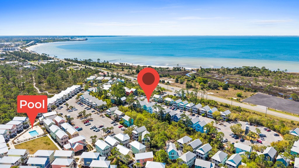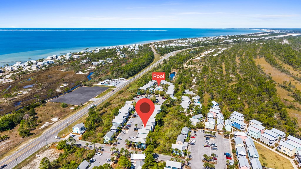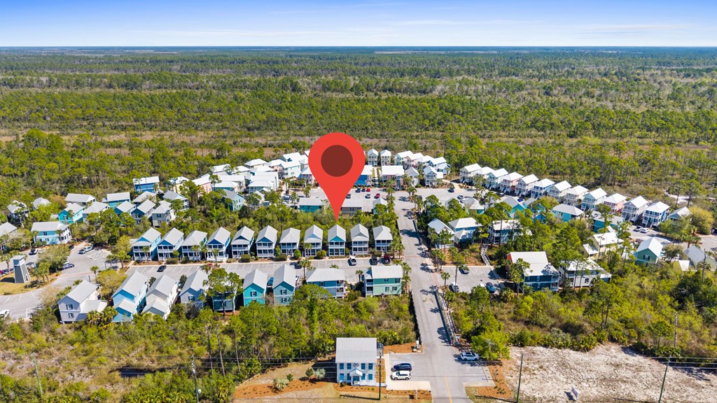Hwy 98 to Barefoot Cottages. Gate code required. Take 1st left, home will be on right.