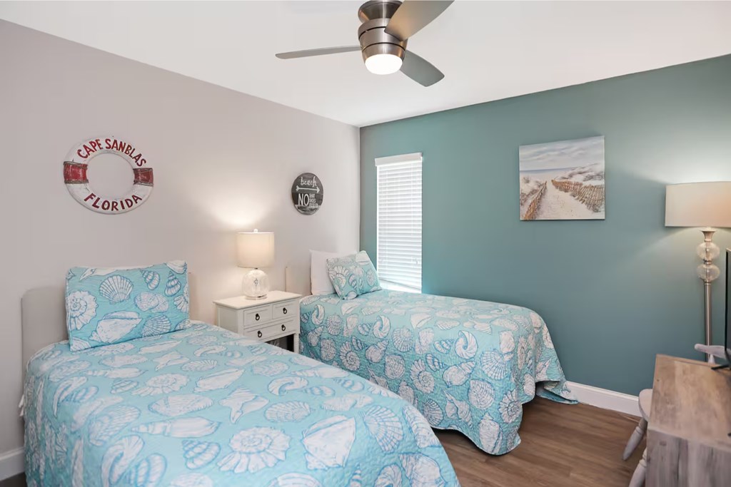 From CR-30A, turn onto Cape San Blas Rd and continue 5.4 miles. Turn left onto Antigua Drive—the unit is in the second building on the right, bottom floor on the left.