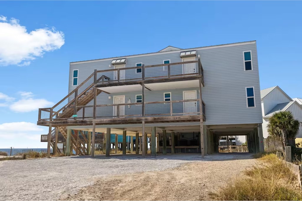 Step into coastal living with this beautiful home just a short stroll from the shores of North Cape San Blas. Designed with ease and comfort in mind, the home features a bright, open layout where the living and dining areas connect seamlessly to a spacious kitchen, complete with generous counter space and a casual breakfast bar—ideal for hosting family and friends. The residence offers three generously sized bedrooms, each showcasing stunning Gulf views. Two of the bedrooms share a full bathroom, while the primary suite provides a private retreat with its own bath, featuring dual vanities and a large walk-in shower. Enjoy peaceful mornings on the private deck off the primary suite as the sun rises, and relax in the evening on the main living area deck while taking in unforgettable sunset views. This is your chance to own a slice of coastal paradise—reach out today to arrange your private tour.