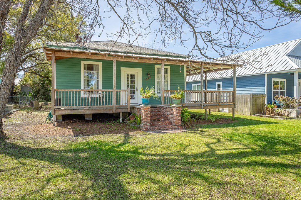 Step into the charm of historic Apalachicola with this beautifully preserved cozy cottage located at 112 14th Street, offering the perfect blend of timeless character and modern comfort. Ideal as a weekend getaway, full-time residence, retirement home, or income-producing long-term rental, this inviting home features a simple and functional floor plan with two bedrooms and two bathrooms, complemented by high ceilings and original heart pine floors, walls, and ceilings that showcase its historic roots. The updated kitchen and central heating and air provide modern convenience while maintaining the home's authentic character. Relax and unwind on the welcoming front porch, perfect for rocking chairs and enjoying the gentle bay breezes, or entertain guests in the comfortable living spaces filled with natural light. Situated in the Northside historic neighborhood, the property is located just across from Apalachicola Bay Charter School and on the same street as Lafayette Park and the Apalachicola dog park. It's a short walk, bike, or golf cart ride to downtown Apalachicola's shops, restaurants, parks, and marina. Outside, the home offers a lovely backyard with an outbuilding and a charming, landscaped front yard ready for your personal touch. Thoughtfully restored with an emphasis on preserving its original beauty, this cottage is a rare opportunity to own a piece of Apalachicola's history while enjoying all the conveniences of coastal living.