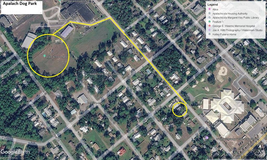 In Apalachicola take Hwy 98 to 14th St Go north 1 1/2 blocks. Home is between Ave F & G on the west side of 14th.