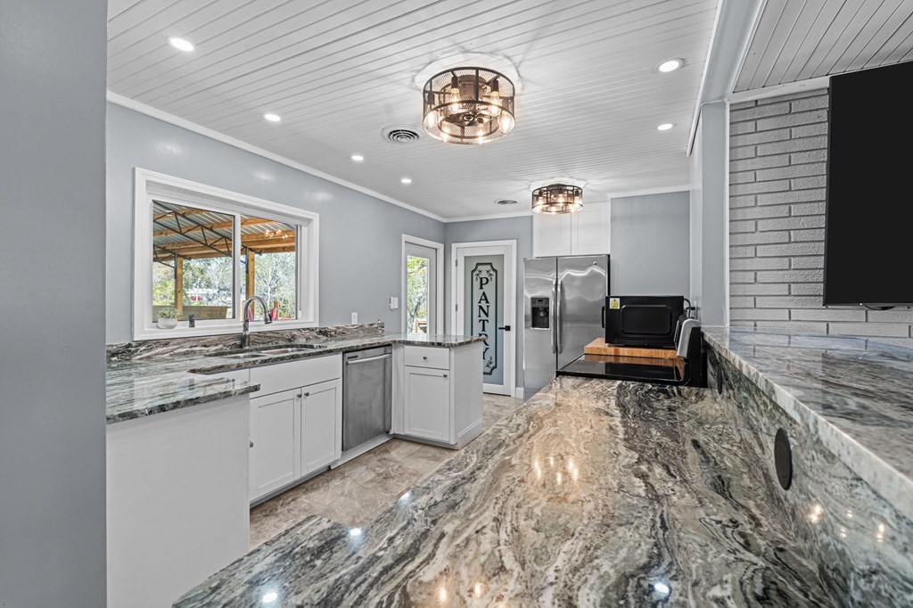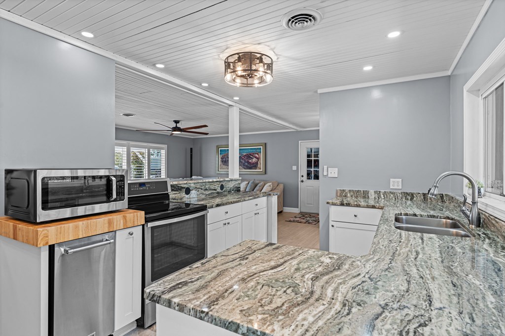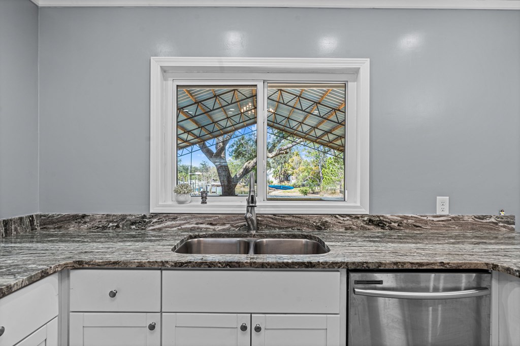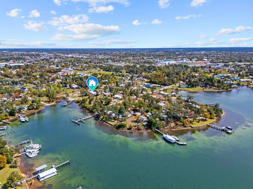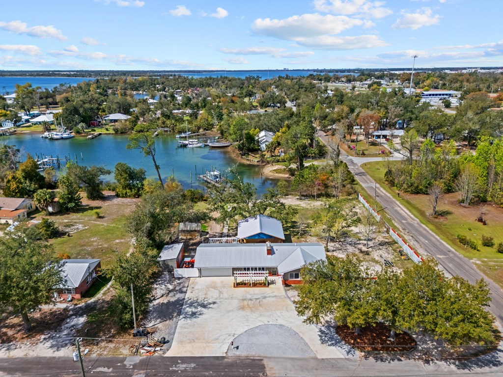 WATERFRONT ACREAGE WITH DIRECT BAY & GULF ACCESS -- A RARE FIND ON PARKER BAYOU. Positioned on a prime 1-acre corner lot with over 170 feet of deepwater frontage, this exceptional property offers immediate access to the bay and the Gulf of Mexico. The home features durable cinder block construction with stucco and Hardie board exterior, complemented by a new metal roof (2019) and extensive system upgrades throughout. Since 2019, improvements include all new windows and doors, HVAC system, Romex wiring, stainless steel appliances, and granite countertops--delivering modern reliability within a solid structure. Additional upgrades include fully remodeled kitchen and bathrooms, new interior doors, plantation shutters, shiplap ceiling detail, new flooring, and a new garage door. The oversized garage includes utility rooms for substantial storage, plus an additional outbuilding for added flexibility. Outdoors, the property is designed for both function and lifestyle. A newly constructed dock and boat lift provide immediate waterfront usability and significant cost savings. The backyard features a 30x30 pole barn/pavilion overlooking the water, complete with a pool beneath--creating a true waterfront retreat. The dedicated beach area and expansive yard offer endless potential, making it ideal for those seeking waterfront living with room to expand, entertain, or create a custom outdoor oasis. The home sits elevated with a full gutter system and drainage in place for water management. Conveniently located near Tyndall Air Force Base, shopping, dining, schools, and everyday amenities, this property offers a rare balance of accessibility and private, tranquil waterfront living. Boat and tractor are negotiable.