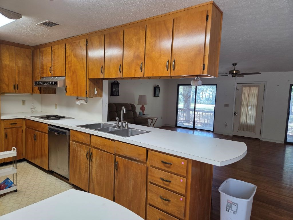 Looking for a home with a water view without being directly on the water? This property offers views of the bay & sits on approximately 2 private acres, providing space & privacy with no neighbors right on your property line.The home features 3 BR & 3BA, plus an additional room that could easily serve as a 4th BR, office, or hobby space.The split BR floor plan includes a spacious master suite with built-in drawers, 2 closets & a private bath.Sliding glass doors in the master BR open to views of the bay.The large living room includes 2 sets of sliding glass doors, allowing plenty of natural light & beautiful bay views.The living room, dining area, & kitchen flow together in an open layout perfect for entertaining.The kitchen offers high countertops, abundant cabinetry, double-door refrigerator, cooktop stove, wall oven, dishwasher, & garbage disposal.Wood floors throughout the home, with vinyl flooring in the kitchen & bathrooms (vinyl flooring needs replaced).Separate laundry room off the kitchen with washer/dryer hookups, laundry tub, & garage access,whole house 22KW Generac generator with large LP tank, Attic fan, Accordion hurricane shutters on most windows & panel shutters for sliding doors. Outdoor amenities provide plenty of storage & workspace; 3 metal storage buildings, including a workshop, 3 door garage (two doors on one side and one rear door), aluminum carport, front porch with a great bay view, which could easily be screened for a bug free outdoor living area. Home is conveniently located 10 miles to Carrabelle Beach, approximately 1 mile to a public boat launch, 20 minutes to St. George Island, 45 minutes to the historic town of Apalachicola. Enjoy fishing, boating, hunting, and wildlife viewing in the nearby state forests.Private land in Franklin County is becoming increasingly limited as much of the surrounding area is protected forest.No HOA dues. Home does need some improvements & TLC but offers excellent potential. Lot dimensions are approx.