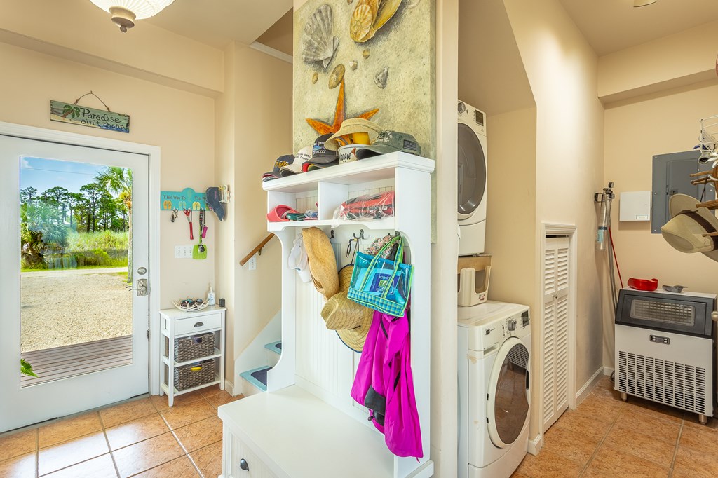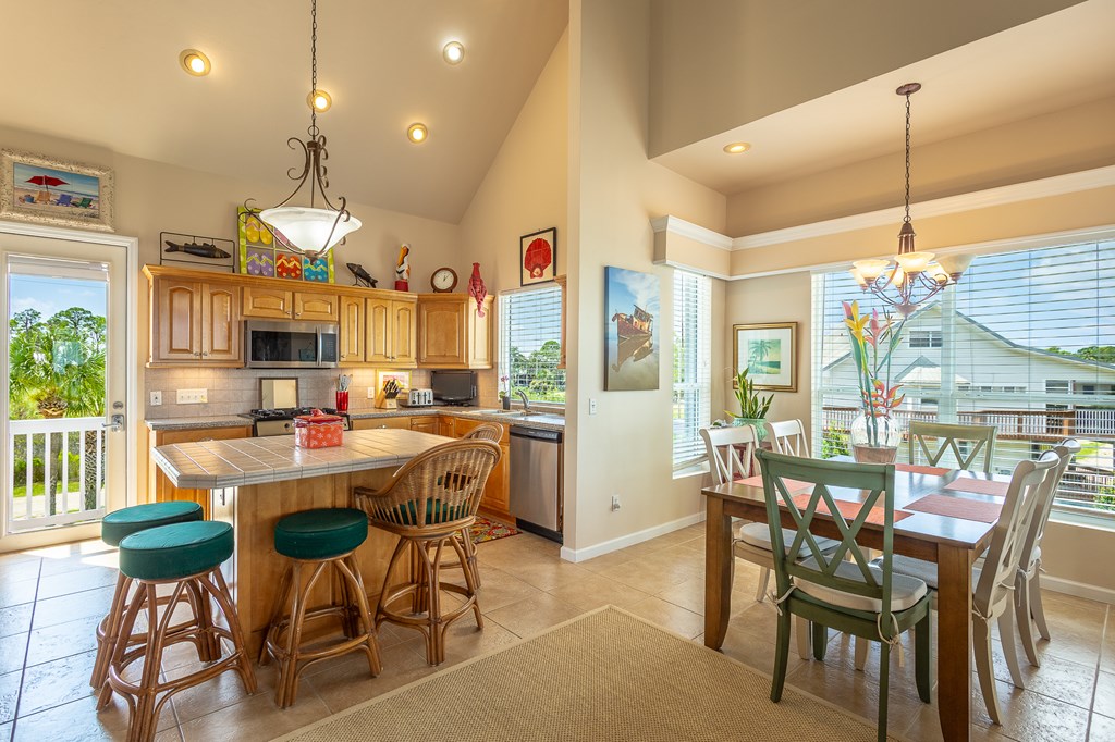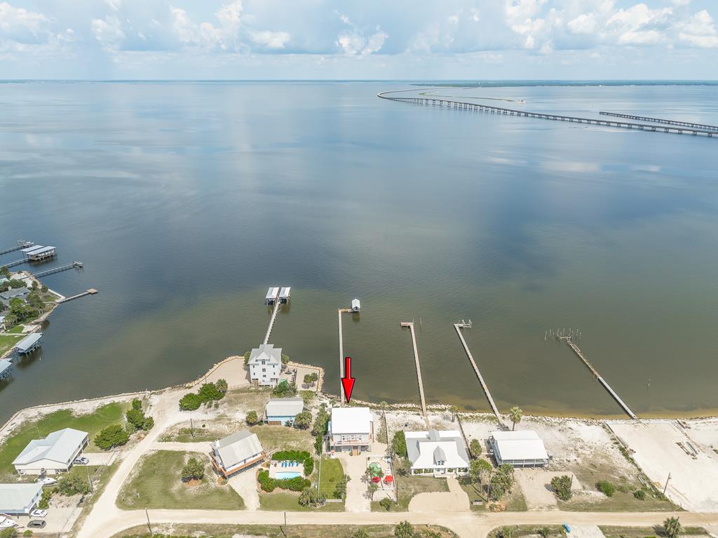 A Bayfront Escape for All Seasons- whether you're here for summer boating, autumn fishing or winter sunsets, this spacious waterfront retreat has it all. Expansive decks for entertaining, guest – friendly spaces and your own private covered deep water dock with a boat lift (approx 7,000 lbs)set the stage for unforgettable coastal living. Enjoy white sand beach frontage, a private swimming pool and the convenience of a cargo lift. The welcoming entry features a covered deck with comfortable outdoor seating, a ceramic tiled foyer with washer & dryer and ample storage areas. The first living level offers a bayfront king master suite, a guest bedroom and bath and an amazing cathedral ceiling living room with panoramic water views. The open dining area flows into a thoughtfully designed kitchen with a gas stove, island with extra seating & 2 utility closets. Ceramic tile runs throughout, leading to a spacious outdoor deck of the living area, plus a covered lower deck perfect for a porch swing, hammock and additional seating (approx 10'x32') The loft level is perfect for guests, with 3 beds, a TV seating area, a full bath & large storage space for seasonal items, well and irrigation system. Golf cart to shops, dining and the Lighthouse Park. The information in the Tax Assessor website does not include the loft which is approx. 400 sq ft plus unheated storage spaces approx 192 sq.ft. BUYER to verify all dimensions.