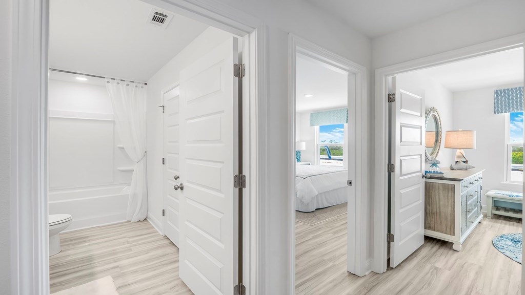 Introducing Salt Creek, the newest townhouse development in Mexico Beach. Nestled on the eastern edge of Bay County. This is a 4 bedroom, 2.5-bathroom townhome. On the outside of these units, you will see quality Color-Plus Hardie Board exteriors, complemented by prairie-style doors and 30-year dimensional shingles. Convenience meets security with steel garage doors equipped with openers, weatherproof outlets, hose bibs, and Kwikset deadbolts on all exterior doors. As you enter inside, you will feel right at home with beautiful EVP flooring at your feet, leading you to the open living room and kitchen or the spacious upstairs. In the kitchen and bathroom, you will find gorgeous quartz countertops, white cabinets with brushed nickel hardware, and stainless-steel appliances in the kitchen. Stay cool at the beach with energy-efficient cooling and heating systems, Low-E insulated windows with screens, and water-saving elongated commodes. For added security, every home comes equipped with a Safe Haven Surveillance system, Skybell doorbell, Honeywell thermostat, and DEAKO Smart Switches. Rest assured with a one-year builder's warranty and a ten-year structural warranty. Escape the hustle and bustle with a peaceful community atmosphere free from heavy traffic and short-term rentals. Welcome to Salt Creek - where coastal living meets modern comfort.