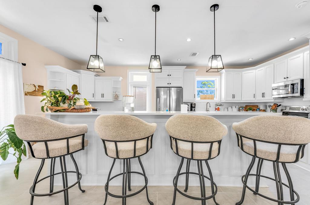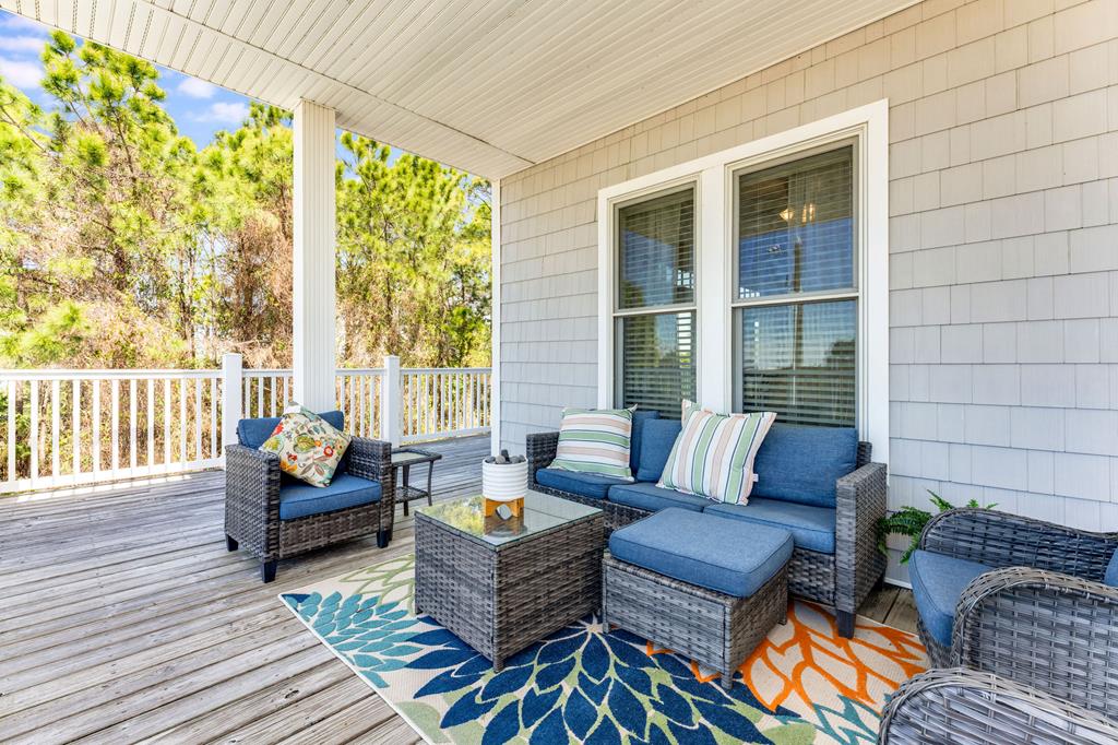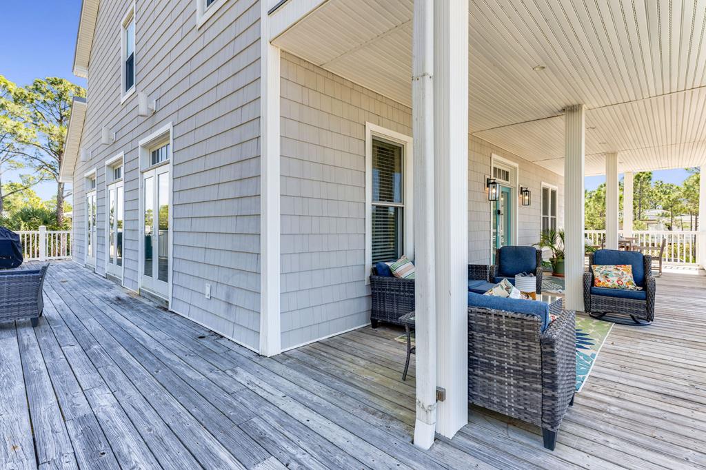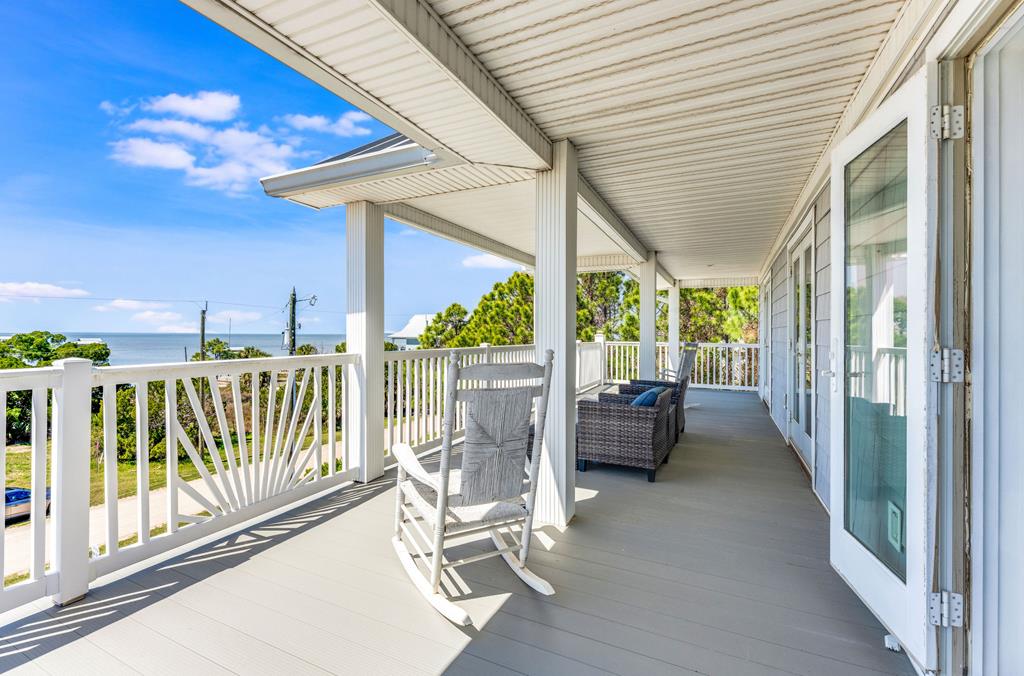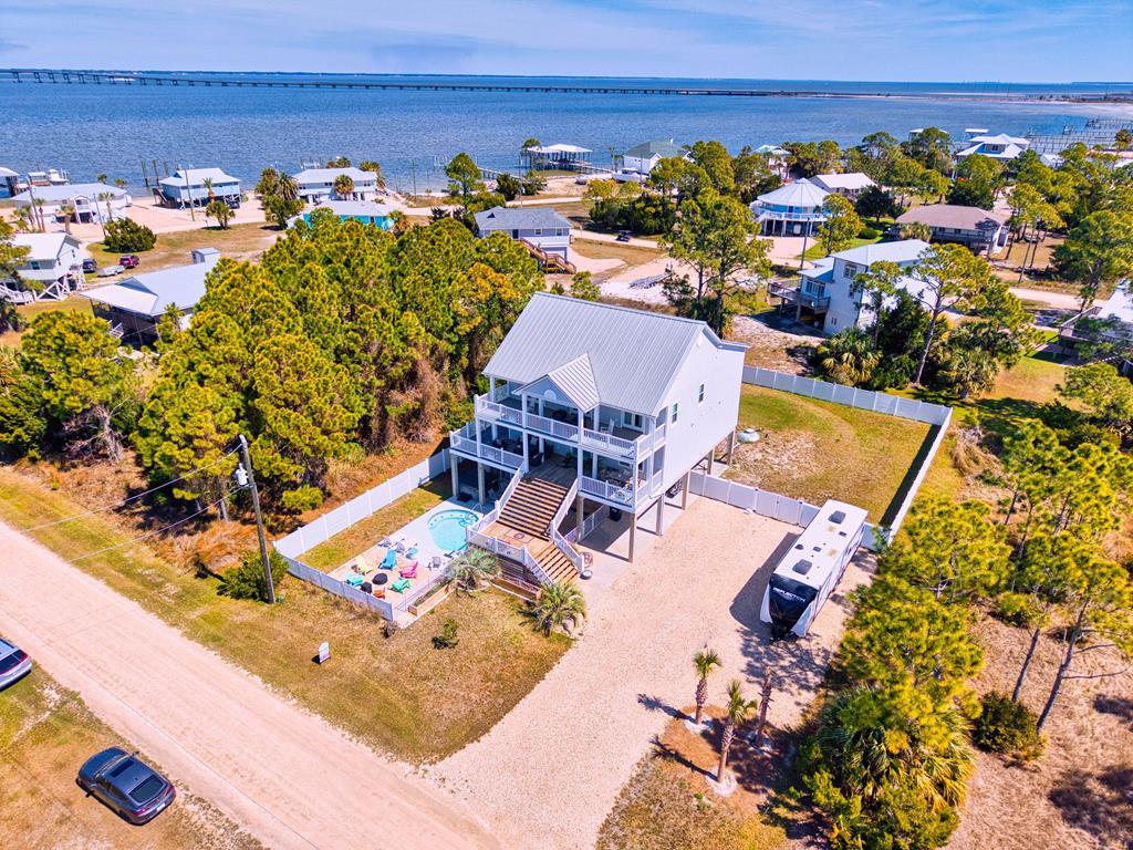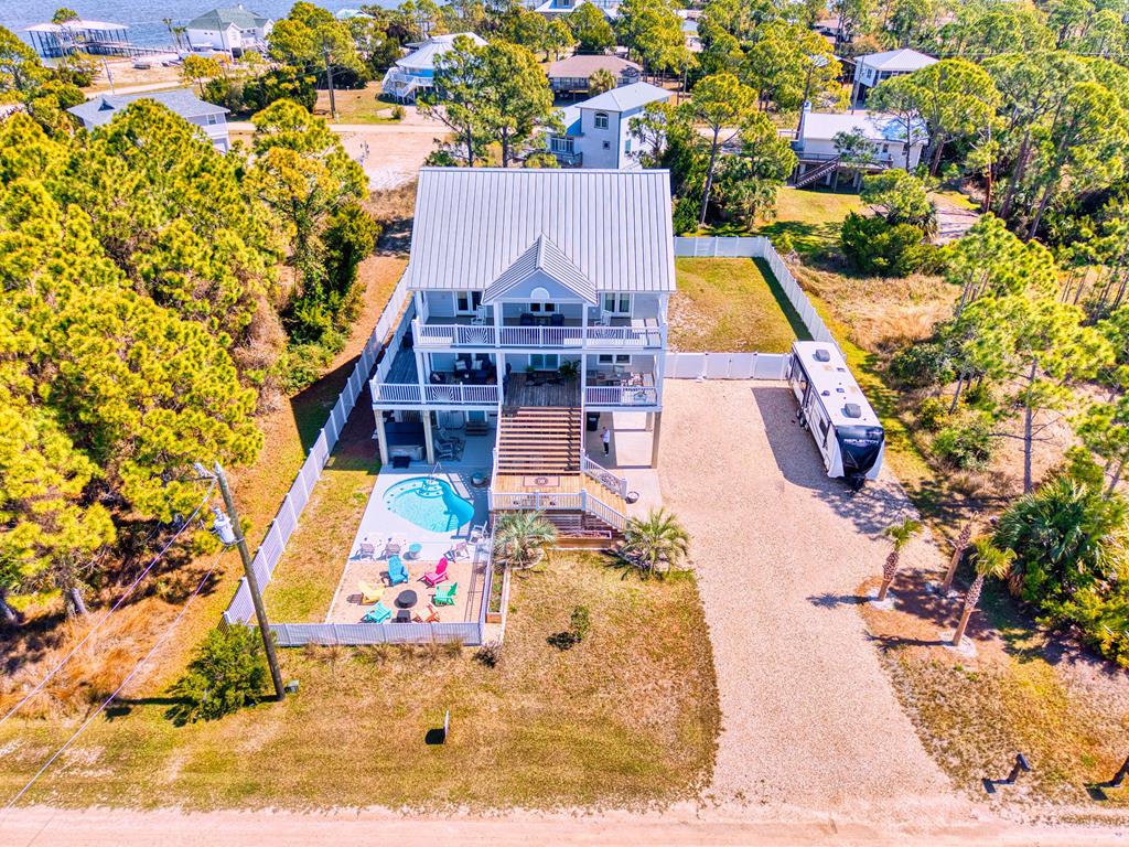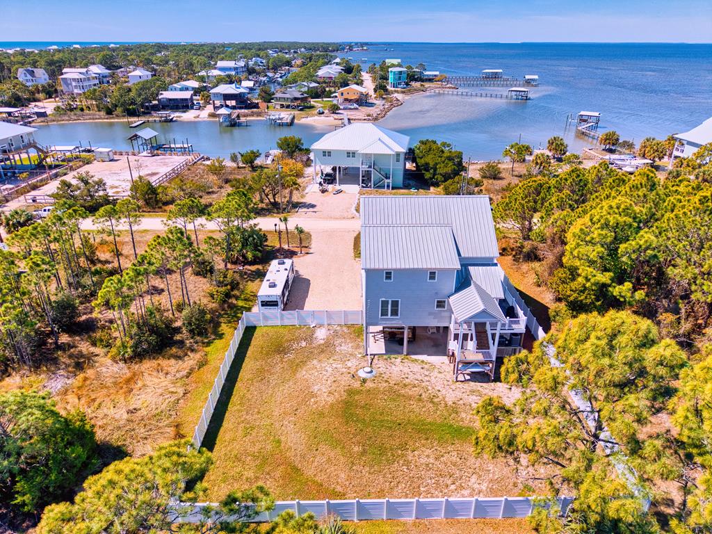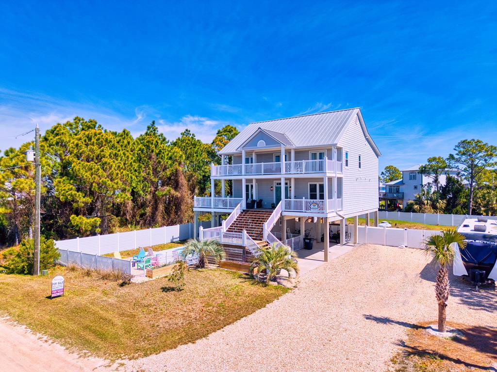 Check out this amazing Bay View home located on beautiful St. George Island, close to the commercial district yet tucked away from all of the island hub bub. This furnished (with a few exceptions), turnkey home is beautifully curated and completely equipped, offering a seamless transition for both personal enjoyment and high-performing vacation rental use. Inside, the home opens into a bright, airy floor plan, the well-appointed kitchen flows effortlessly into spacious living and dining areas, creating the perfect setting for entertaining after a sun-soaked day on the water. The interior space offers unparalleled opportunity for your own private space when needed, yet outstanding open living concept that welcomes anyone the minute they step inside. All four bedrooms have ensuite baths and with that amount of space, it explains why there are TWO laundry rooms! Expansive furnished decks frame the tranquil bay views and unforgettable sunsets, creating the perfect backdrop for morning coffee or evening cocktails. The private pool offers a refreshing retreat, inviting guests to unwind, recharge, and fully embrace the rhythm of island time. Designed to comfortably accommodate large families or multiple groups, this home is as versatile as it is inviting. Its prime location and proven rental appeal make it a standout investment opportunity, while its warmth and livability make it a place you'll never want to leave!