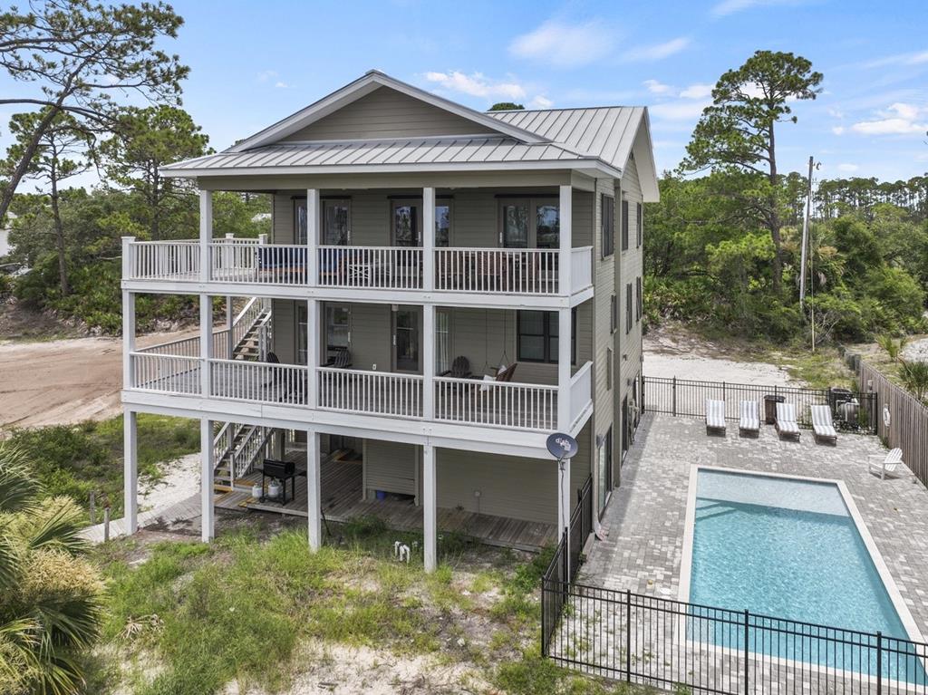 Huge well maintained Indian Pass beach house that is steps to the sand and loaded with amenities. This home is being sold fully furnished and equipped and has a great rental history. It is finished out nicely with quartz countertops, hardwood floors, marble/tile showers, and more. Relax in a private heated pool with a large paver deck for enjoying the sun. This property is now part of the Redbird Beach Subdivision and this will be a first tier home.