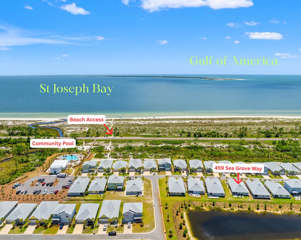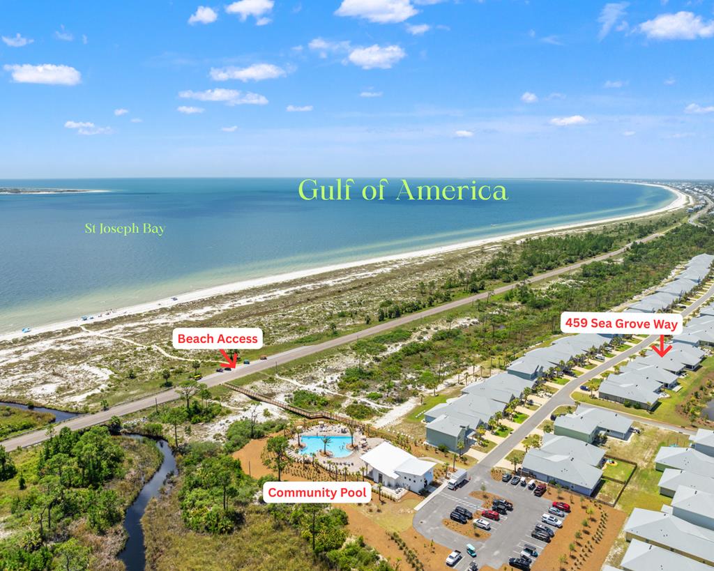 From Port St Joe travel west on Hwy 98 for 5.6 miles to Flat Water St West. Turn Right onto Sea Grove Way. Home will be located on the left.