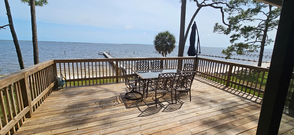 Bayfront Bliss: Turn-Key 2-Bedroom, 2-Bath Home with Panoramic Views. Welcome to your dream waterfront retreat! This stunning 2-bedroom, 2-bathroom home offers an unbeatable location and breathtaking views from every room. Located on the bay, this fully renovated property boasts a brand-new dock, perfect for boating enthusiasts. Key Features: 2 spacious bedrooms, 2 modern bathrooms New dock – perfect for fishing, kayaking, or boating Interior renovations throughout, including new floors, kitchen, and bathrooms. Efficient split heating and cooling units for year-round comfort and cozy fireplace in the living room, adding warmth and charm. Turn-key condition—just bring your personal items and move right in! Panoramic views of Dog Island, with large sliding doors opening to a private bayfront deck Enjoy uncrowded beaches just a short boat ride away—perfect for relaxation. Expansive downstairs workshop and storage space Beautifully shaded lot with ample parking for guests Whether you're looking to escape the hustle and bustle or enjoy a peaceful lifestyle on the water, this home offers the perfect blend of comfort and natural beauty. A rare find—don't miss out on this opportunity to own a piece of paradise!