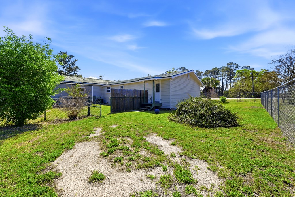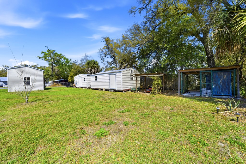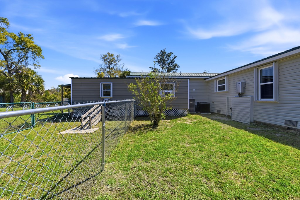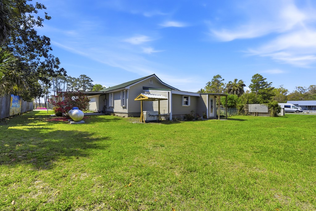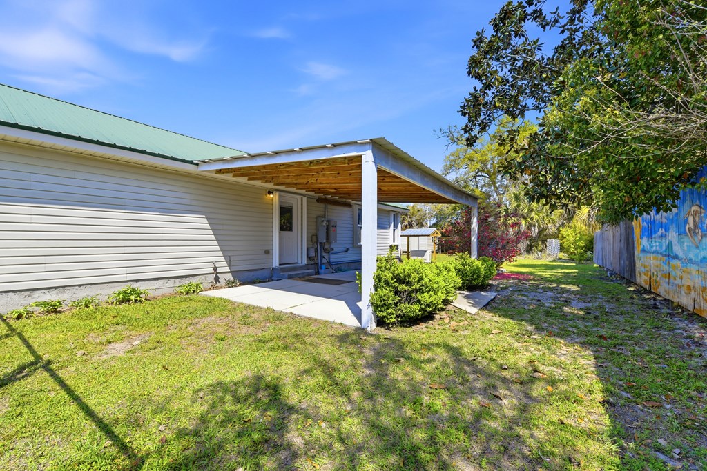 Multi-generational home located within 5 minutes of a boat launch and public beach access! The main home features 3 bedrooms and 2 bathrooms, a spacious kitchen, and a large living area perfect for entertaining guests. An attached 1-bedroom, 1-bath apartment offers a full kitchen and separate living room, providing ideal space for extended family, guests, or rental income potential. Both the main home and apartment share access to a large backyard. This versatile property includes a carport with storage room, two large sheds, covered pet kennel, covered lawn care storage area, and a covered awning for outdoor grilling and dining. The units can be enjoyed together or separated with the already installed interior lockout doors. Situated on three city lots, this property also features numerous recent upgrades, including a new HVAC system, Generac whole-home generator, EMP shield, and new tankless water heater. The carport and she shed have been wired with electricity, and hurricane shutters, storm doors, and new tie-downs have been added for extra peace of mind. A new fence has also been installed. Seller has a survey, 4-Point Inspection and Wind Mitigation Report available. This is a must-see property offering flexibility, upgrades, and coastal convenience.