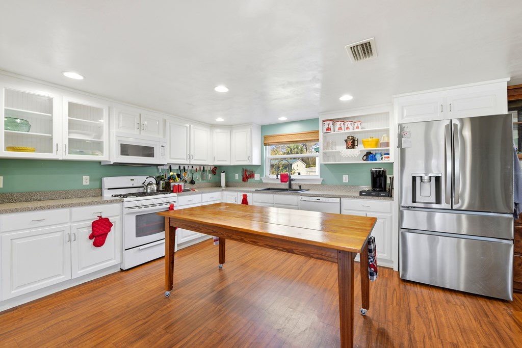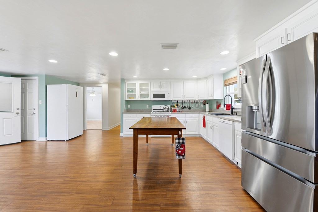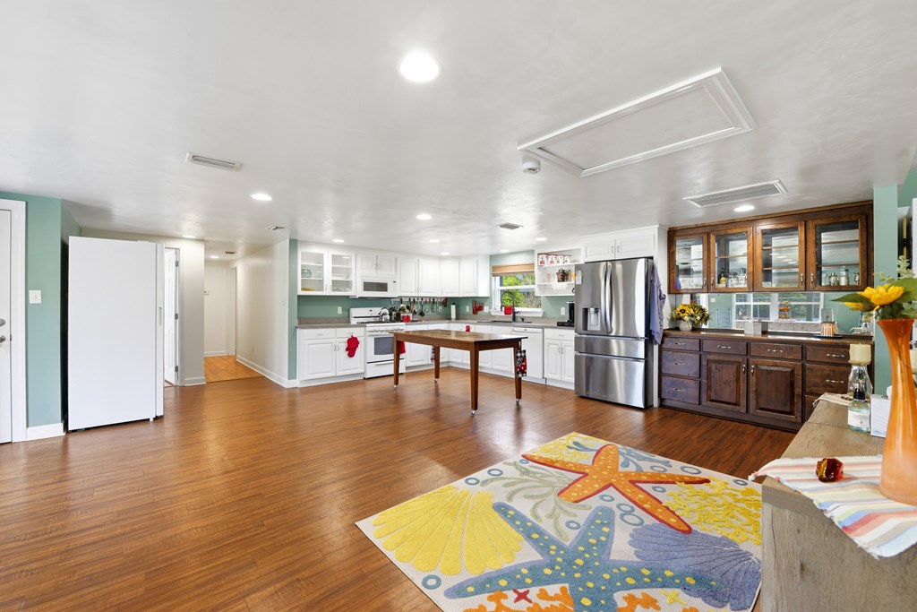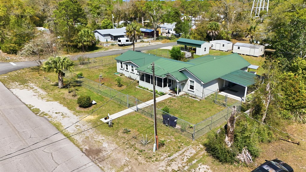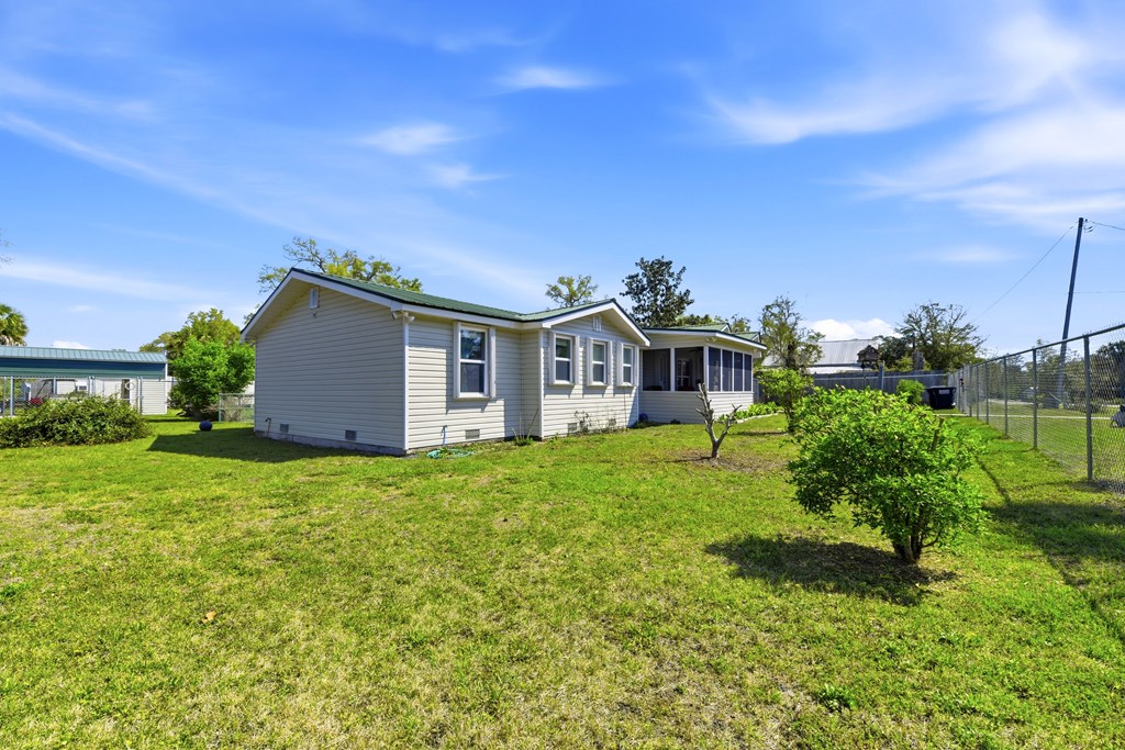 Multi-generational home located within 5 minutes of a boat launch and public beach access! The main home features 3 bedrooms and 2 bathrooms, a spacious kitchen, and a large living area perfect for entertaining guests. An attached 1-bedroom, 1-bath apartment offers a full kitchen and separate living room, providing ideal space for extended family, guests, or rental income potential. Both the main home and apartment share access to a large backyard. This versatile property includes a carport with storage room, two large sheds, covered pet kennel, covered lawn care storage area, and a covered awning for outdoor grilling and dining. The units can be enjoyed together or separated with the already installed interior lockout doors. Situated on three city lots, this property also features numerous recent upgrades, including a new HVAC system, Generac whole-home generator, EMP shield, and new tankless water heater. The carport and she shed have been wired with electricity, and hurricane shutters, storm doors, and new tie-downs have been added for extra peace of mind. A new fence has also been installed. Seller has a survey, 4-Point Inspection and Wind Mitigation Report available. This is a must-see property offering flexibility, upgrades, and coastal convenience.