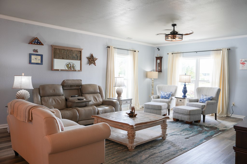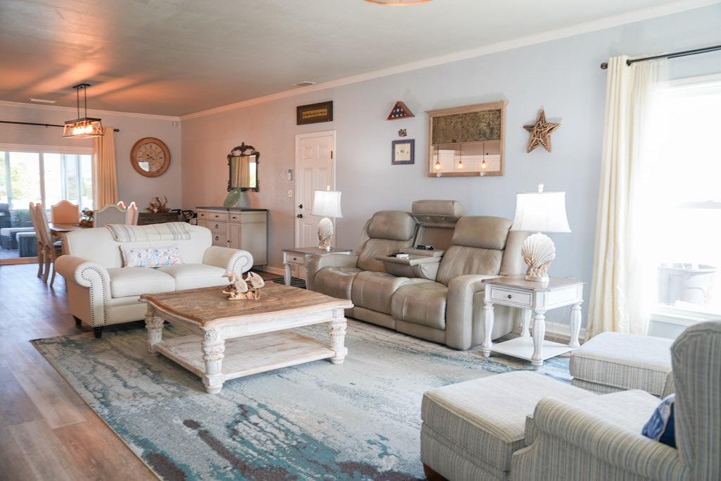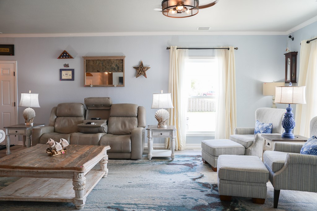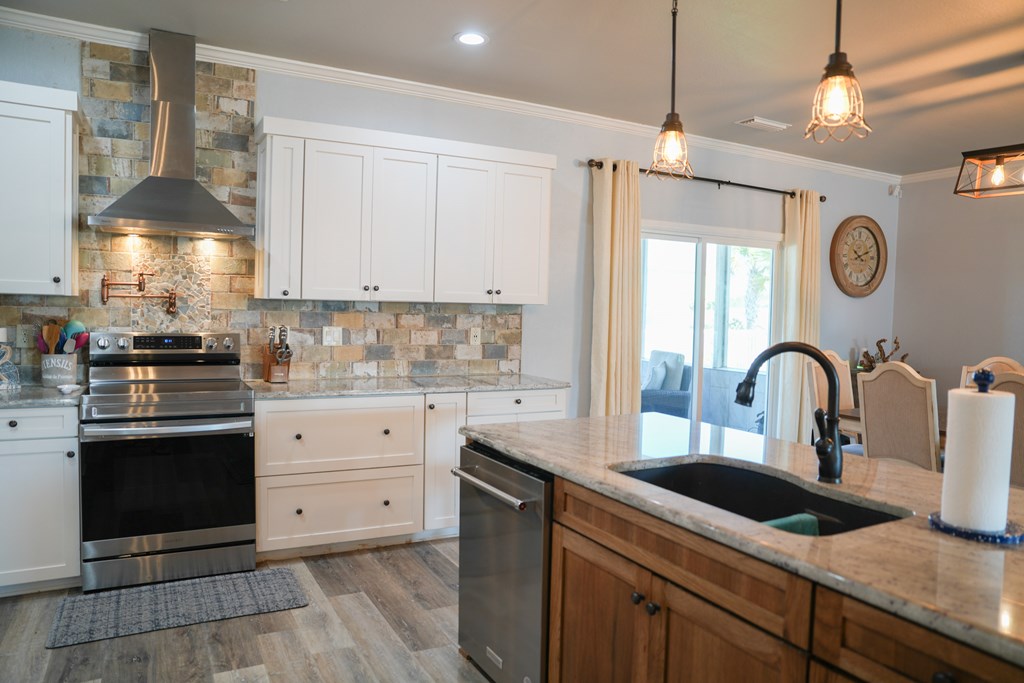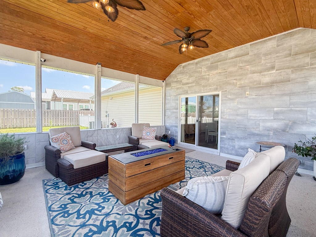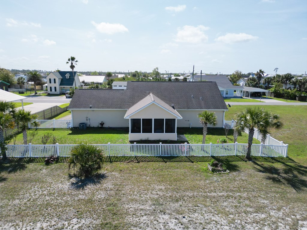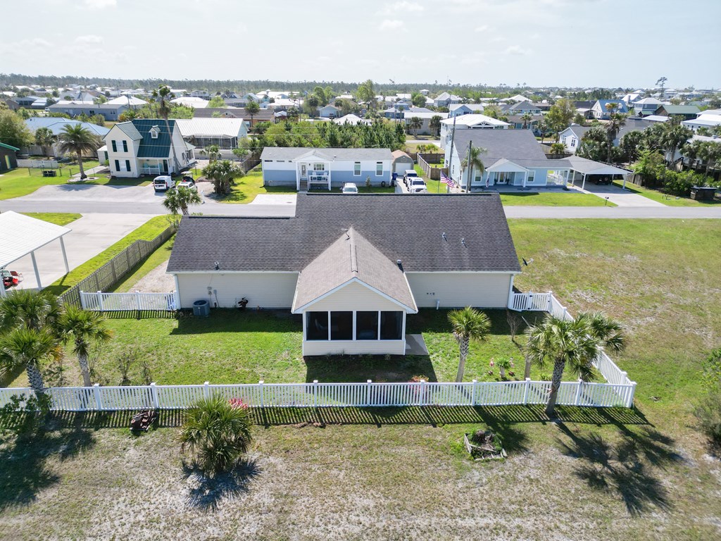 Welcome to your coastal retreat in the heart of Mexico Beach! This beautifully maintained 3-bedroom, 2-bath home offers an open-concept layout designed for comfortable living and easy entertaining. The spacious kitchen features granite countertops, stainless steel appliances, and a stylish backsplash, all flowing seamlessly into the dining and living areas. The open living and dining space creates a warm and inviting atmosphere, filled with natural light and perfect for gathering with family and friends. The dining area easily accommodates a full-size table, while the living room offers a comfortable setting to relax after a day at the beach. Step outside to your private outdoor oasis, where the lanai provides the perfect spot for relaxing, entertaining, or enjoying morning coffee. The fenced-in backyard offers additional space for pets, play, or outdoor gatherings. This home is located in the desirable X flood zone, offering added peace of mind, and is just a short golf cart ride to the beautiful white sandy beaches of Mexico Beach. Additional features include a two-car garage with a hoist system for convenient attic storage. The home is being sold partially furnished, making it an excellent option for a primary residence, vacation home, or investment property.