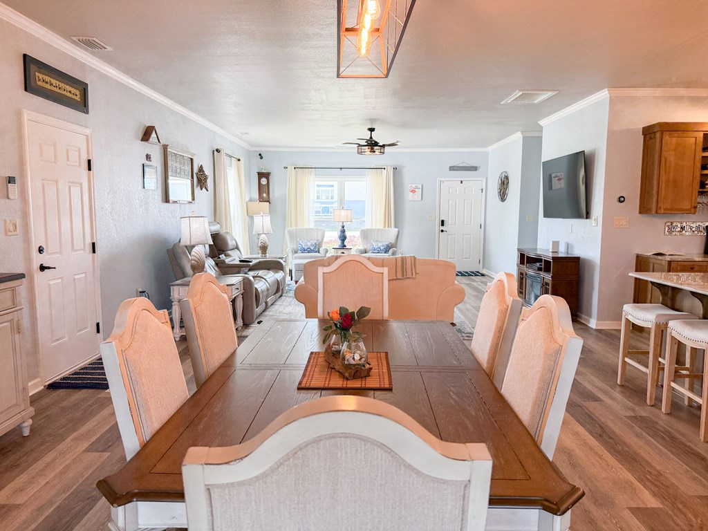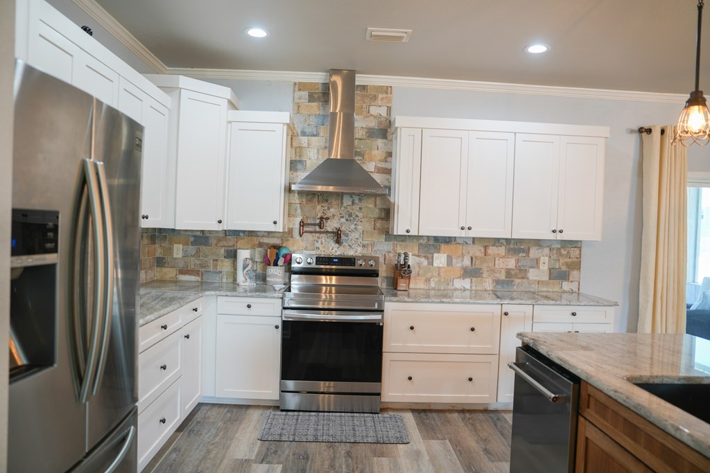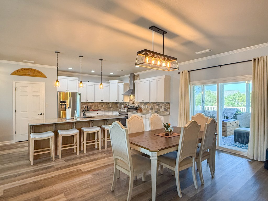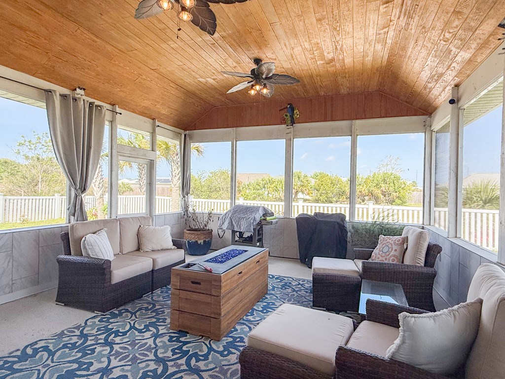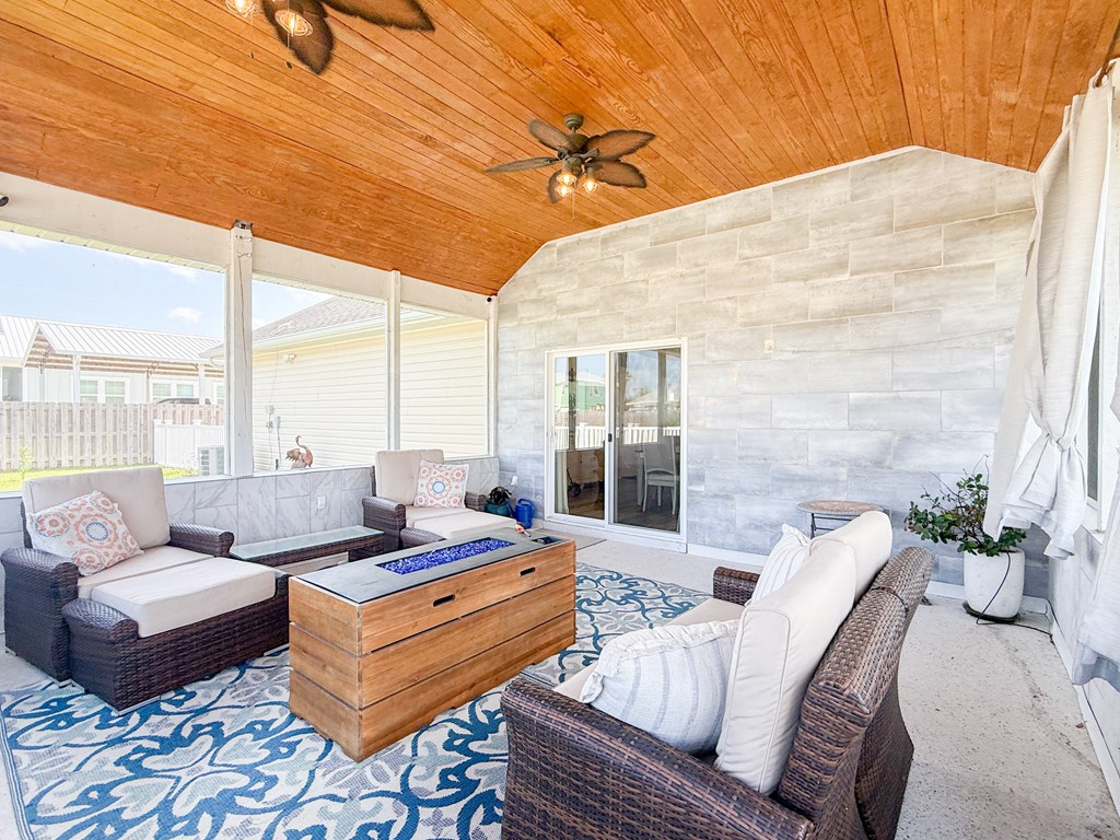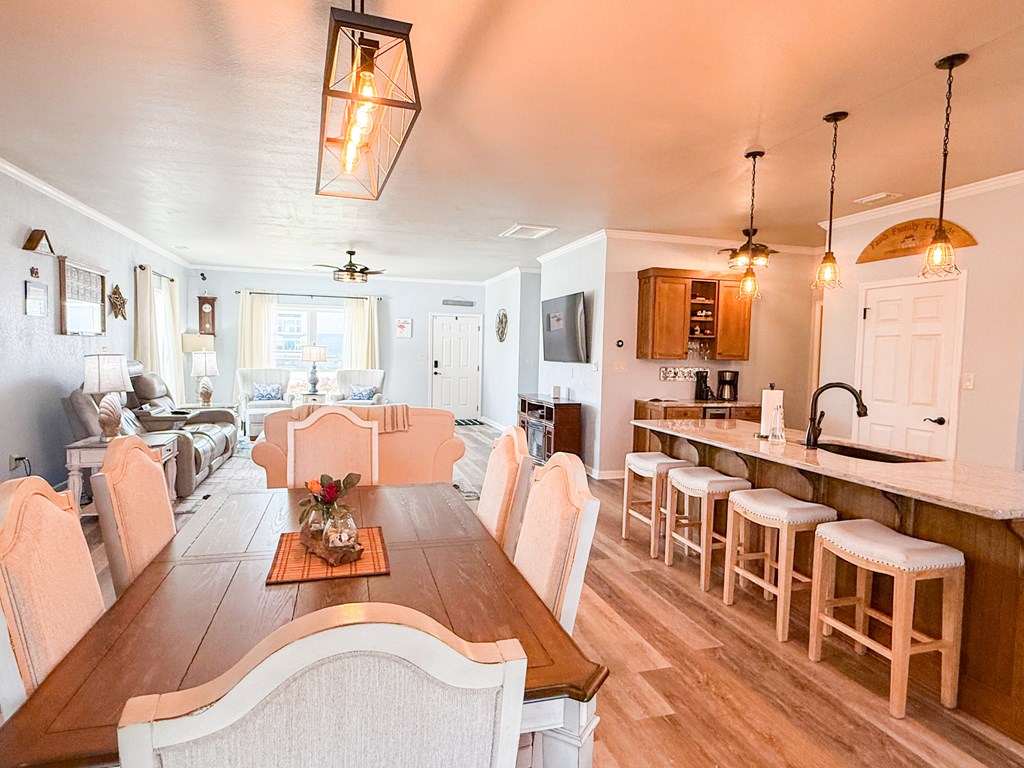 Welcome to your coastal retreat in the heart of Mexico Beach! This beautifully maintained 3-bedroom, 2-bath home offers an open-concept layout designed for comfortable living and easy entertaining. The spacious kitchen features granite countertops, stainless steel appliances, and a stylish backsplash, all flowing seamlessly into the dining and living areas. The open living and dining space creates a warm and inviting atmosphere, filled with natural light and perfect for gathering with family and friends. The dining area easily accommodates a full-size table, while the living room offers a comfortable setting to relax after a day at the beach. Step outside to your private outdoor oasis, where the lanai provides the perfect spot for relaxing, entertaining, or enjoying morning coffee. The fenced-in backyard offers additional space for pets, play, or outdoor gatherings. This home is located in the desirable X flood zone, offering added peace of mind, and is just a short golf cart ride to the beautiful white sandy beaches of Mexico Beach. Additional features include a two-car garage with a hoist system for convenient attic storage. The home is being sold partially furnished, making it an excellent option for a primary residence, vacation home, or investment property.