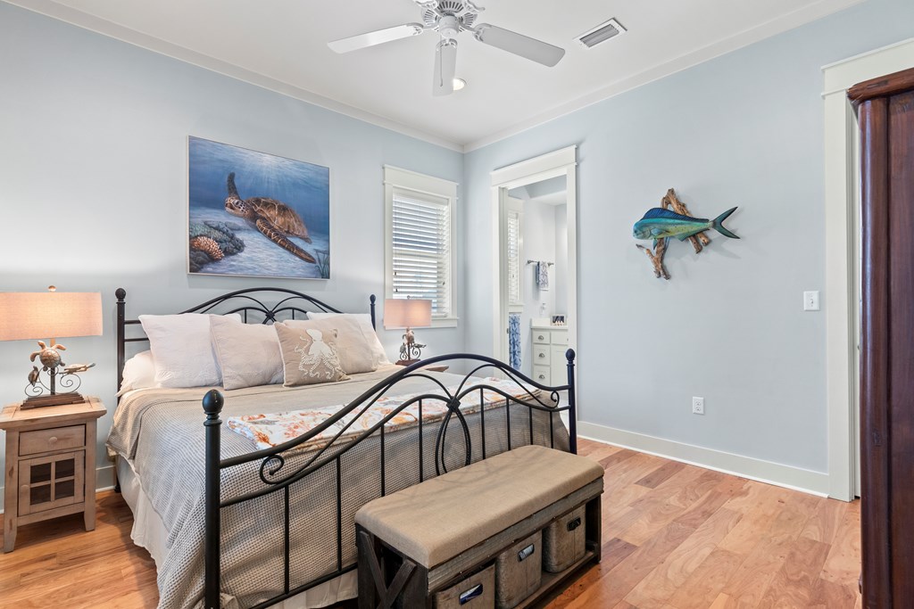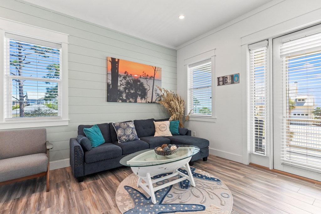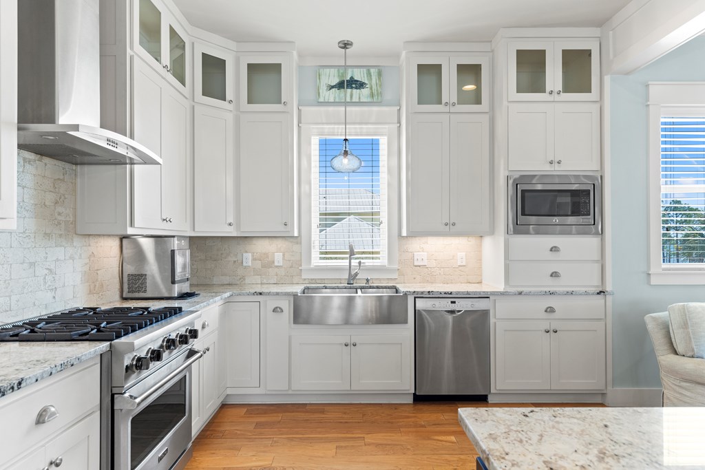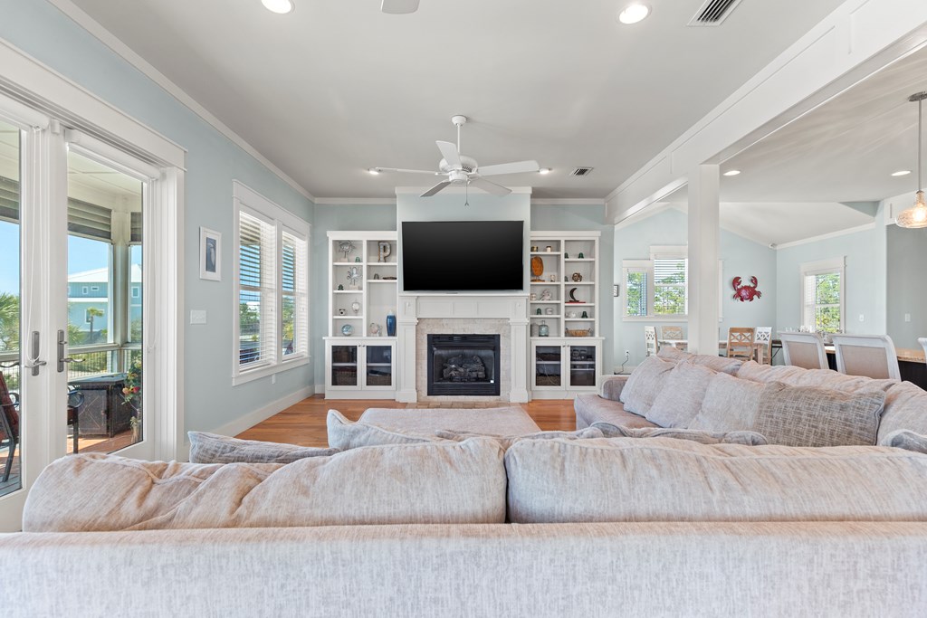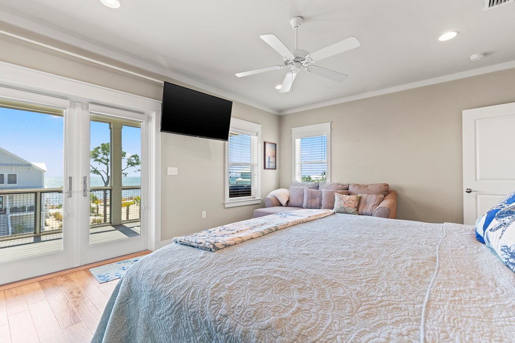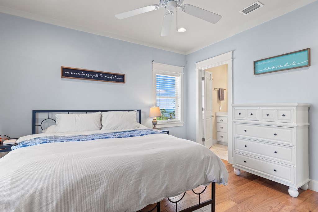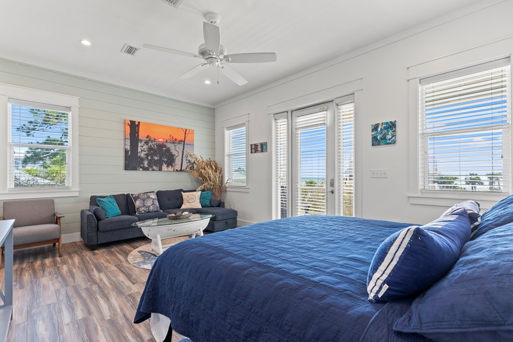 Welcome to 434 WindMark Way, a 4BR/4.5BA home with FOUR GARAGES located in the gated WindMark Beach Phase 1 community, offering 3,438 square feet of living space on a .44-acre lot with great Gulf views AND a completely detached guest house with its own garage. Built in 2015 and recently updated, this home is move-in ready and designed for both full-time living and second-home use. The main living area features an open-concept layout with raised ceilings, a fireplace, and an oversized kitchen with a large island, breakfast bar, large pantry, and plenty of cabinet spaceand a downstairs bedroom with its own private bathroom. An elevator services all floors, making access easy throughout the home. Upstairs, the primary suite is a true standout, offering an office area, sitting room with a mini fridge and bar sink, private balcony with beautiful water views, and a spacious bathroom featuring two walk-in closets, double vanities, a two-head walk-in shower, and a private water closet. In addition to the main home, there is a detached guest house above one of the four garages, creating an ideal setup for guests, extended family, or additional rental flexibility. The property offers ample parking and storage, along with natural gas and functional outdoor space. Located just a short walk from the community pool, boardwalk, and beach access, as well as the neighborhood dock, this home combines convenience with one of the best locations in WindMark. With short-term rentals allowed, strong Gulf views, and a flexible layout, 434 WindMark Way is a solid opportunity in one of the most desirable communities in Gulf County. Call today!