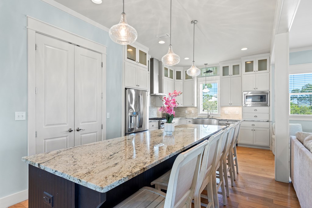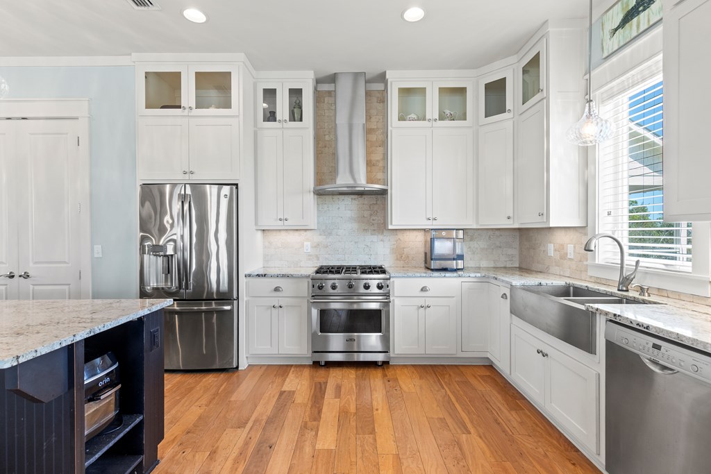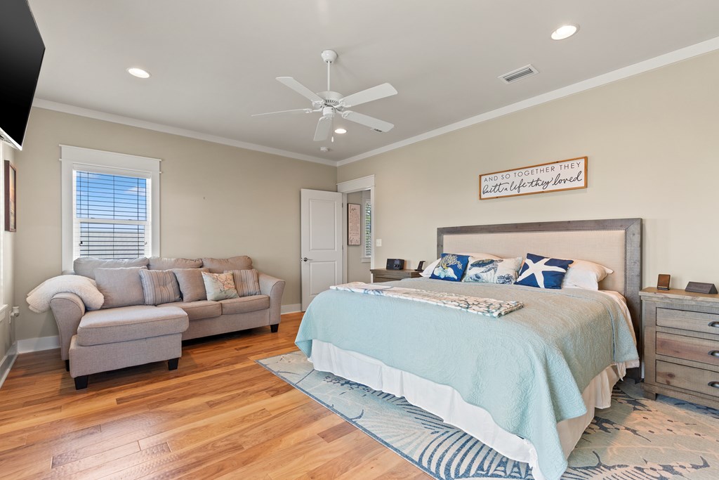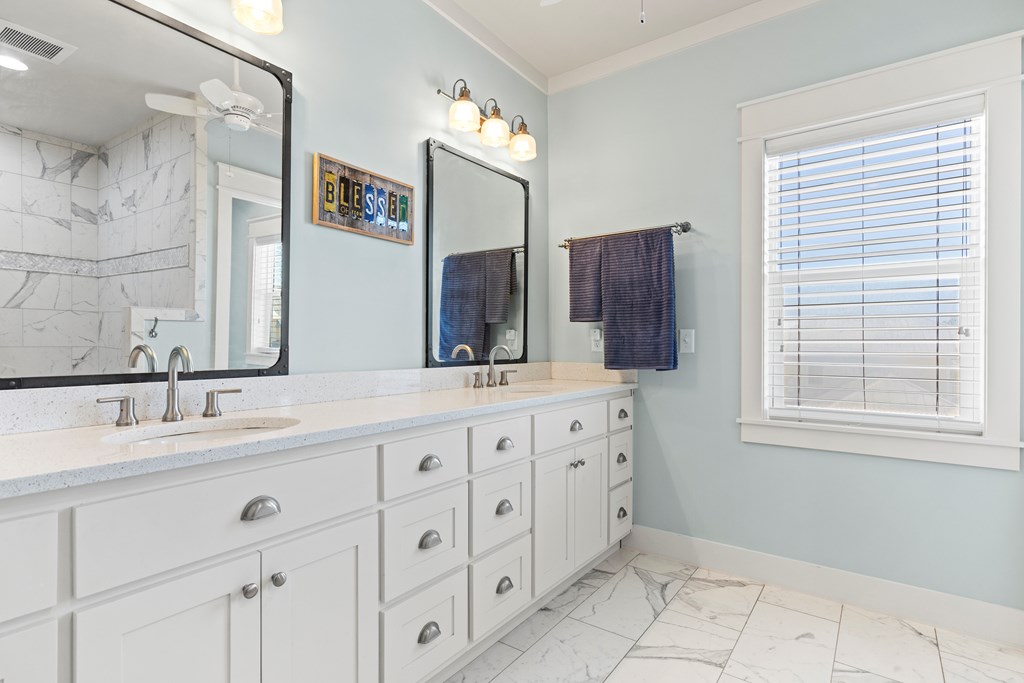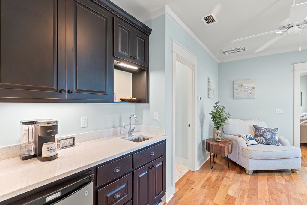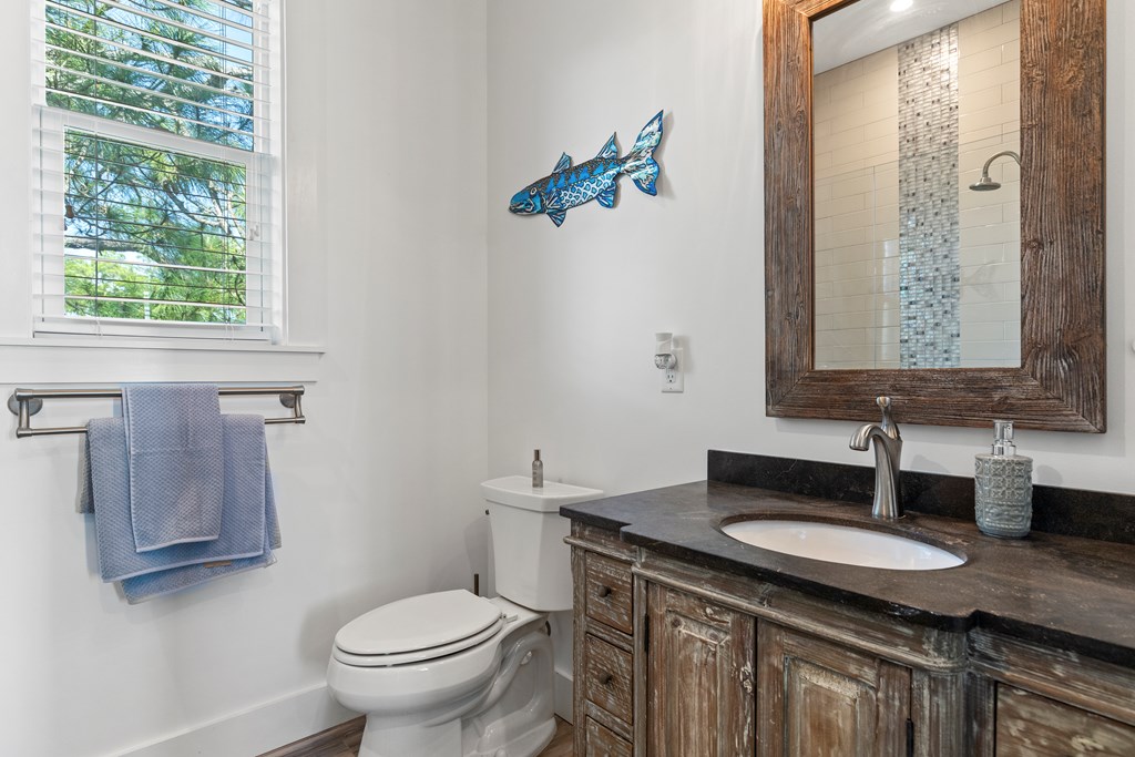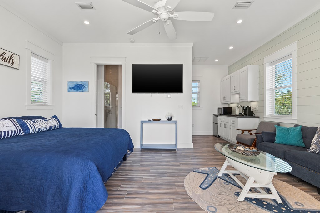 Welcome to 434 WindMark Way, a 4BR/4.5BA home with FOUR GARAGES located in the gated WindMark Beach Phase 1 community, offering 3,438 square feet of living space on a .44-acre lot with great Gulf views AND a completely detached guest house with its own garage. Built in 2015 and recently updated, this home is move-in ready and designed for both full-time living and second-home use. The main living area features an open-concept layout with raised ceilings, a fireplace, and an oversized kitchen with a large island, breakfast bar, large pantry, and plenty of cabinet spaceand a downstairs bedroom with its own private bathroom. An elevator services all floors, making access easy throughout the home. Upstairs, the primary suite is a true standout, offering an office area, sitting room with a mini fridge and bar sink, private balcony with beautiful water views, and a spacious bathroom featuring two walk-in closets, double vanities, a two-head walk-in shower, and a private water closet. In addition to the main home, there is a detached guest house above one of the four garages, creating an ideal setup for guests, extended family, or additional rental flexibility. The property offers ample parking and storage, along with natural gas and functional outdoor space. Located just a short walk from the community pool, boardwalk, and beach access, as well as the neighborhood dock, this home combines convenience with one of the best locations in WindMark. With short-term rentals allowed, strong Gulf views, and a flexible layout, 434 WindMark Way is a solid opportunity in one of the most desirable communities in Gulf County. Call today!