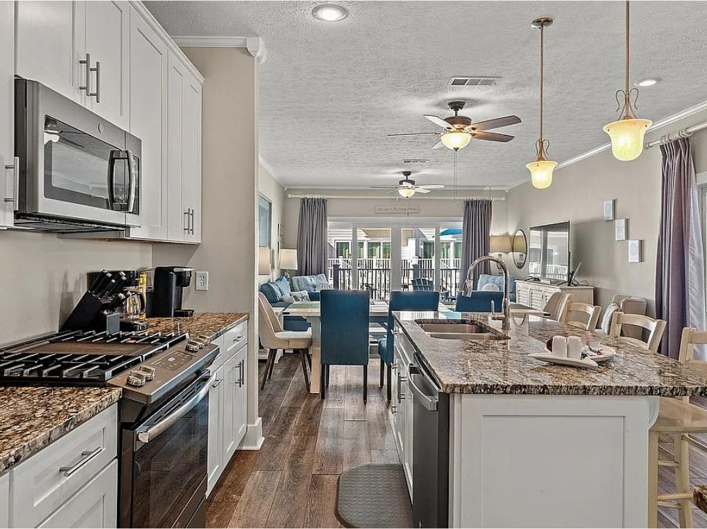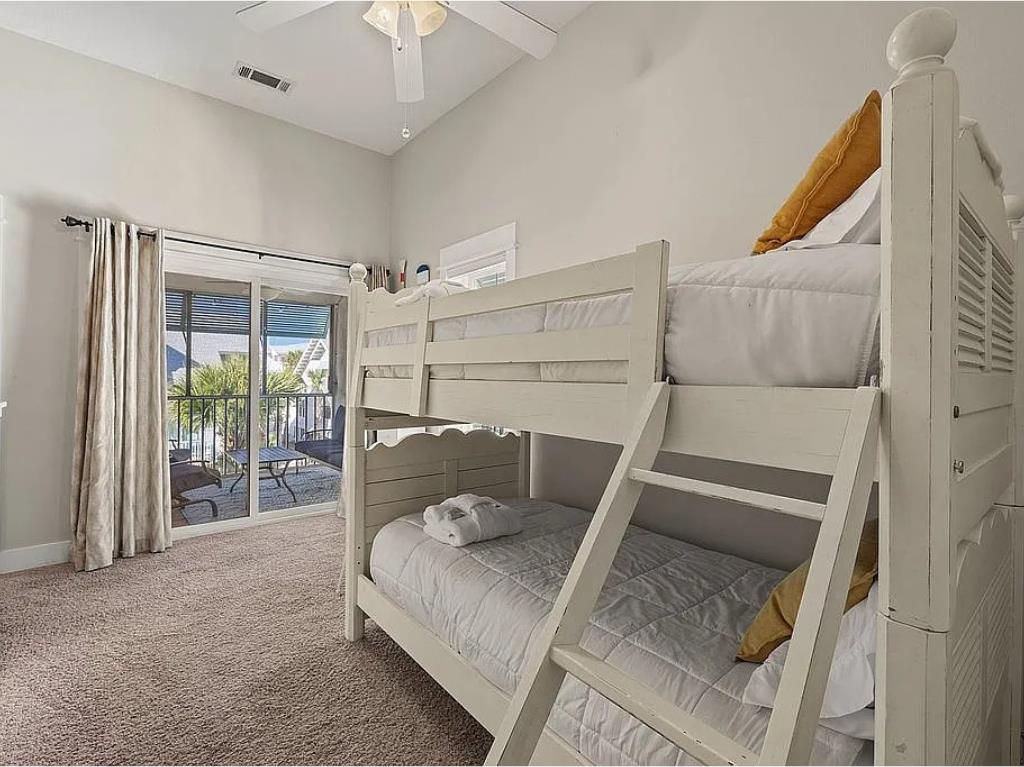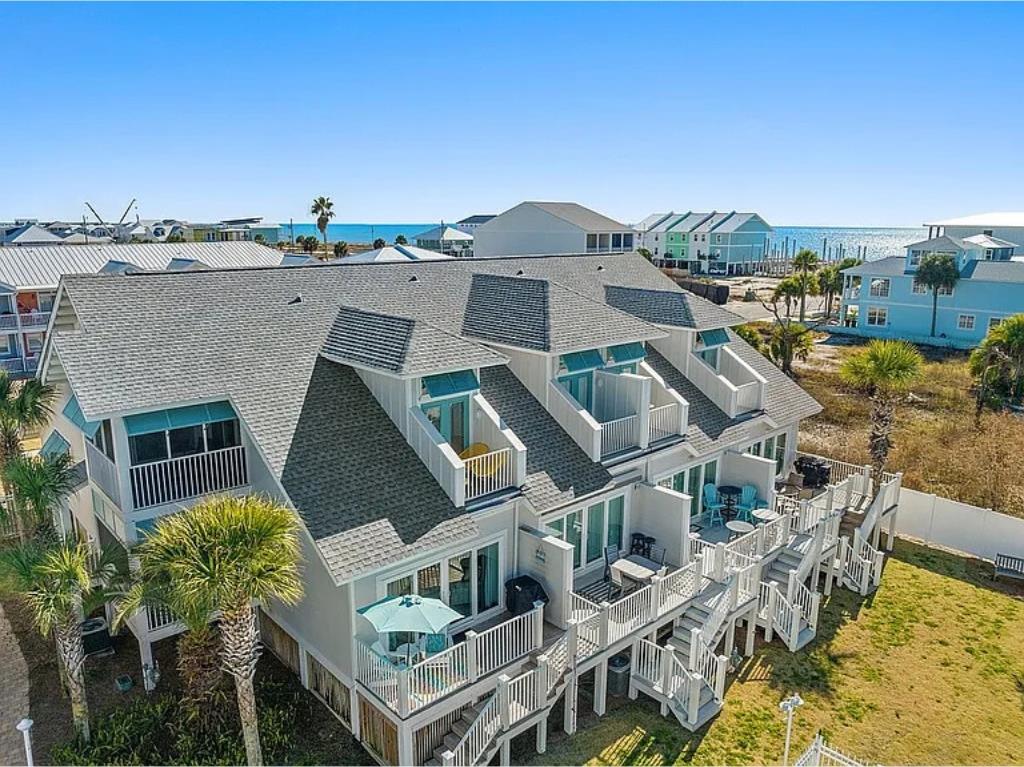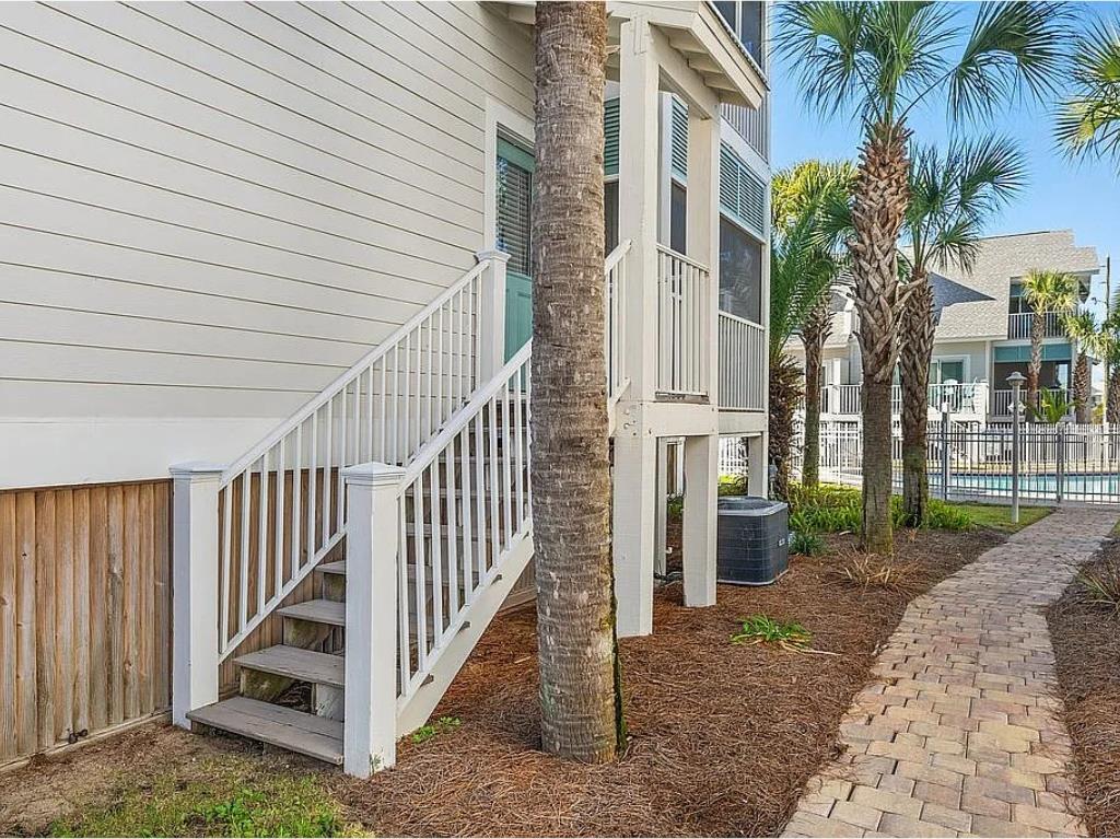Beachside living without the hassle of crossing Highway 98—this is the kind of location buyers wait for. Welcome to Aqua Pearl, a rare corner-unit townhouse in Oceanside Village just a short walk to the beach and right in the heart of Mexico Beach. From here, you can easily stroll to local favorites like Forgotten Coast Brewing, nearby restaurants, shops, and beachside stops. Rebuilt in 2019 and offered fully furnished, this 3-bedroom plus bunk loft, 3.5-bath home is designed for both relaxation and strong rental performance. The layout is ideal, featuring two spacious master suites—one on the main level and another upstairs with its own private screened porch and open deck overlooking the pool. The additional guest bedroom includes a private balcony, while the built-in bunk loft adds extra sleeping space perfect for guests or families. The home is built for indoor-outdoor coastal living, with multiple porches including an open sun deck and a screened-in space overlooking the pool, all surrounded by lush landscaping that adds privacy and a true vacation feel. Inside, you'll find thoughtful upgrades throughout, including plantation shutters, recessed lighting, a large kitchen island, pantry, built-in shelving, and plenty of storage. Downstairs, the covered carport offers additional space for beach gear and owner storage. Located in Flood Zone X and backed by a strong rental history, this property checks all the boxes whether you're looking for a personal getaway, investment property, or both. Opportunities like this in this location don't come around often.
