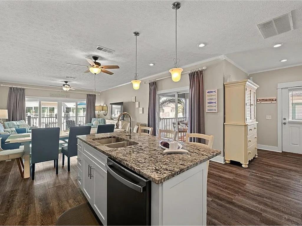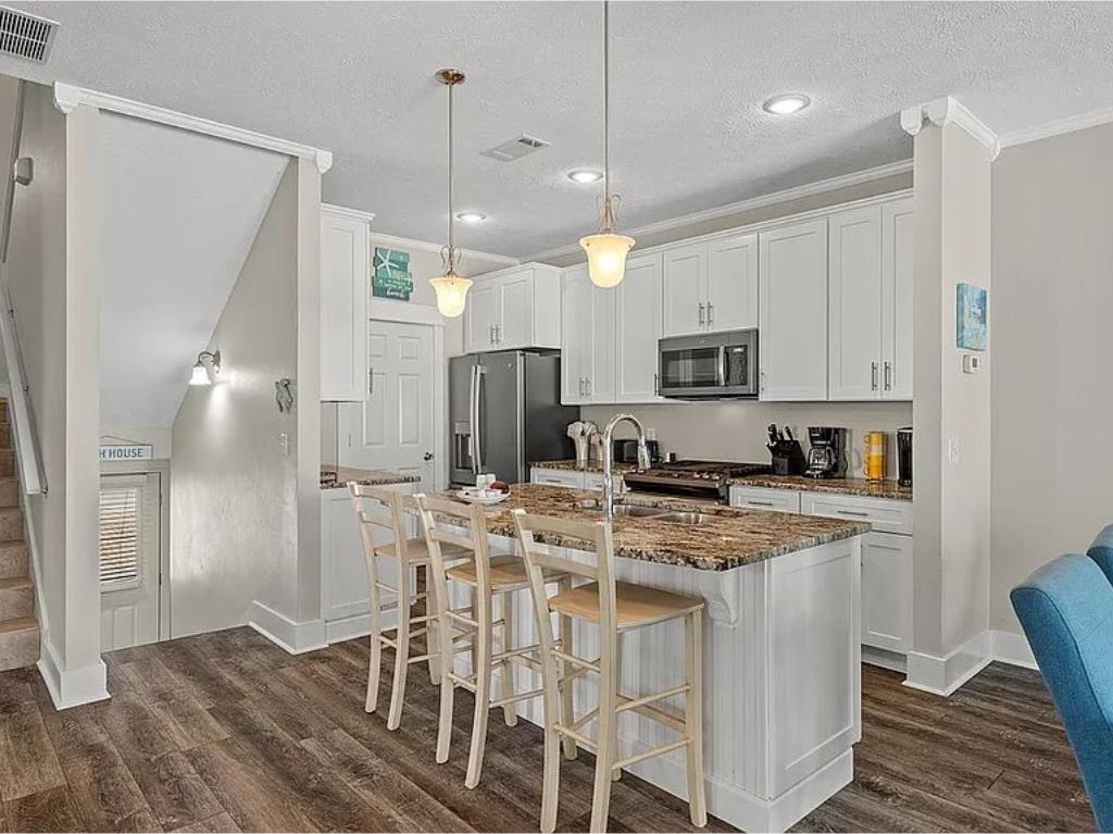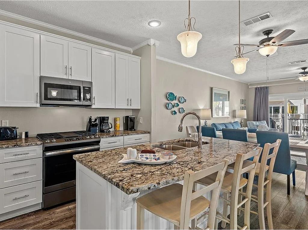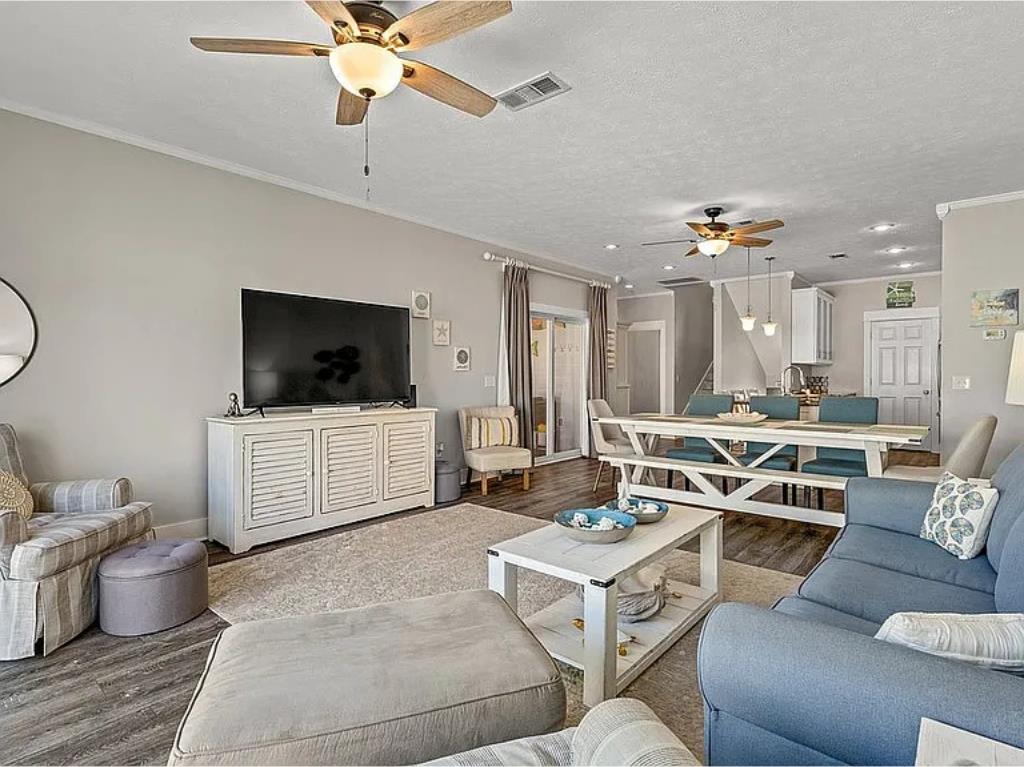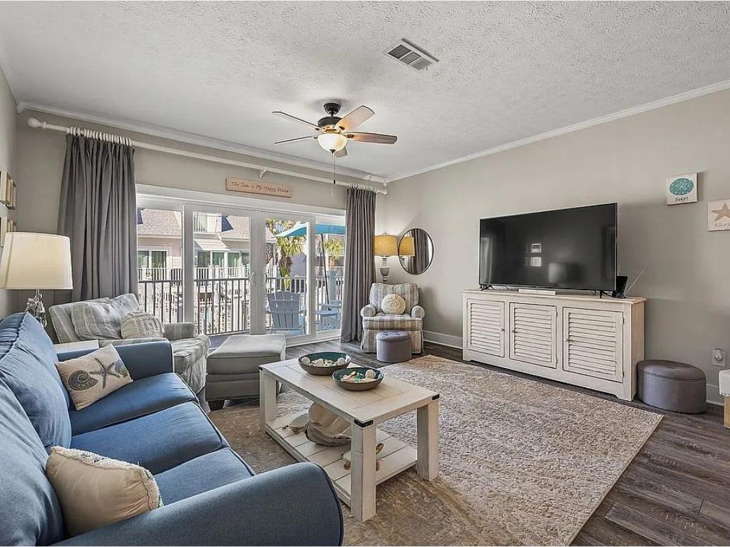 Beachside living without the hassle of crossing Highway 98—this is the kind of location buyers wait for. Welcome to Aqua Pearl, a rare corner-unit townhouse in Oceanside Village just a short walk to the beach and right in the heart of Mexico Beach. From here, you can easily stroll to local favorites like Forgotten Coast Brewing, nearby restaurants, shops, and beachside stops. Rebuilt in 2019 and offered fully furnished, this 3-bedroom plus bunk loft, 3.5-bath home is designed for both relaxation and strong rental performance. The layout is ideal, featuring two spacious master suites—one on the main level and another upstairs with its own private screened porch and open deck overlooking the pool. The additional guest bedroom includes a private balcony, while the built-in bunk loft adds extra sleeping space perfect for guests or families. The home is built for indoor-outdoor coastal living, with multiple porches including an open sun deck and a screened-in space overlooking the pool, all surrounded by lush landscaping that adds privacy and a true vacation feel. Inside, you'll find thoughtful upgrades throughout, including plantation shutters, recessed lighting, a large kitchen island, pantry, built-in shelving, and plenty of storage. Downstairs, the covered carport offers additional space for beach gear and owner storage. Located in Flood Zone X and backed by a strong rental history, this property checks all the boxes whether you're looking for a personal getaway, investment property, or both. Opportunities like this in this location don't come around often.