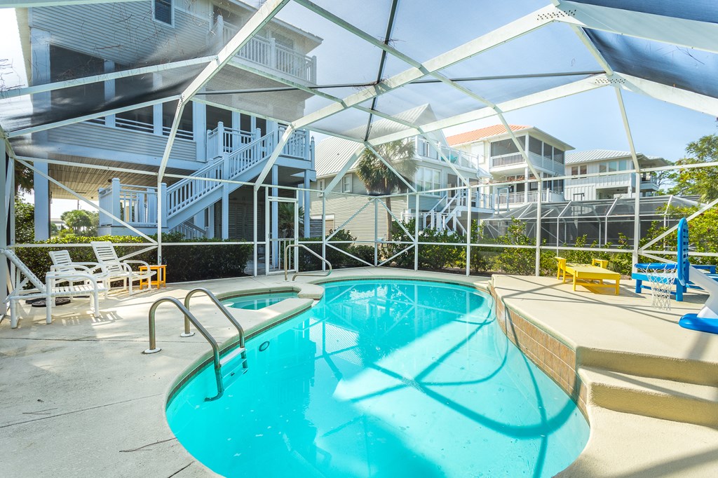 $109,000+ in gross rental income already on the books—and climbing. Positioned within the gated Mariner Harbor community on St. George Island, this fully renovated bayfront retreat delivers the rare combination of luxury coastal living and serious income potential. With rental income exceeding $109,000 as of 04/03/26 and projections expected to surpass $130,000 annually, this is a property that performs as well as it presents. Designed for both relaxation and return, this 4-bedroom, 3.5-bath home features an elevator, a fully screened heated pool and hot tub, and a private deep-water dock with a 10,000-pound boat lift—providing immediate access to some of the area's best fishing waters. The dock has been recently upgraded with Flow-Through composite decking, offering durability and low maintenance for years to come. The home also borders the walkway to the community dock, adding even more convenience for owners and guests. Inside, thoughtful renovations elevate the space with new flooring, countertops, cabinetry, and a striking marble gas fireplace. Expansive bay views and unforgettable sunset backdrops create a true waterfront experience from nearly every room. Step outside to your private backyard oasis, where lush landscaping surrounds the screened pool area, creating a peaceful, resort-style setting. The spacious screened porch invites you to unwind, while deeded beach access ensures the Gulf's sugar-white sands are always just moments away. Offered fully furnished and turnkey, this home is ready to enjoy or continue generating income from day one. Additional value comes from assumable flood insurance at only $1,476 per year, helping keep operating costs low. This isn't just a home—it's a high-performing coastal asset in one of St. George Island's most desirable gated communities. Schedule your private showing today and see what makes this opportunity stand out.