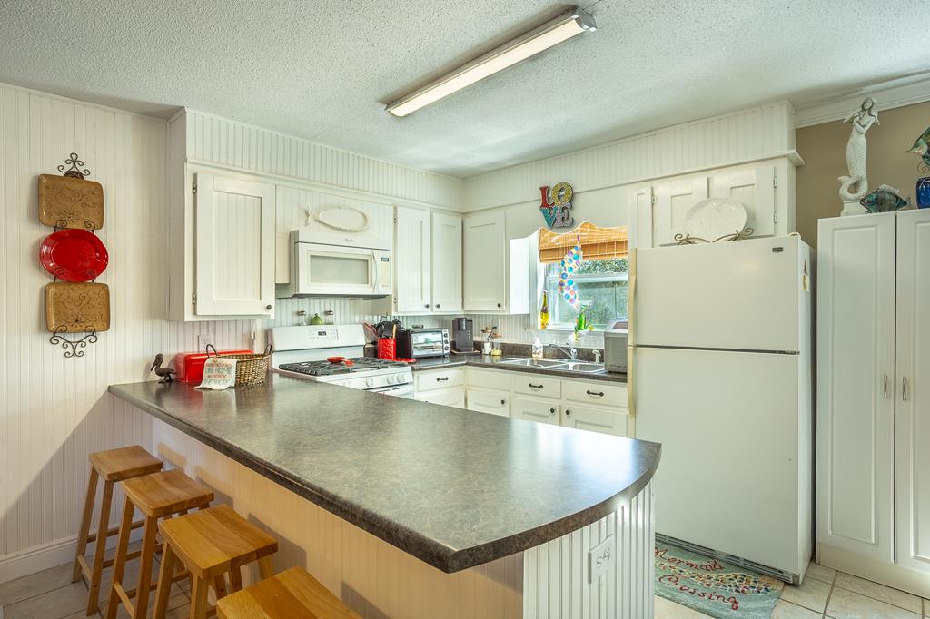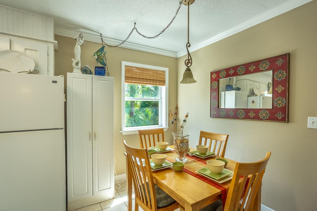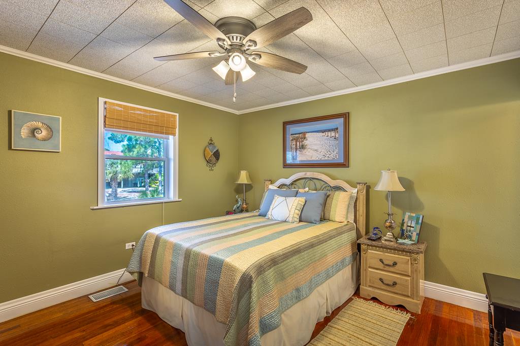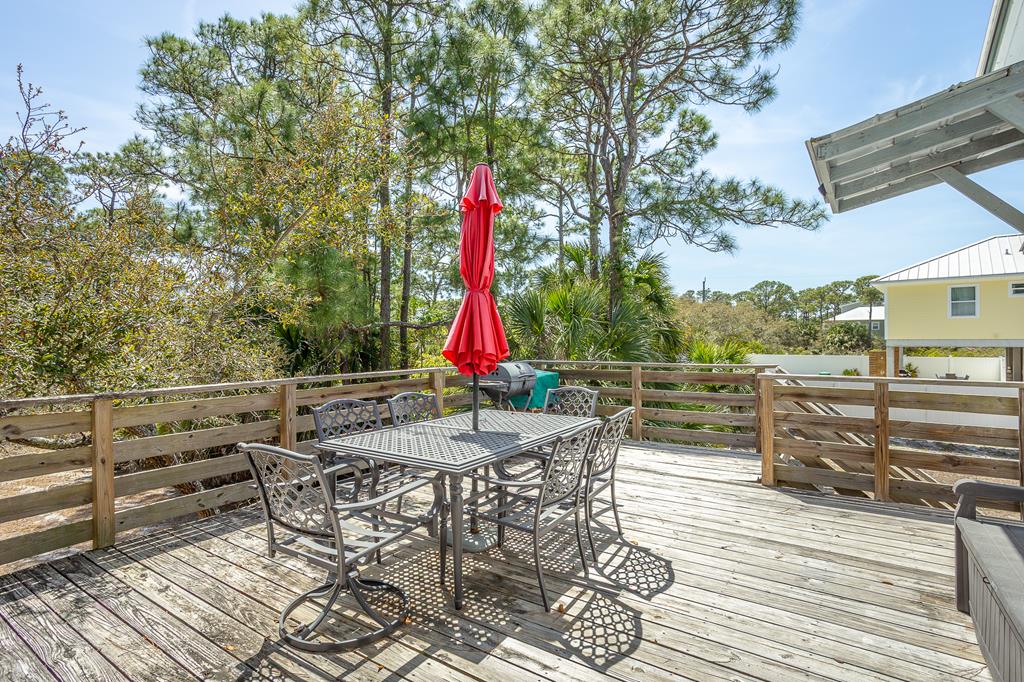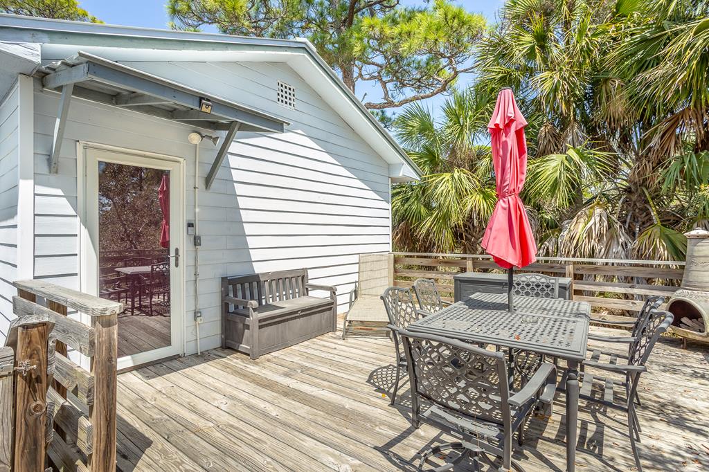 Looking for coastal solitude, look no further. Located on St George Island's quiet West Bayshore Dr, this 3-bedroom, 2-bath residence offers a blend of comfort, coastal charm, and affordability. The home has a split-bedroom layout that ensures both privacy and ease of living. The home flows nicely from the main living space into the kitchen and dining areas, creating an excellent atmosphere for gathering and entertaining. Looking for outdoor living and entertainment space, step out onto the new expansive 8'X22'back deck. Just add your favorite accessories, grill, smoker, fryer, hammock, or swing. Want to install an in ground pool, there is plenty of room and multiple areas for placement. Whether envisioned as a personal escape or an income-producing coastal retreat, this property presents an opportunity to orchestrate your own island lifestyle. St George Island is a family oriented destination with low density housing, sparse traffic and friendly people. Come take a look and see if the Forgotten Coast and this affordable beach home is right for you. It is indeed Coastal Solitude.